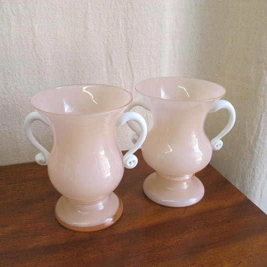 Pair of Czech art glass urn-form vases in shell pink opaline glass, c. 1920 1930