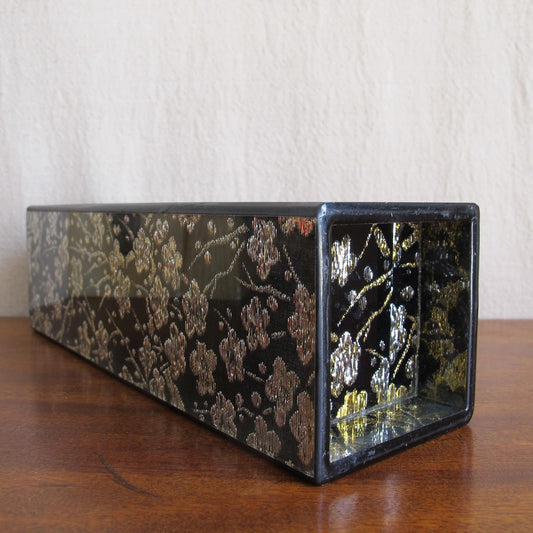 Japanese vase composed of fine metallic kimono silk encased in glass, made by Kano, c.1970