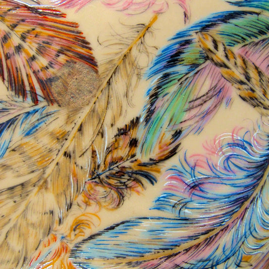 Playing Card Cigarette Box 1970s Neiman Marcus Feathers Turquoise Blue Coral Pink