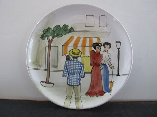 Plates Pair Italian Majolica Paris Street Scenes 1950s 1960s MCM Midcentury