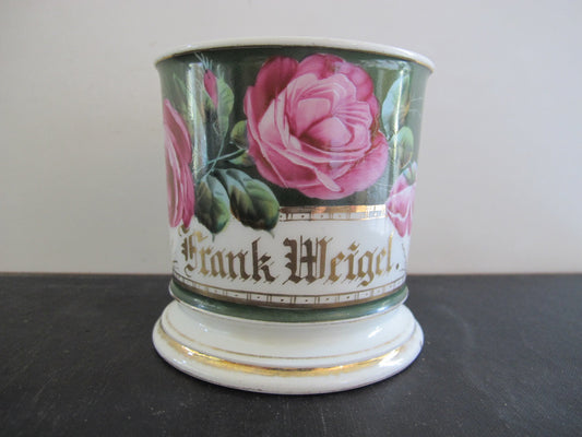 Shaving Mug Monogrammed Victorian Frank Weigel Gold with Roses 1880s 1890s 1800s