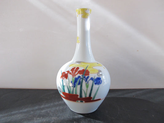 Vase Japanese Signed Marked Mount Fuji Iris Blue and Red with Yellow Cloud Form Entirely Handpainted