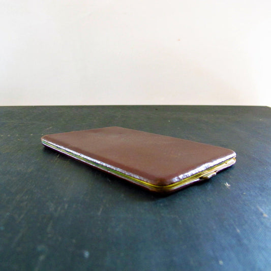 Case Wallet 1930s Rumpp Leather Brass Mechanism Monogrammed CW Interior Moire Silk