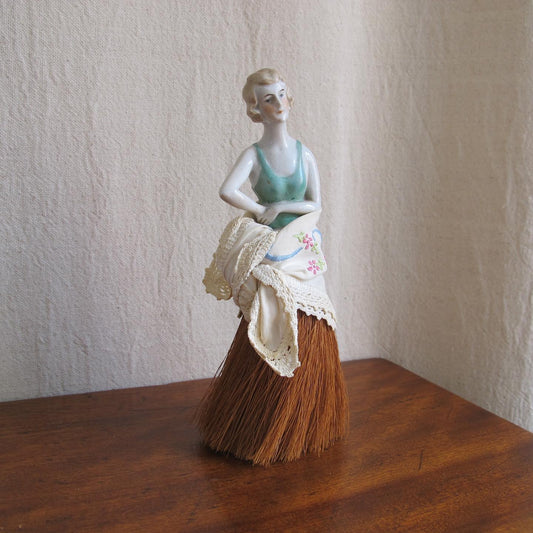 Antique Flapper half-doll vanity brush, unusually expressive, c. 1920