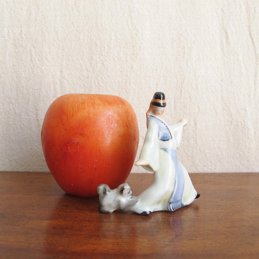 Herend man chased by dog, the dog having grabbed hem of the man’s traditional Hungarian garment, c. 1930