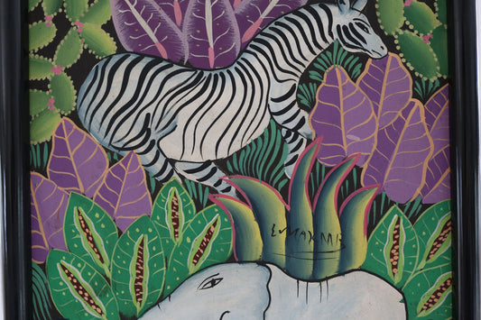 Oil Painting African Elephant Zebra Jungle Signed Framed Original