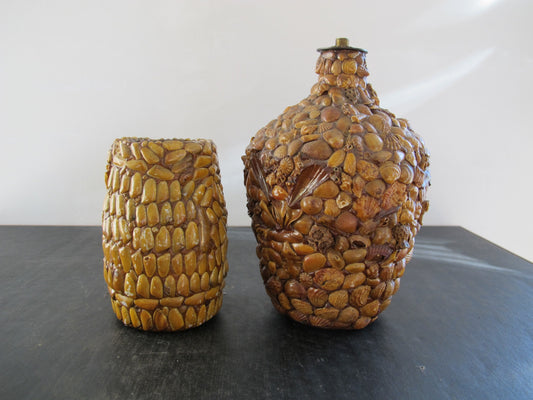 Shell Memory Folk Art Mosaic Sailor's Valentine Lamp Base and Jar Desk Set Freshwater American 1920s
