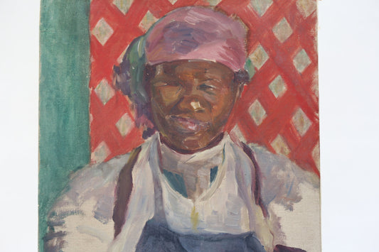 Ruth Bamberger Painting Black African Woman Culture Modernist Oil on Canvas Portrait Antique Art 1927 Paris Martinique Israel