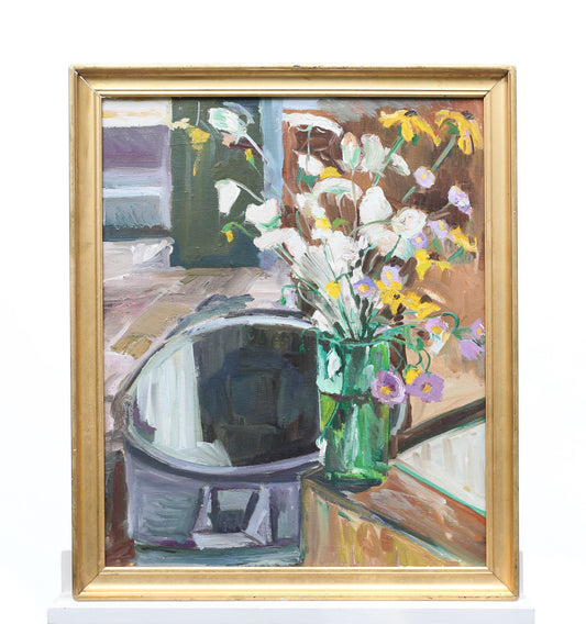 Painting Oil Canvas Still life Abstract Wildflowers in Vase Flowers Framed