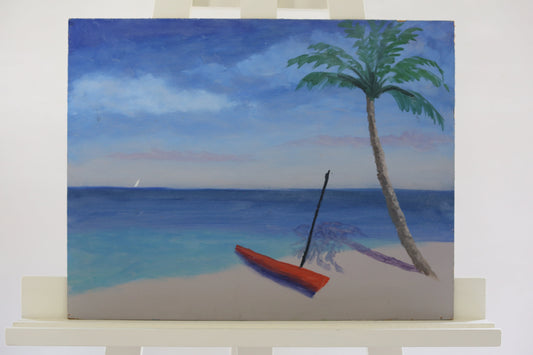 Oil Painting Florida Deserted Island Palm Tree Beach Blue Arthur Turcotte Original