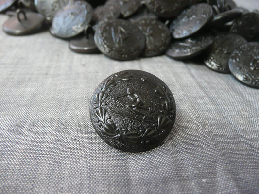 Buttons Novelty Figural Black Metal Skier (set of 6) 1940s 1930s Midcentury Notions Findings Sewing Jewelry Preppy Prep Trad