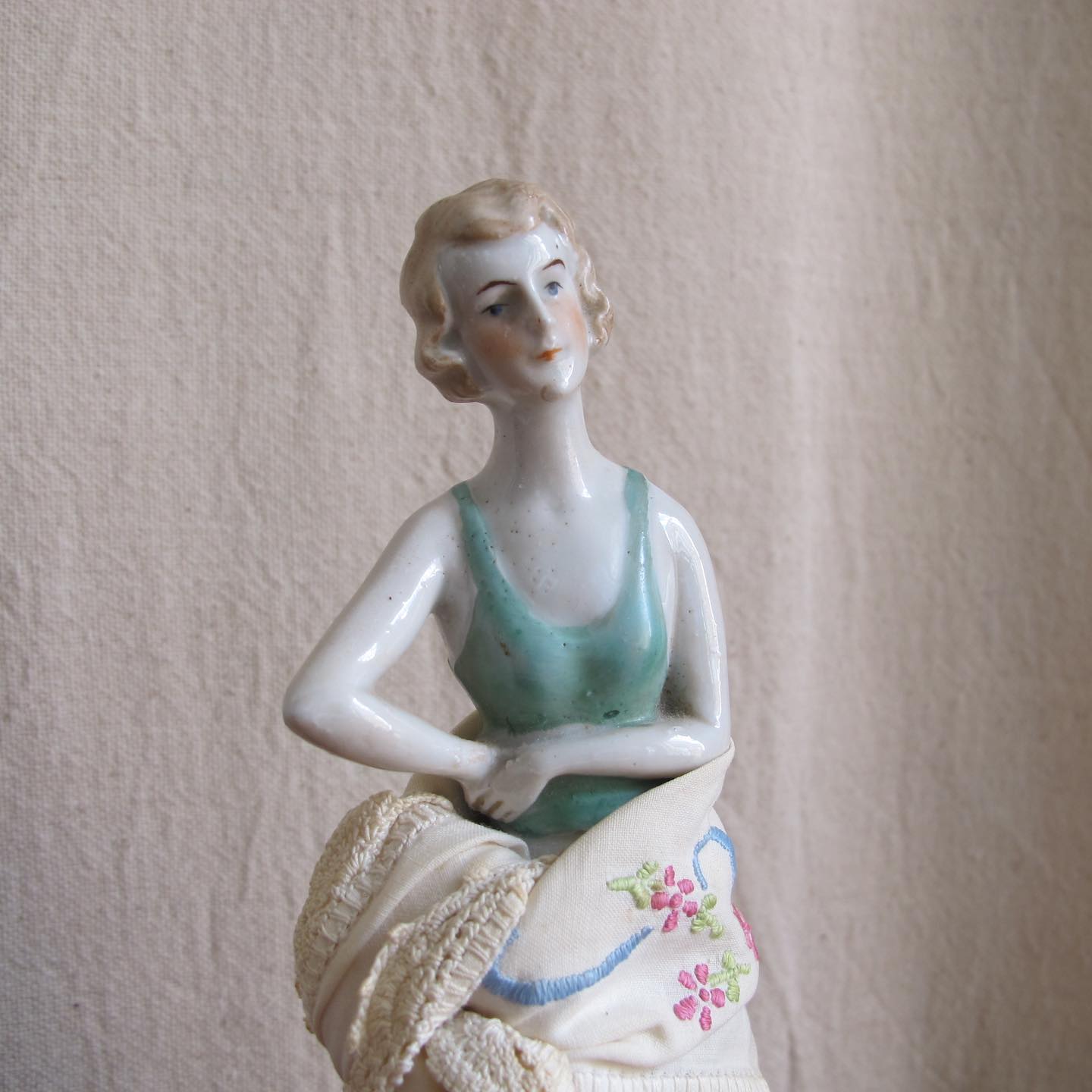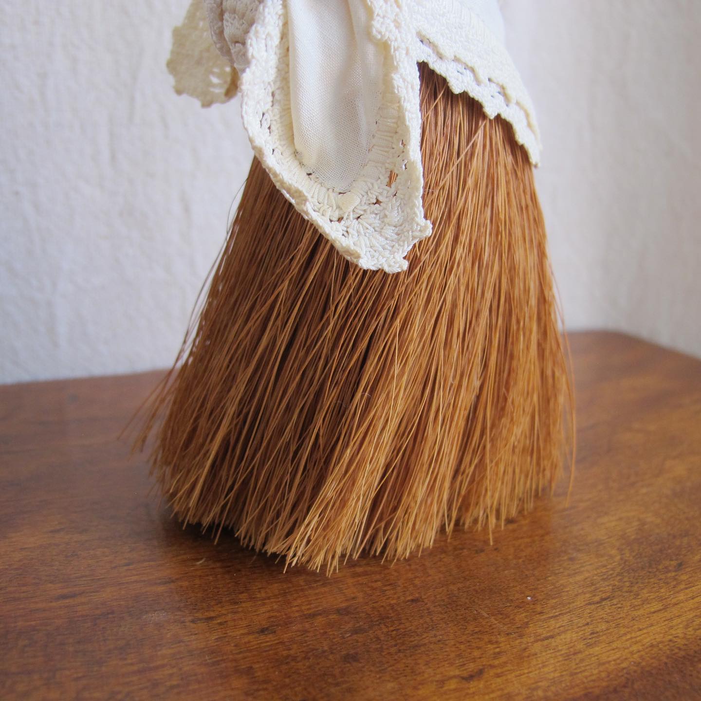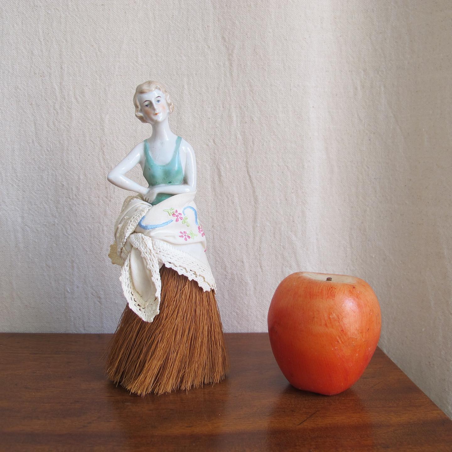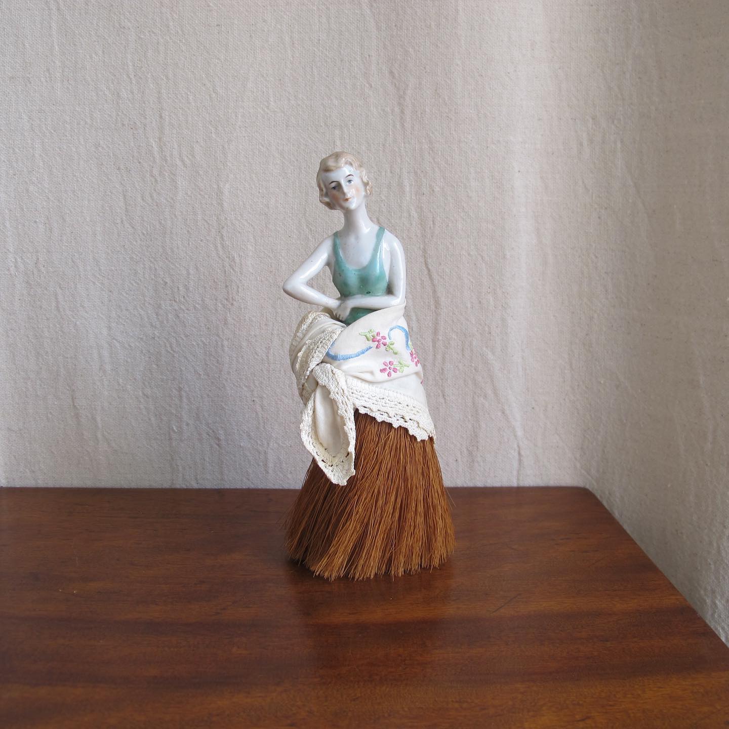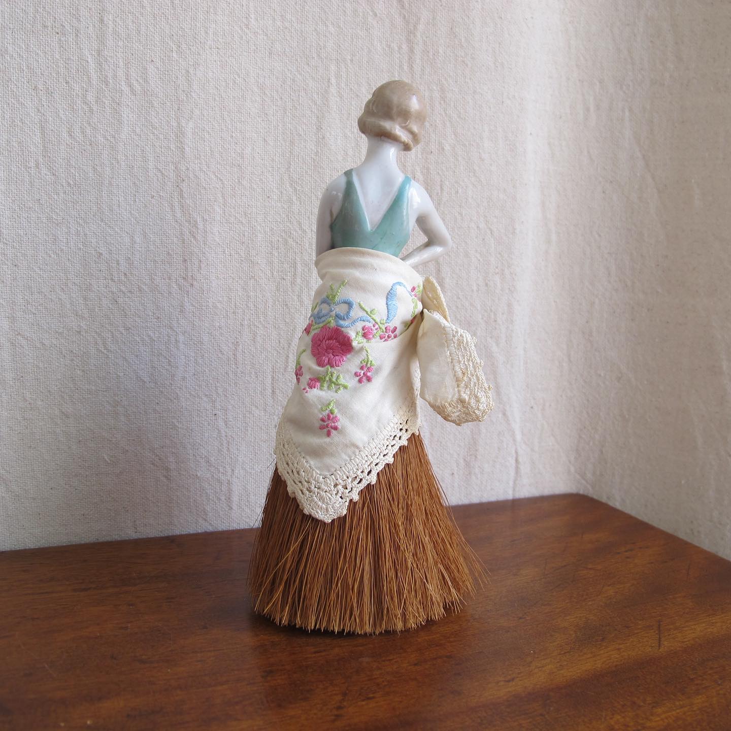Antique Flapper half-doll vanity brush, unusually expressive, c. 1920