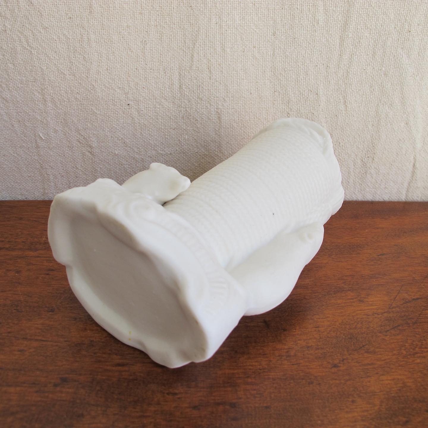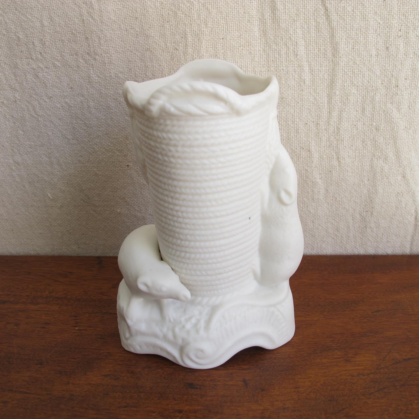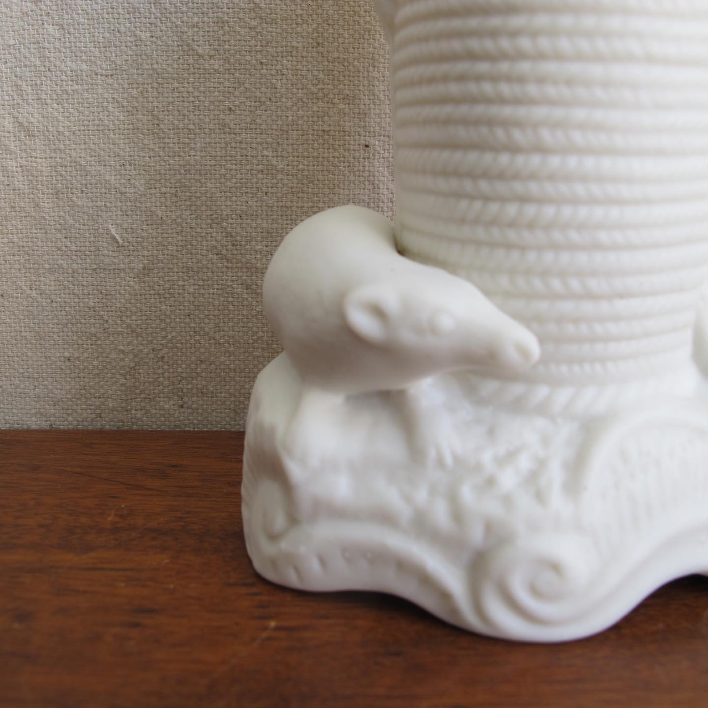Antique Parian porcelain vase with figural mice, exploring a coil of rope, extremely rare, c. 1860 1870