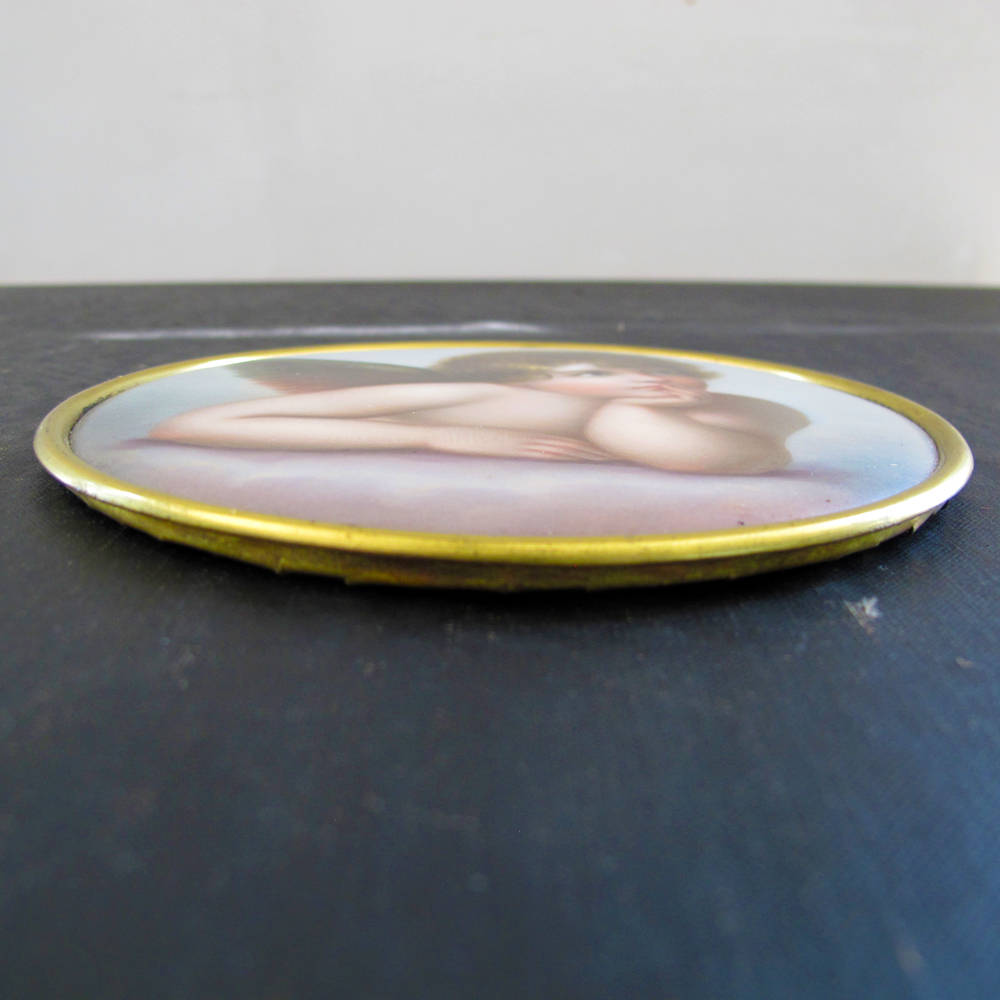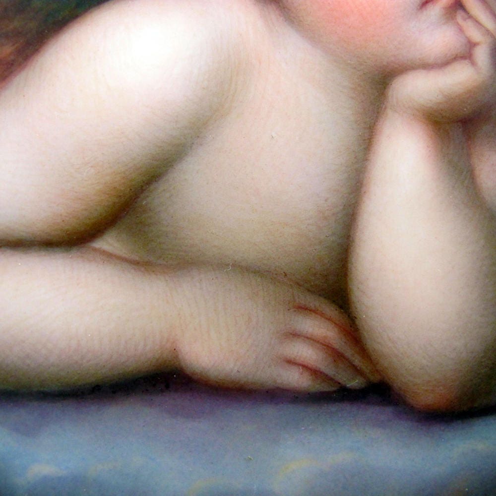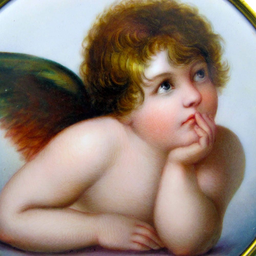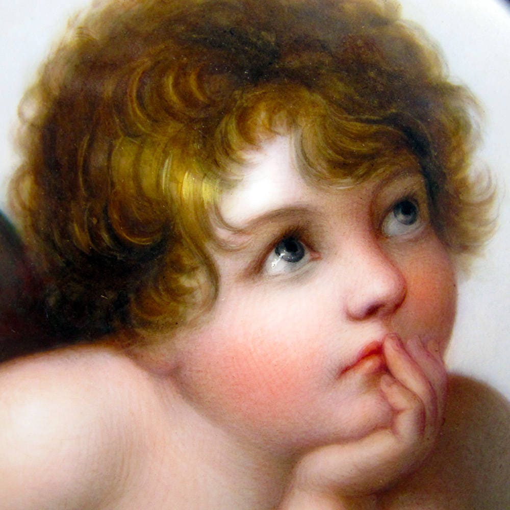 Antique Porcelain Portrait Plaque Angel KPM Quality Hutschenreuther German Hand Painted Signed Raphael Victorian Cherub Putto Putti Roundel