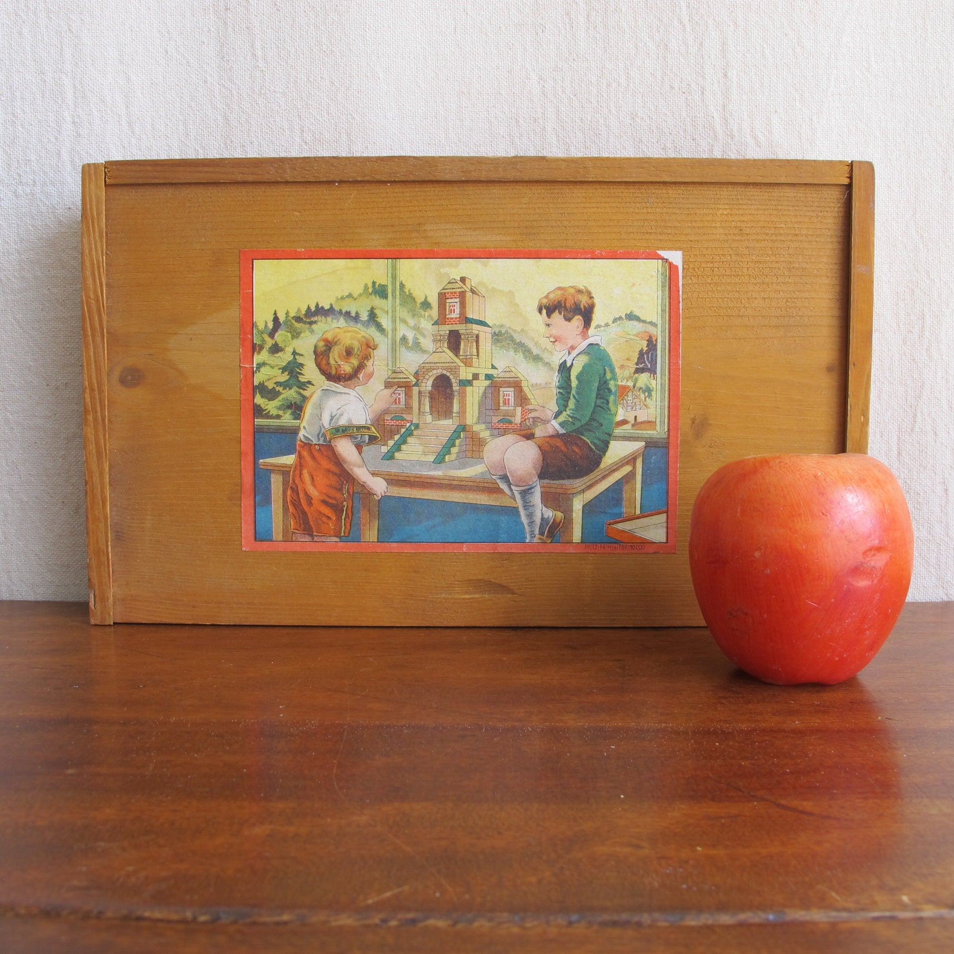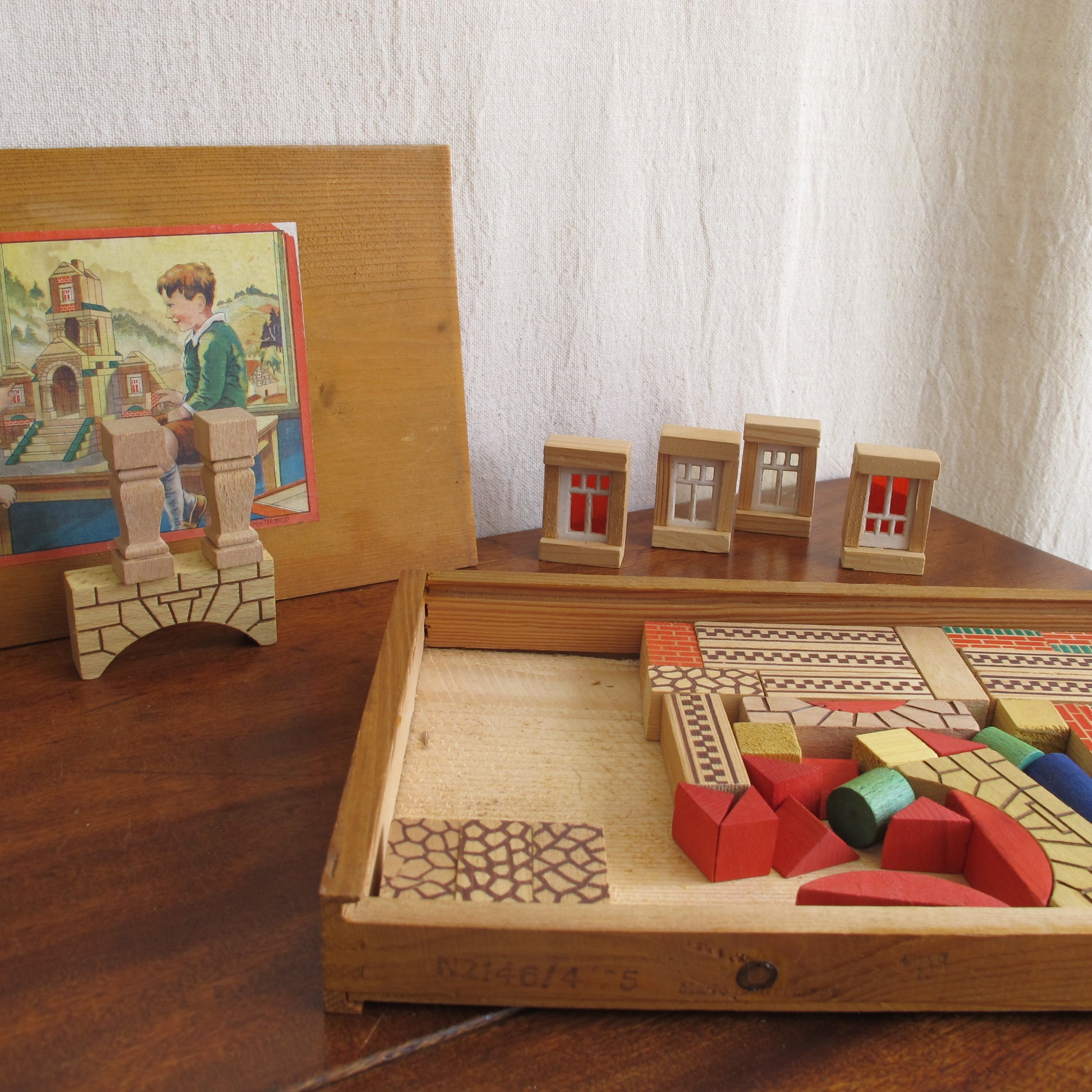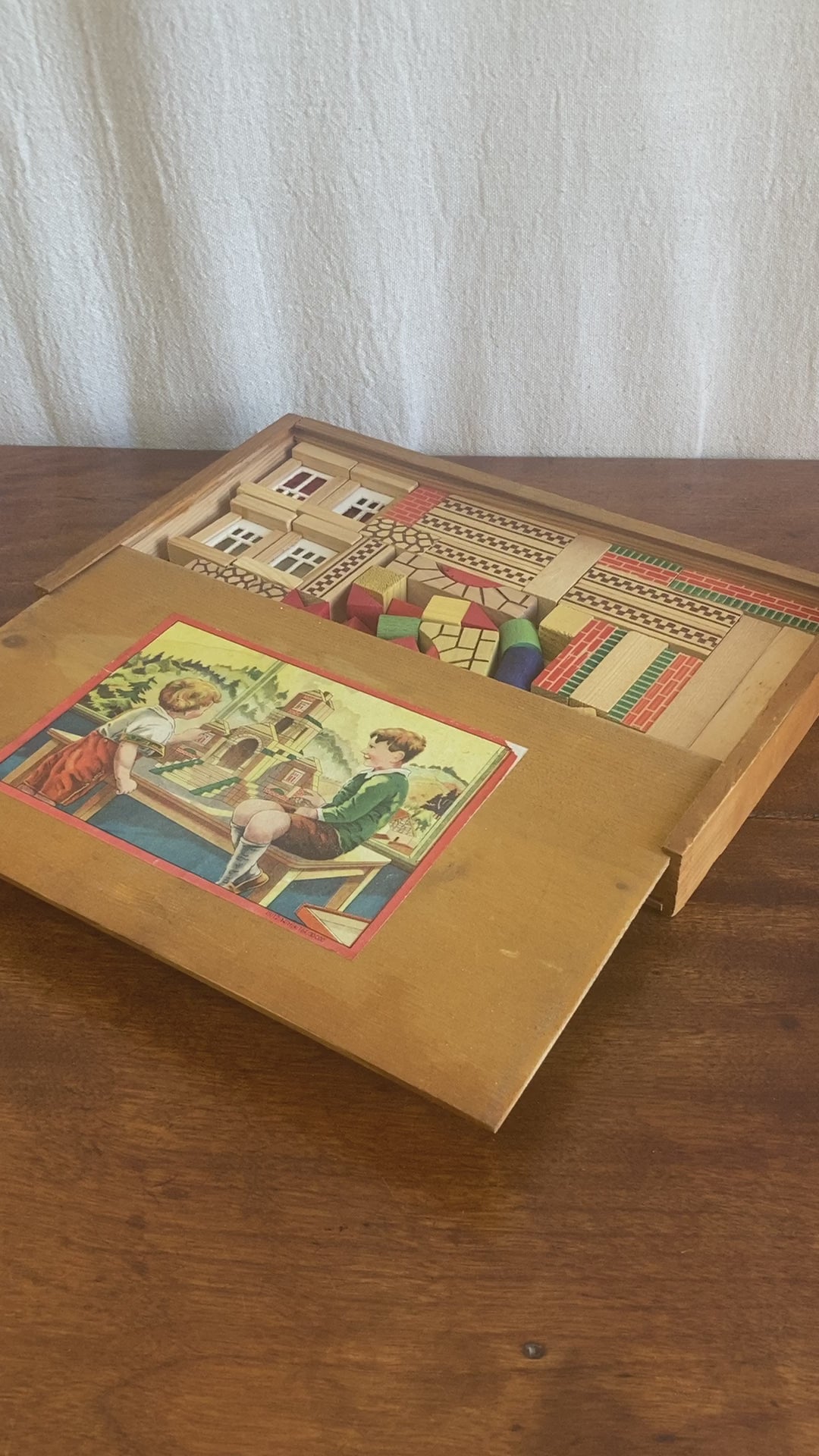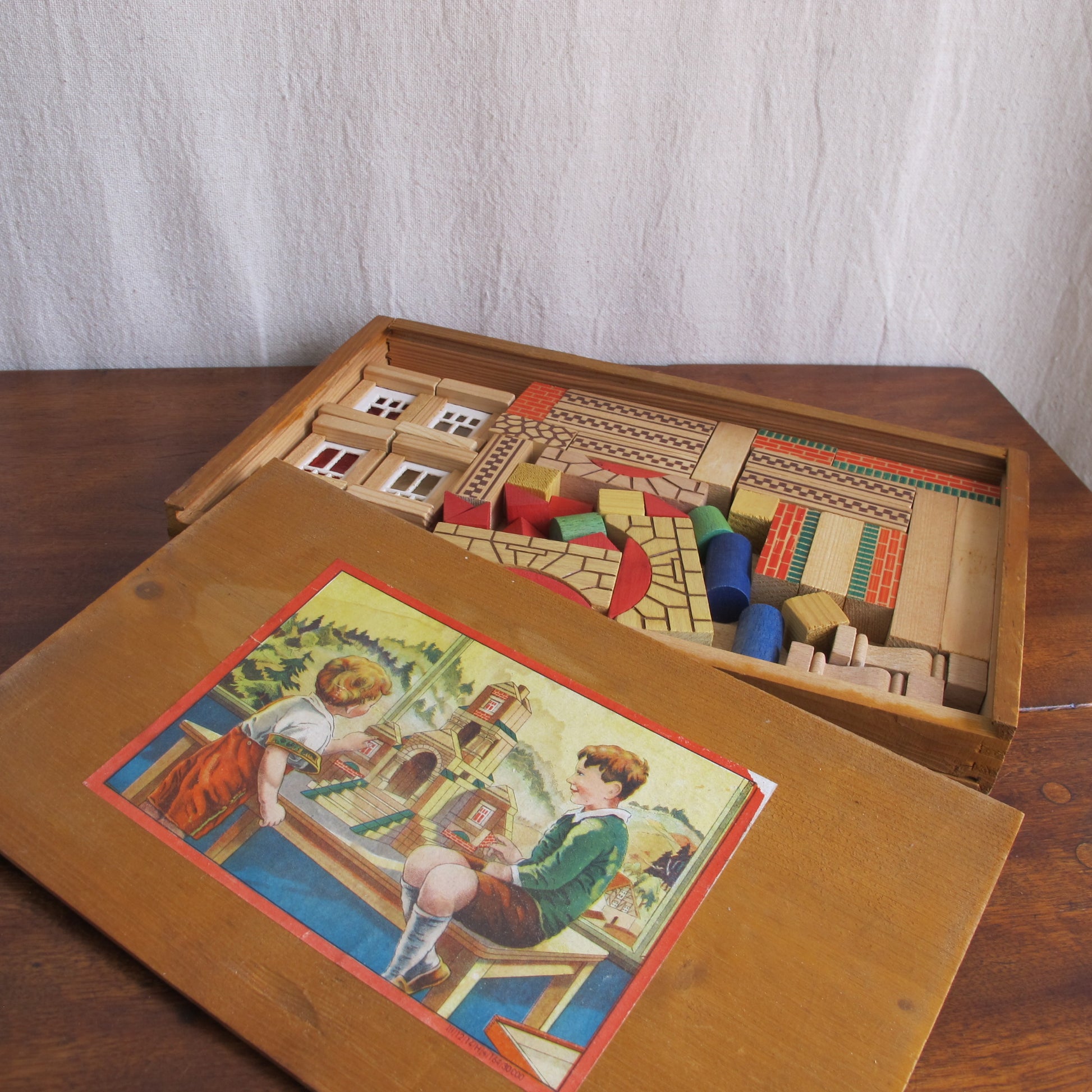 Architectural toy building block set in wood with paper and mica, made in Germany, c. 1920 vintage antique
