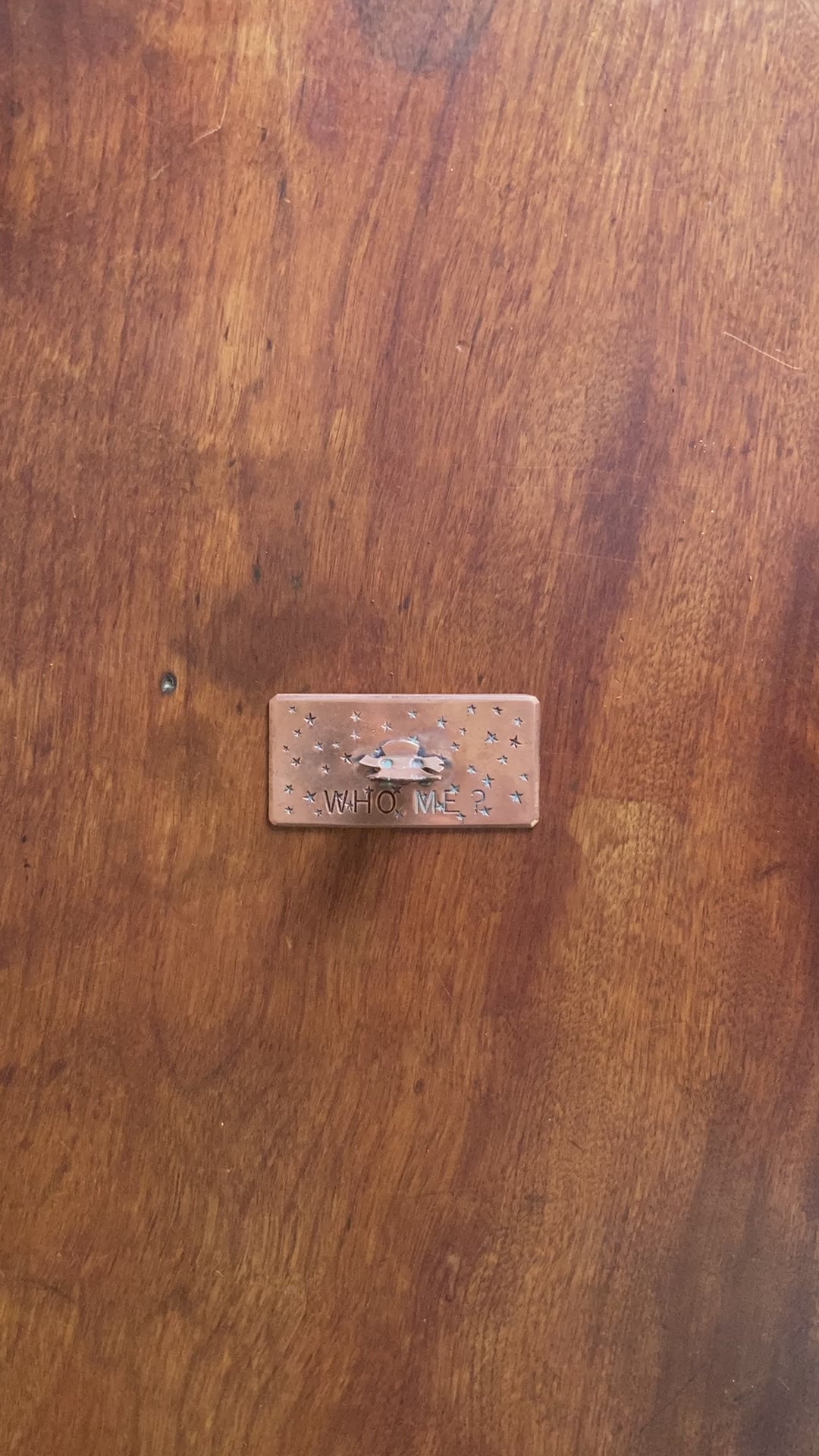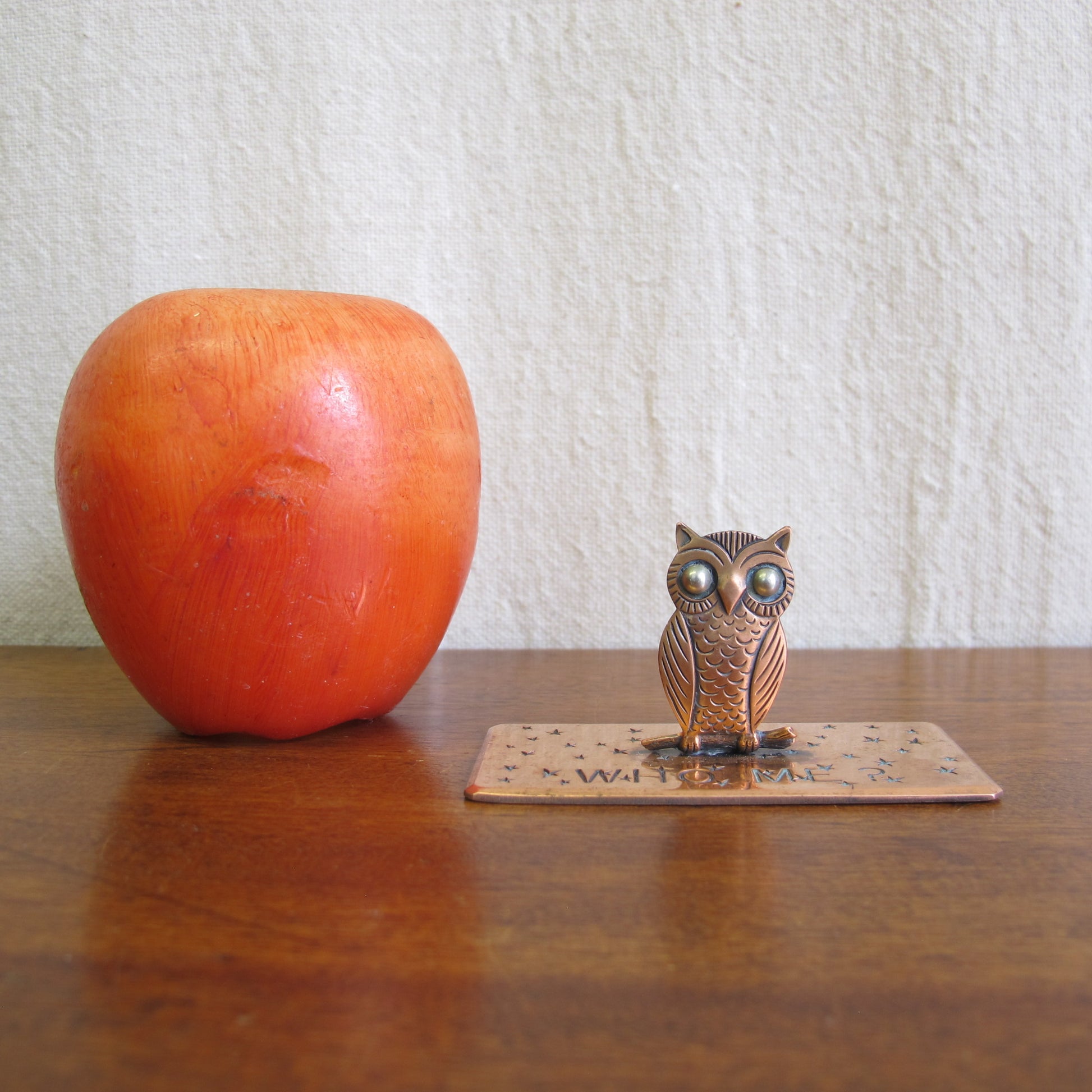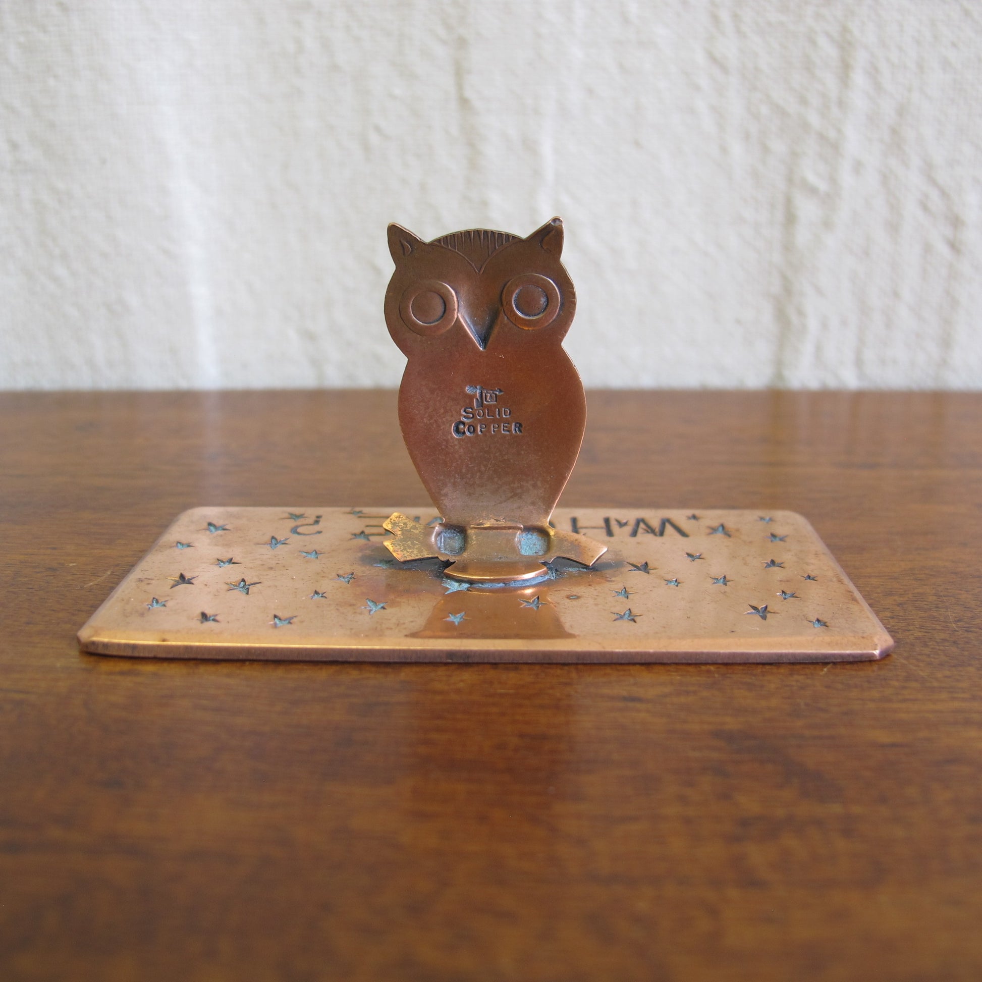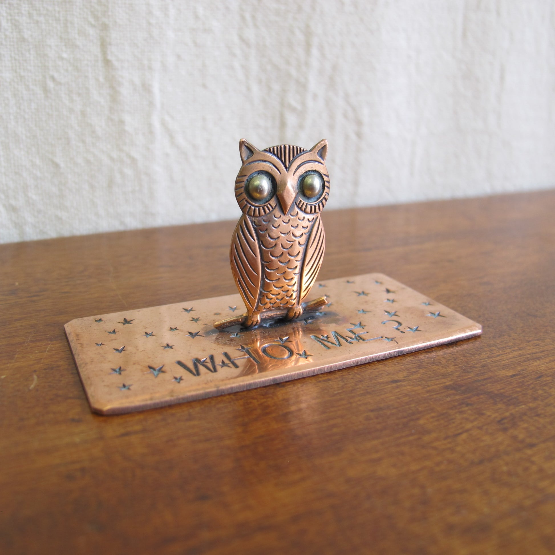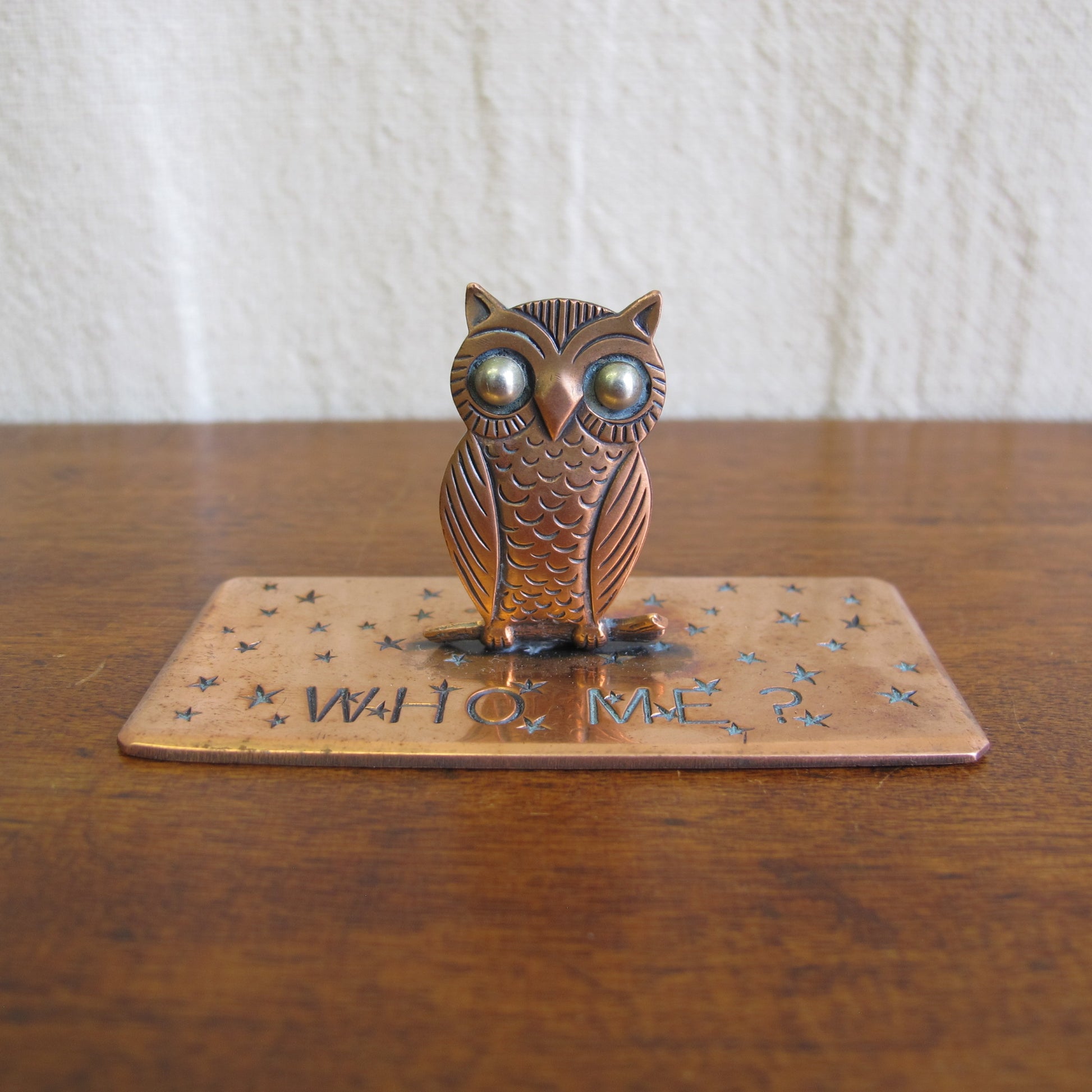 Art Deco copper 1930's 'who me?' owl Valentine -- endearing and very rare.