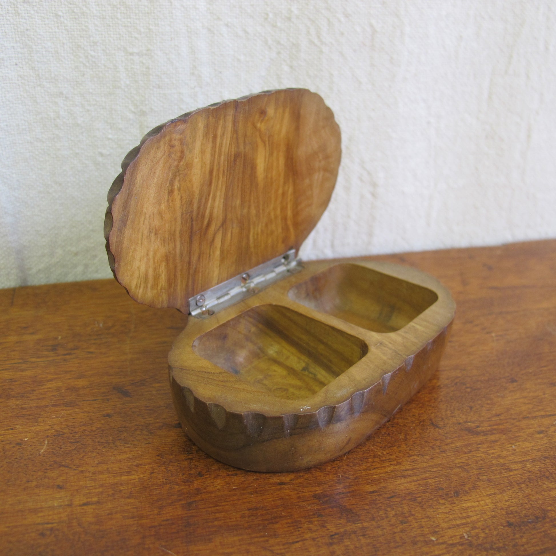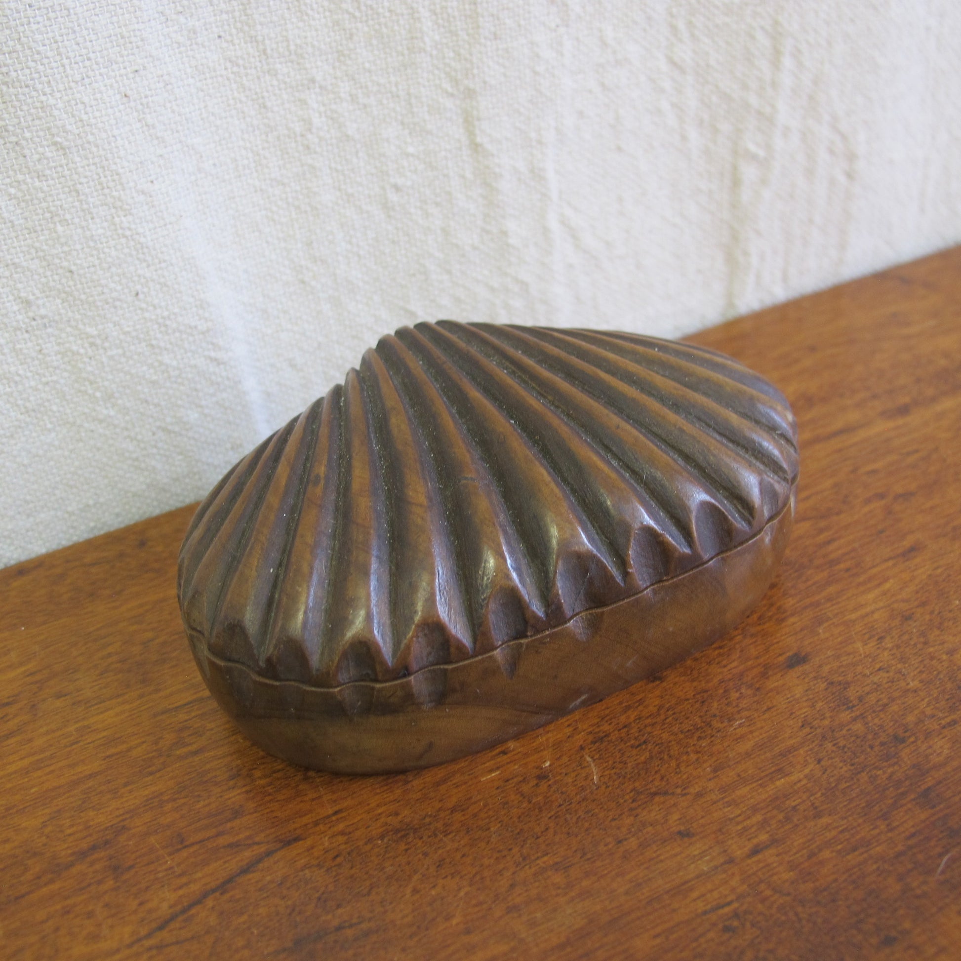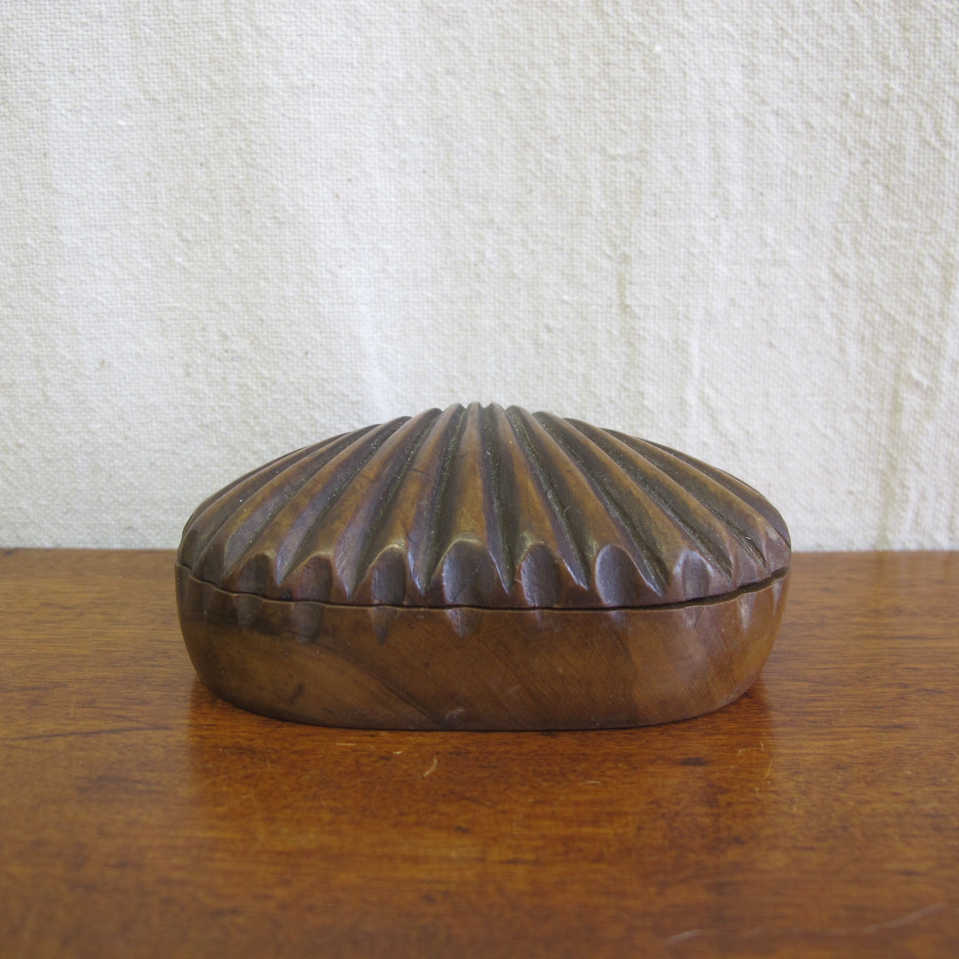 Boxwood shell-carved box, beautifully executed, likely 1900