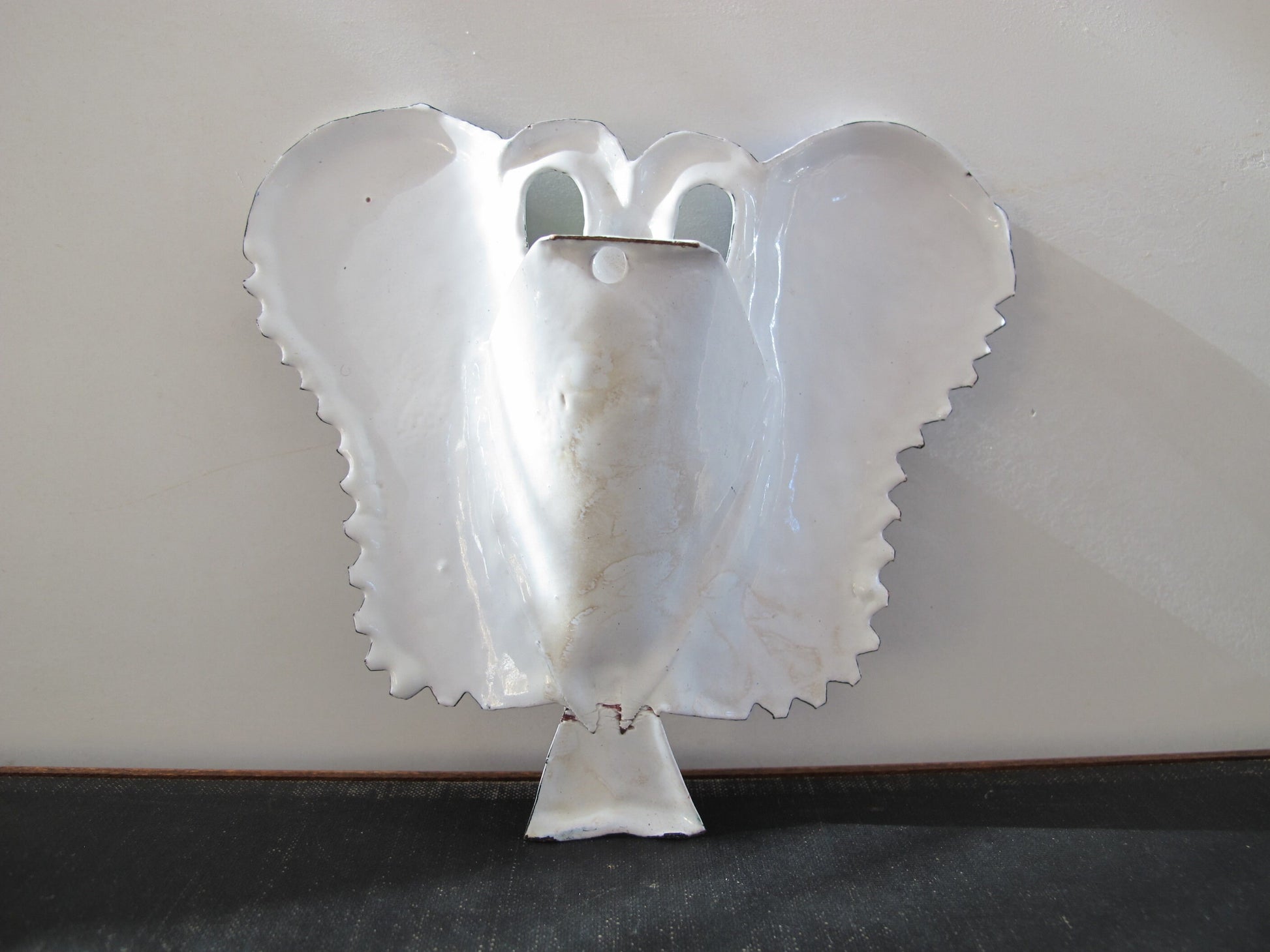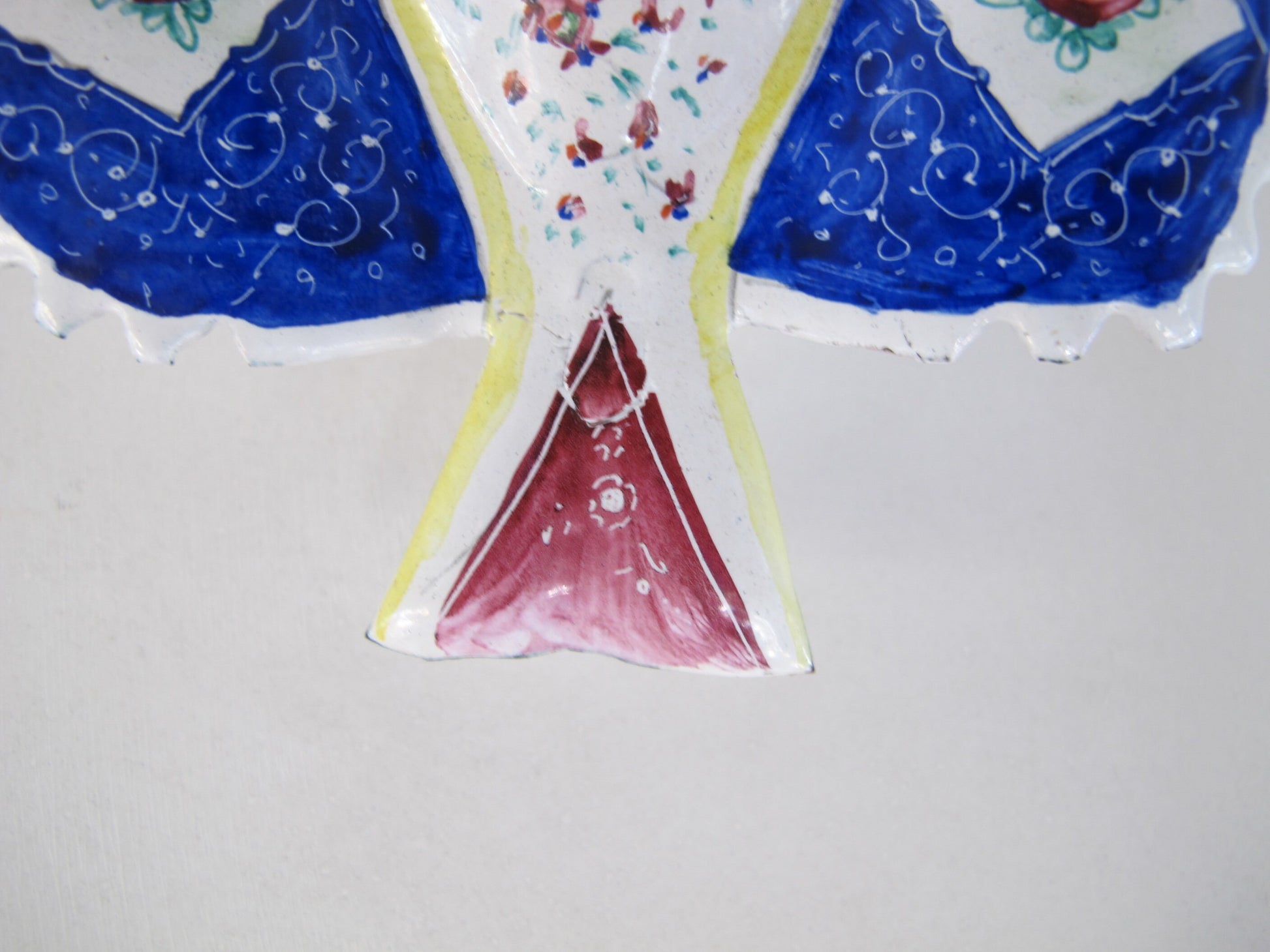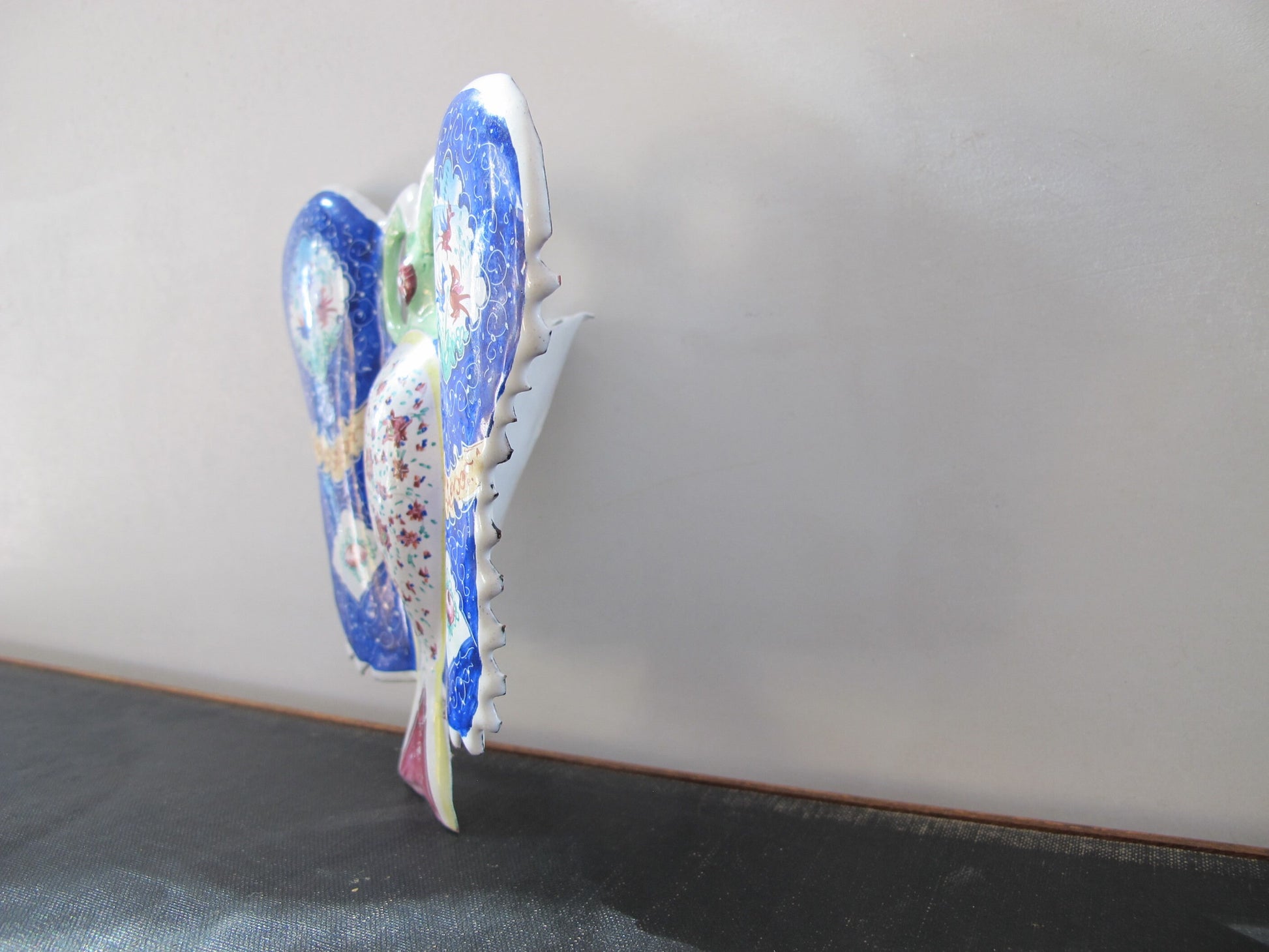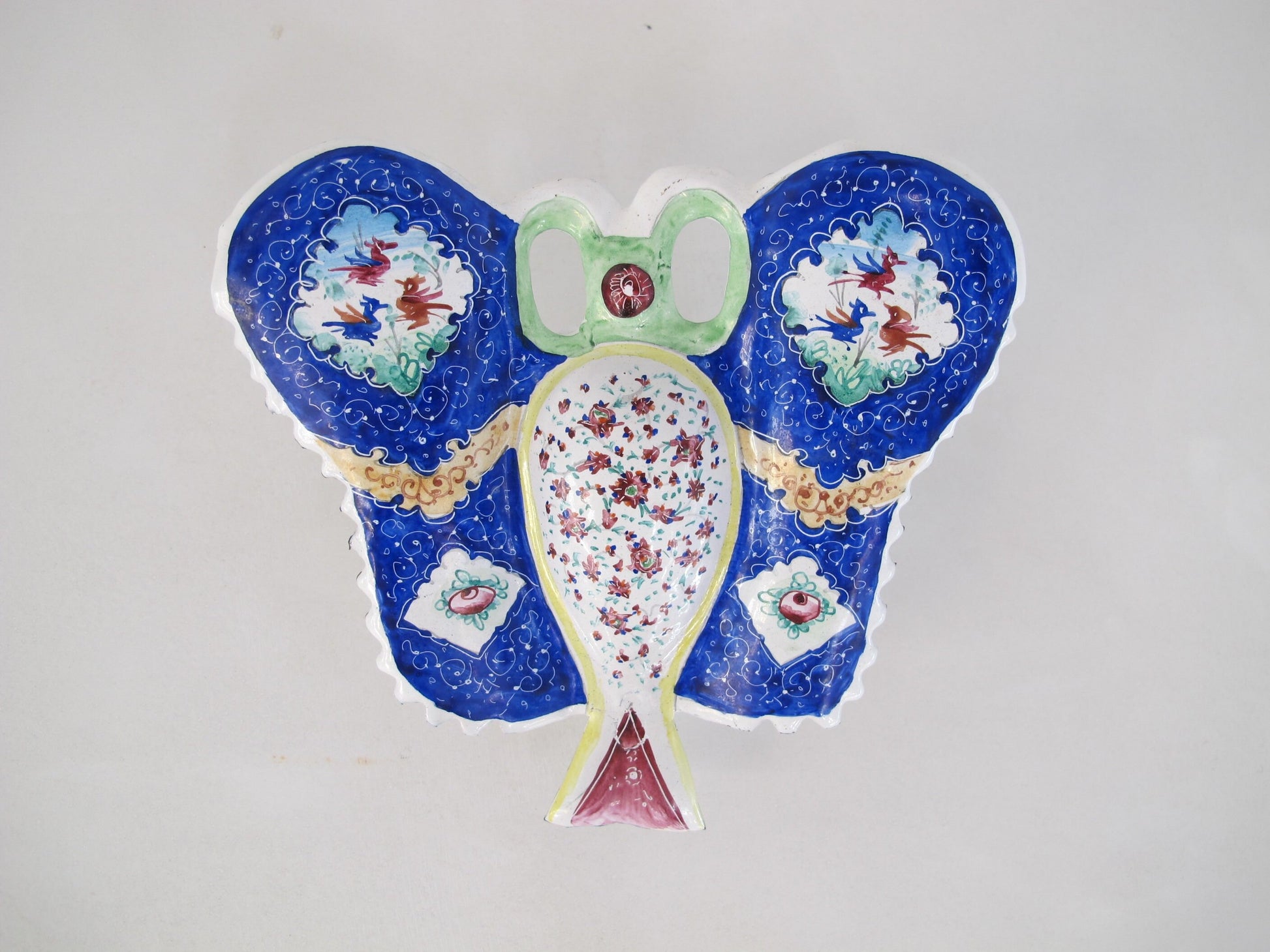 Butterfly Persian Porcelain Enamel Wall Pocket Blue Green Rose 1960s 1970s