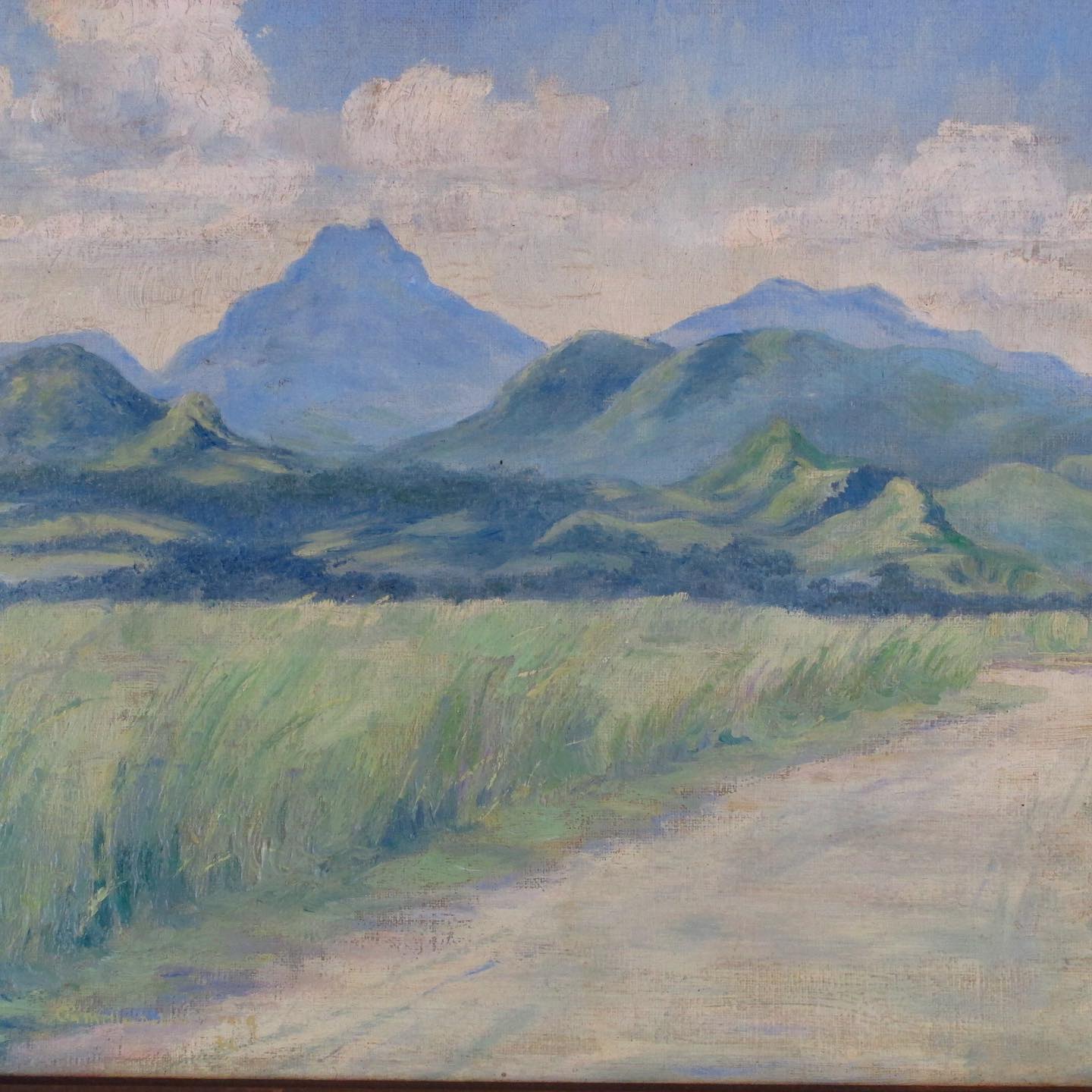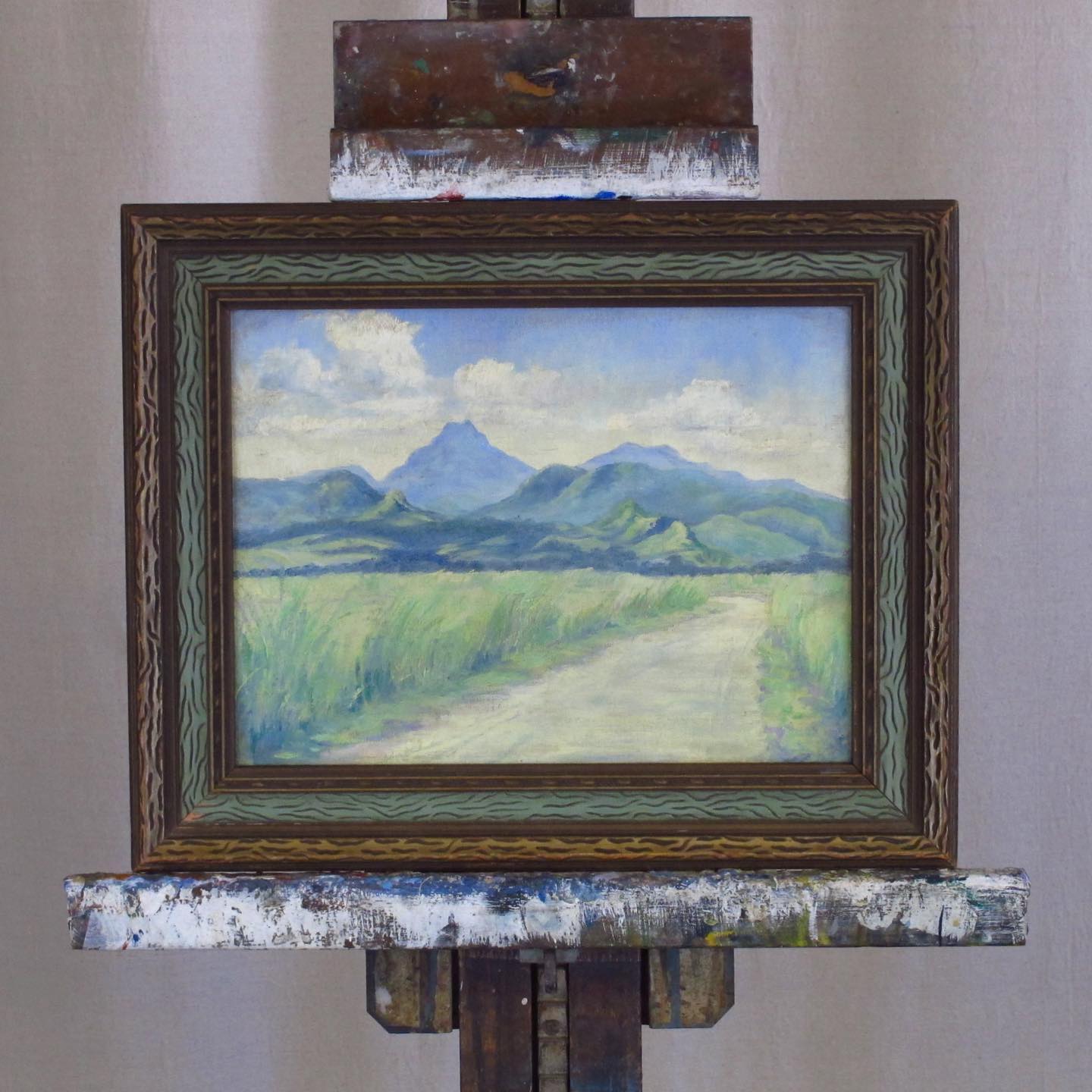 Camille Kufferath Signed Painting, Mountain and Meadow American Regionalist Landscape, c. 1920 in period frame. Excellent condition, beautiful on the wall.