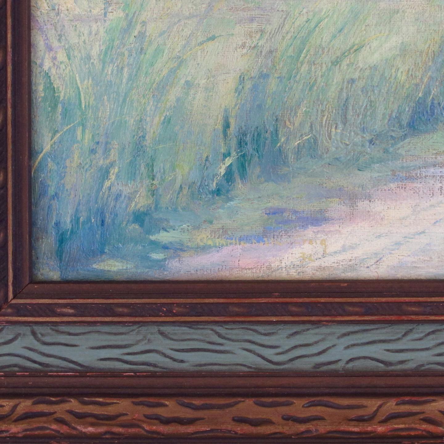 Camille Kufferath Signed Painting, Mountain and Meadow American Regionalist Landscape, c. 1920 in period frame