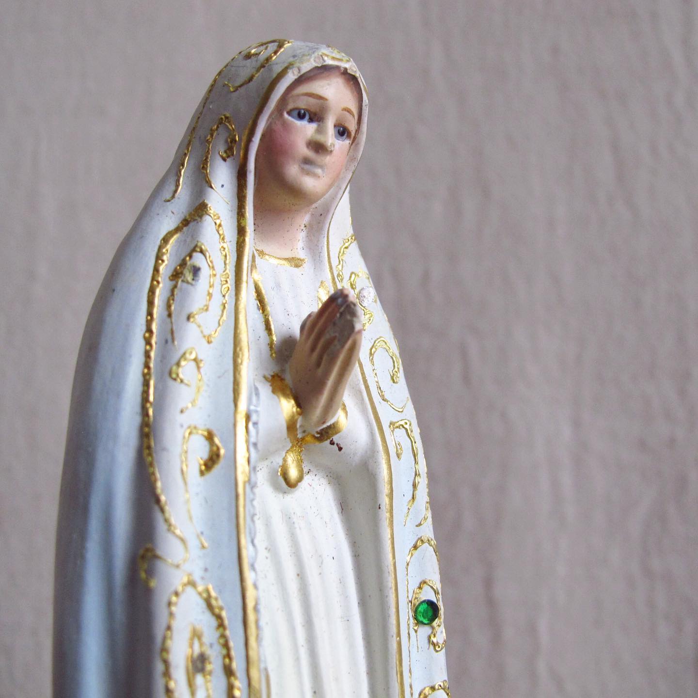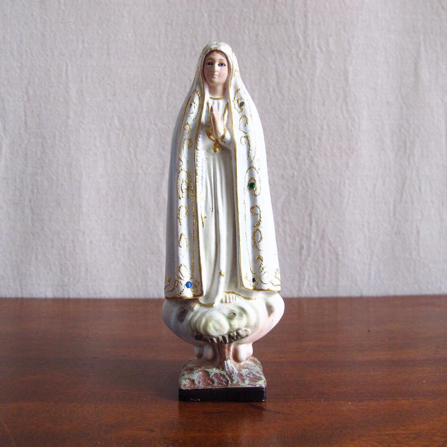 Chalkware or Chalk Madonna with inset glass eyes and scattered jewels, c. 1920