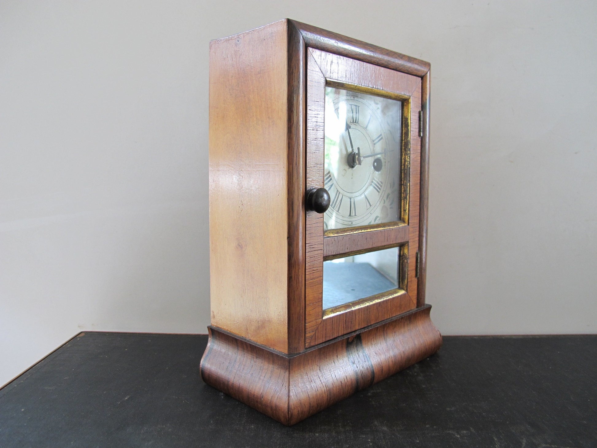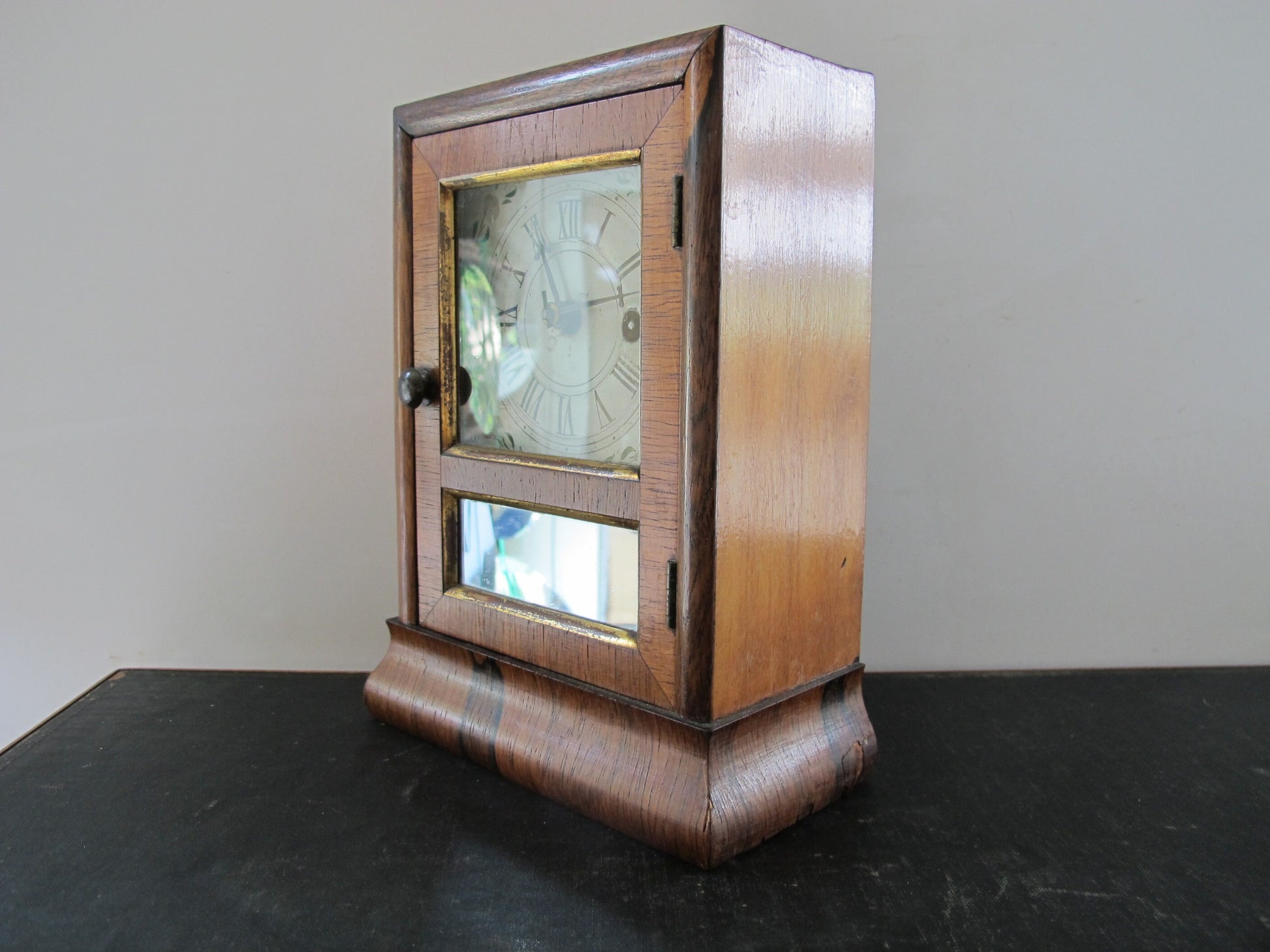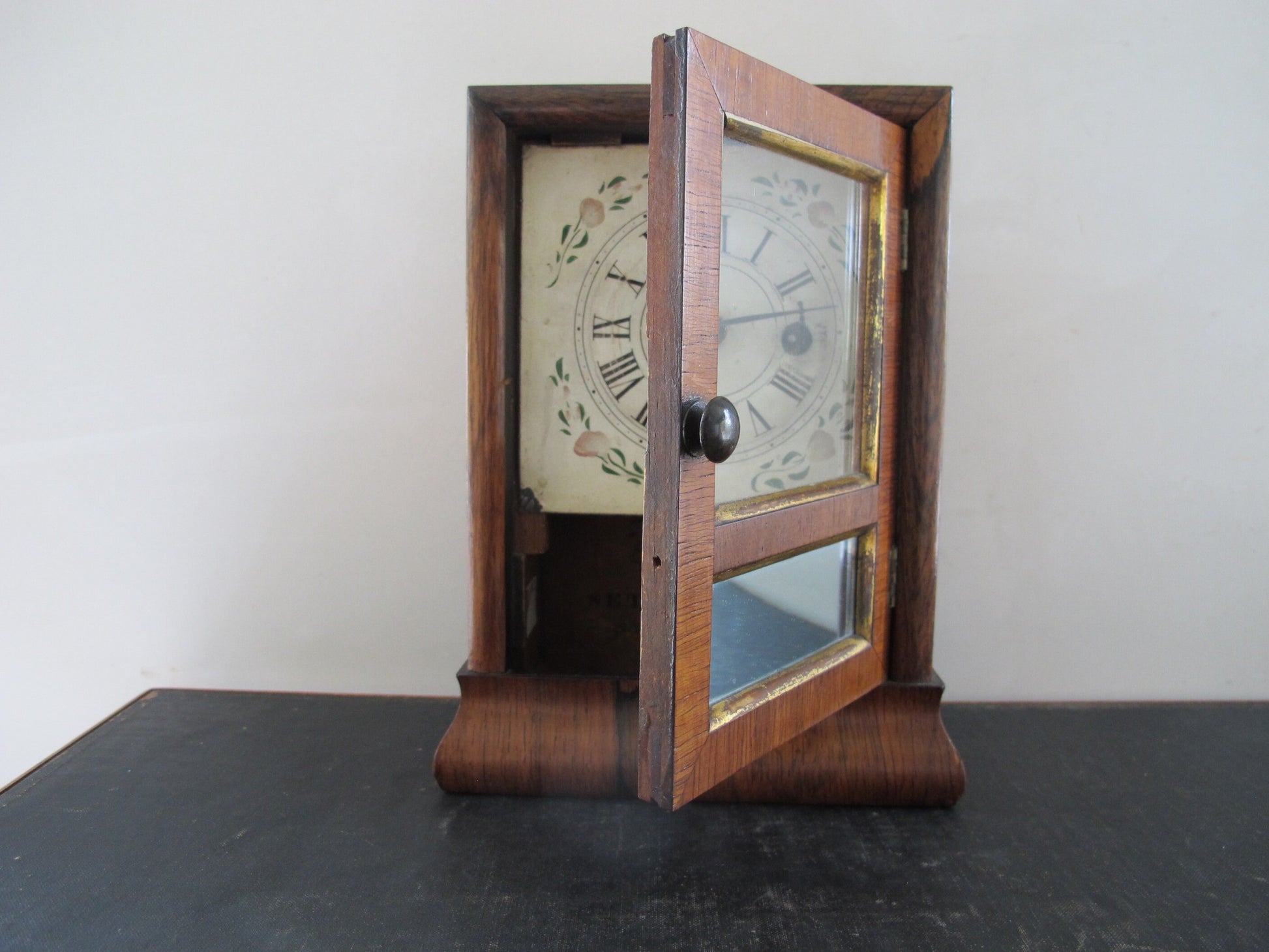 Clock Seth Thomas Miniature Mantle Clock Diminutive 1830s 1840s Rosewood Veneer Handpainted Face