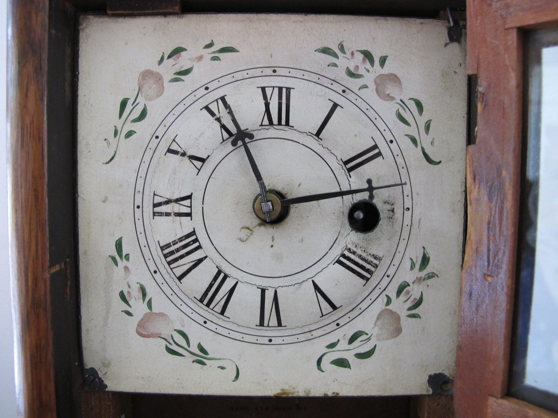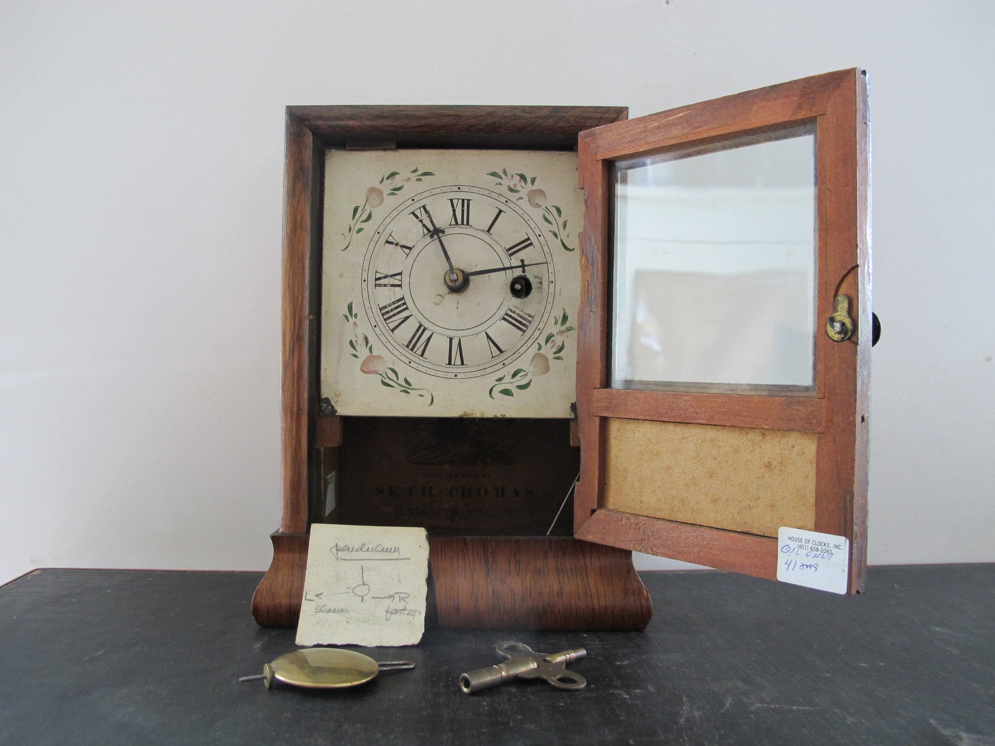 Clock Seth Thomas Miniature Mantle Clock Diminutive 1830s 1840s Rosewood Veneer Handpainted Face Museum Deaccessioned