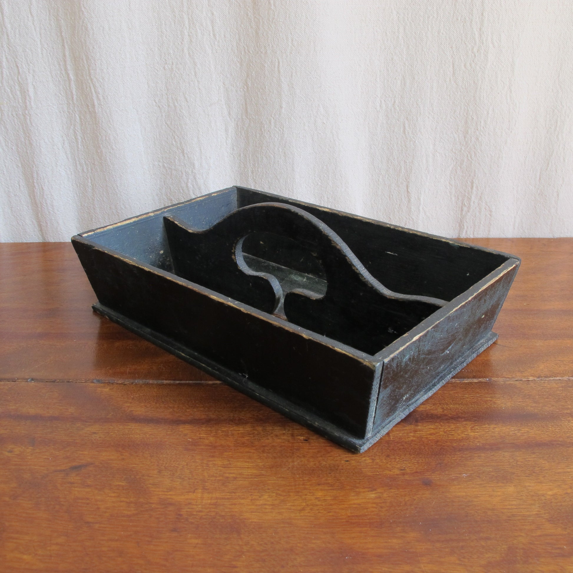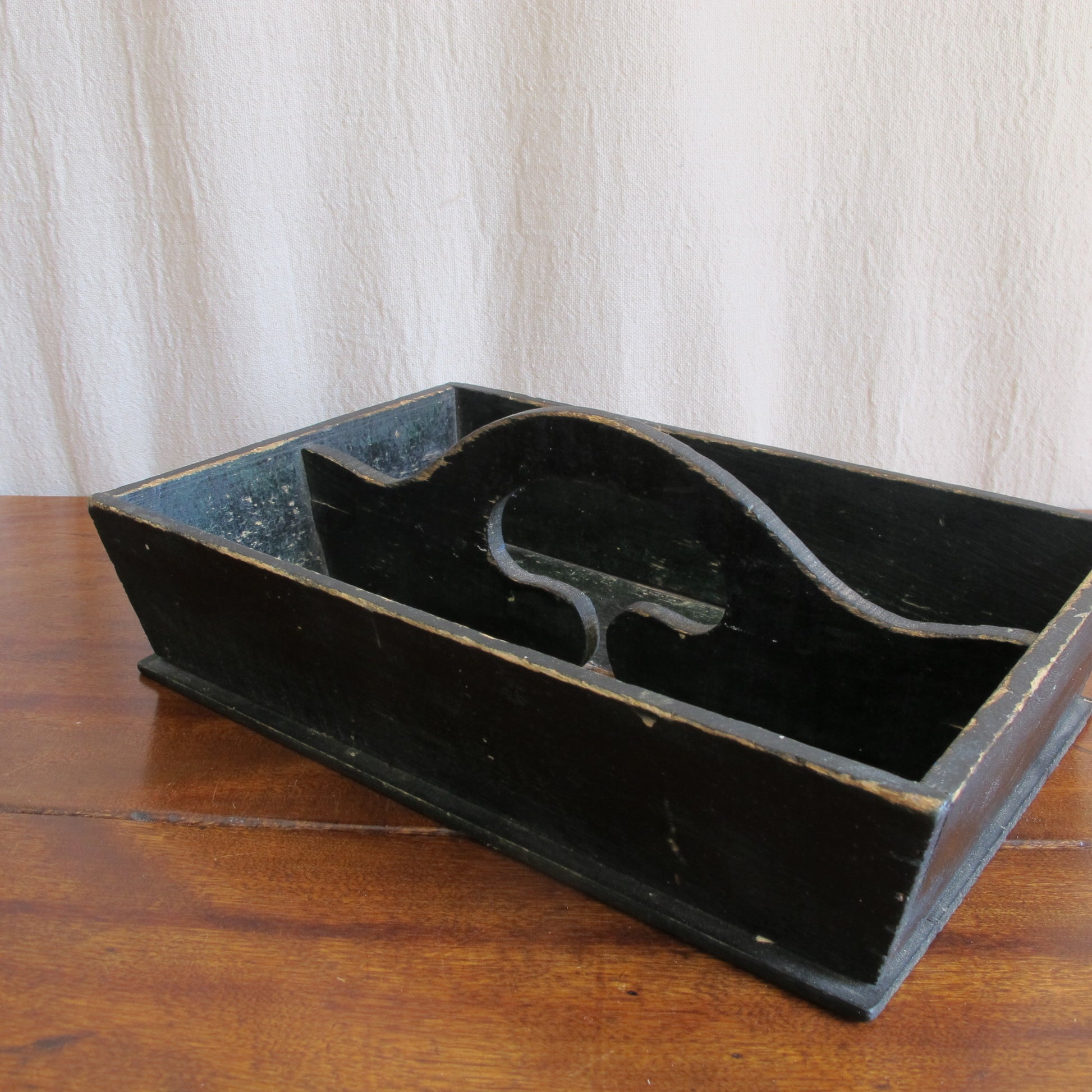 Cutlery box in original green paint surface, American c. 1850, wonderfully sculptural