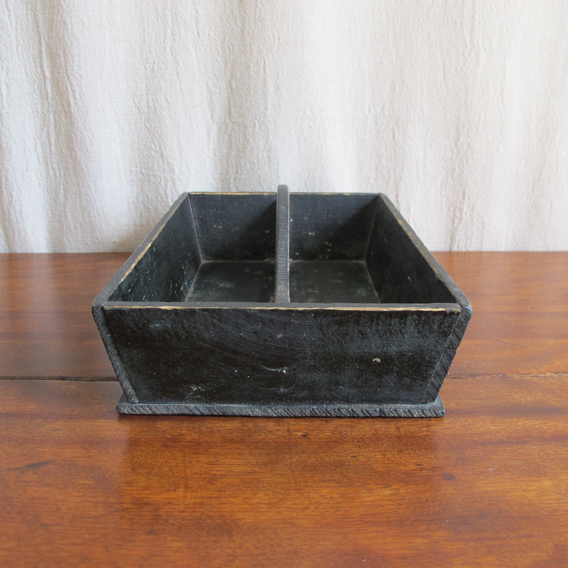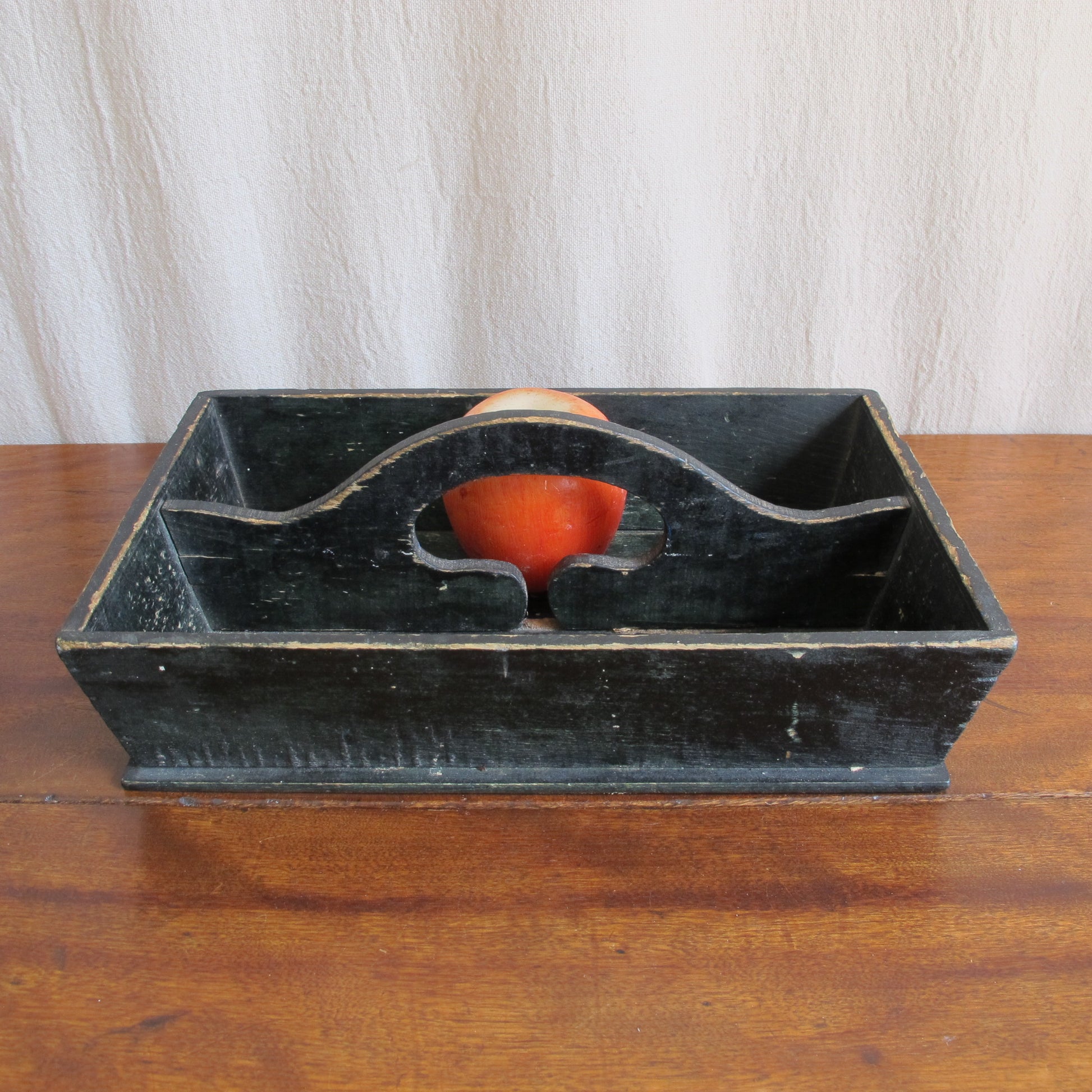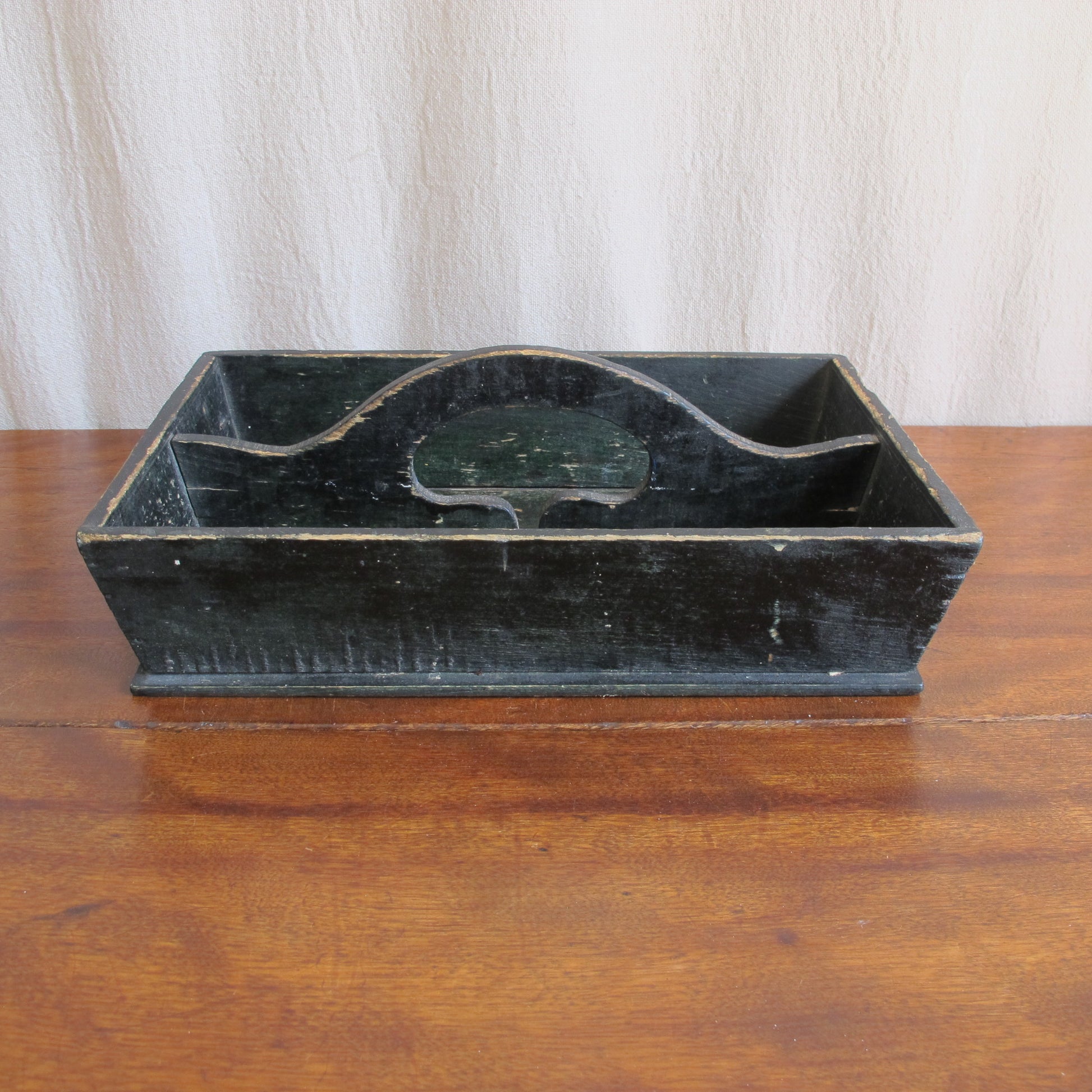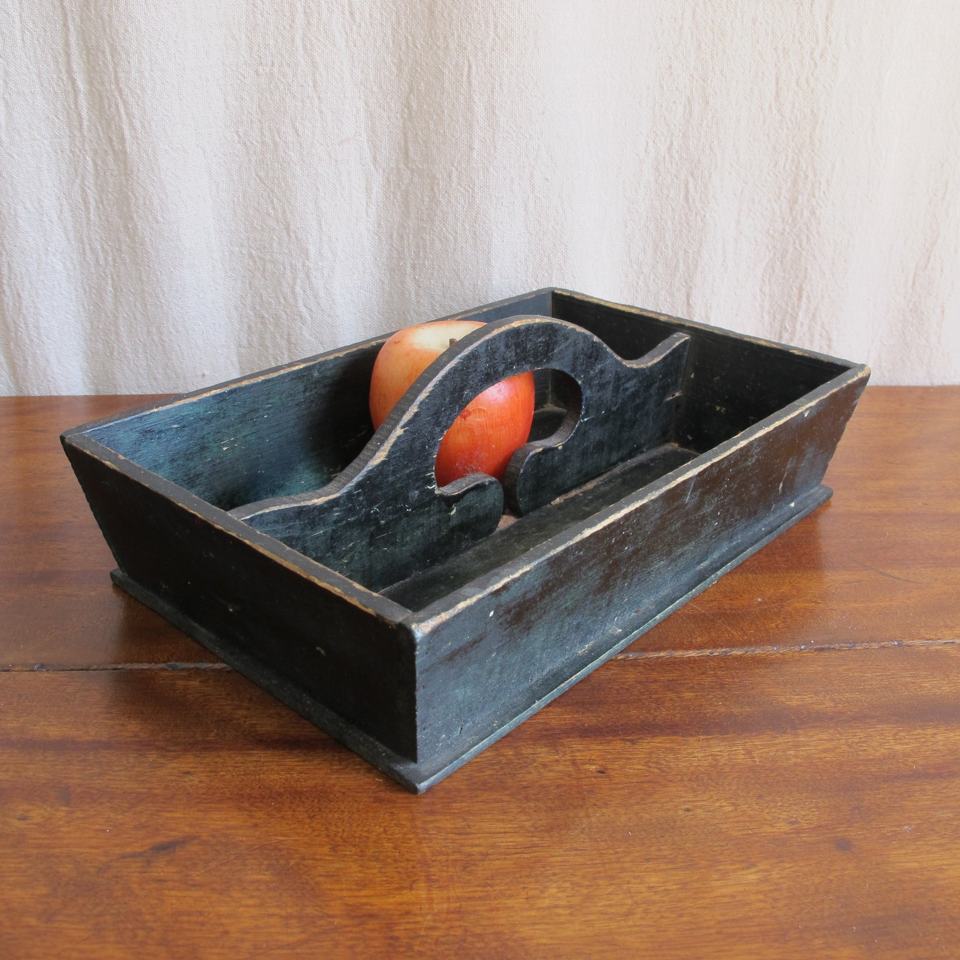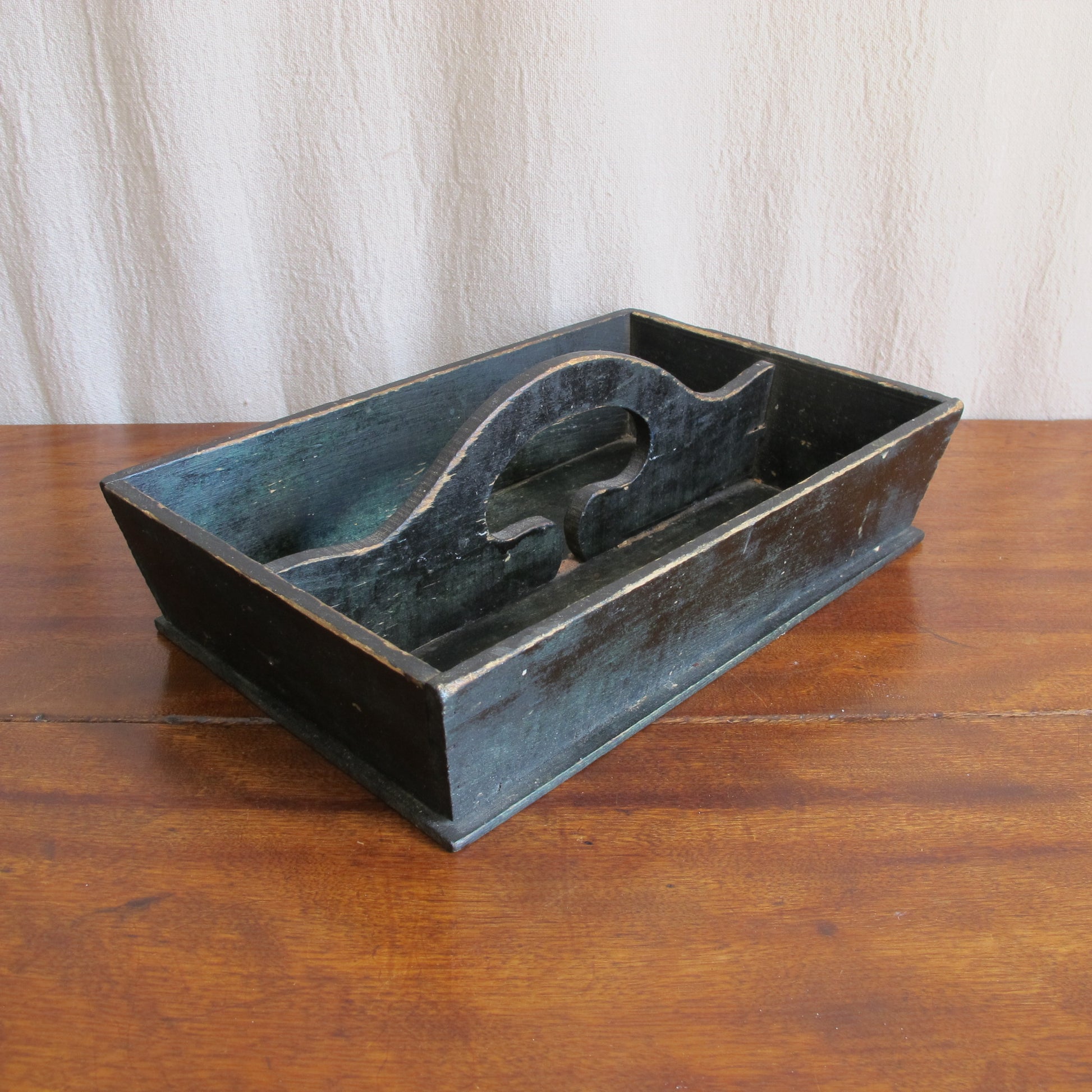 Cutlery box in original green paint surface, American c. 1850, vintage antique