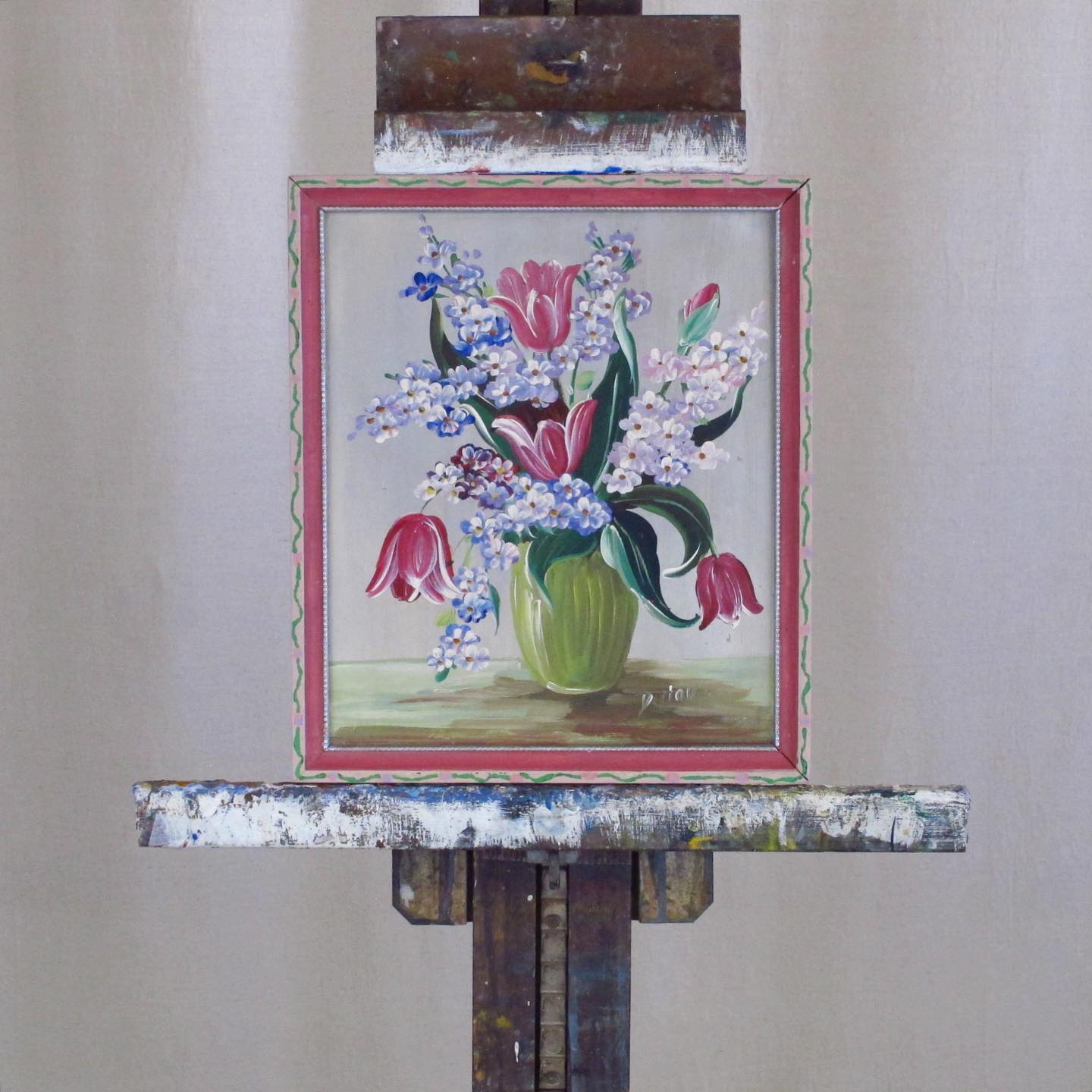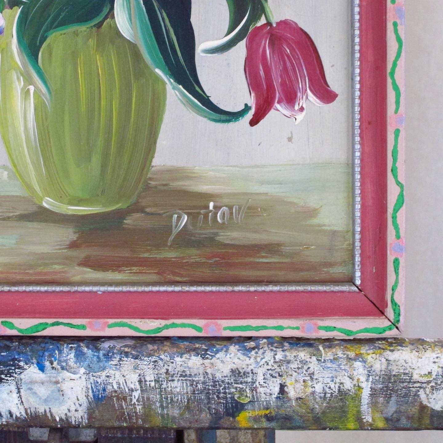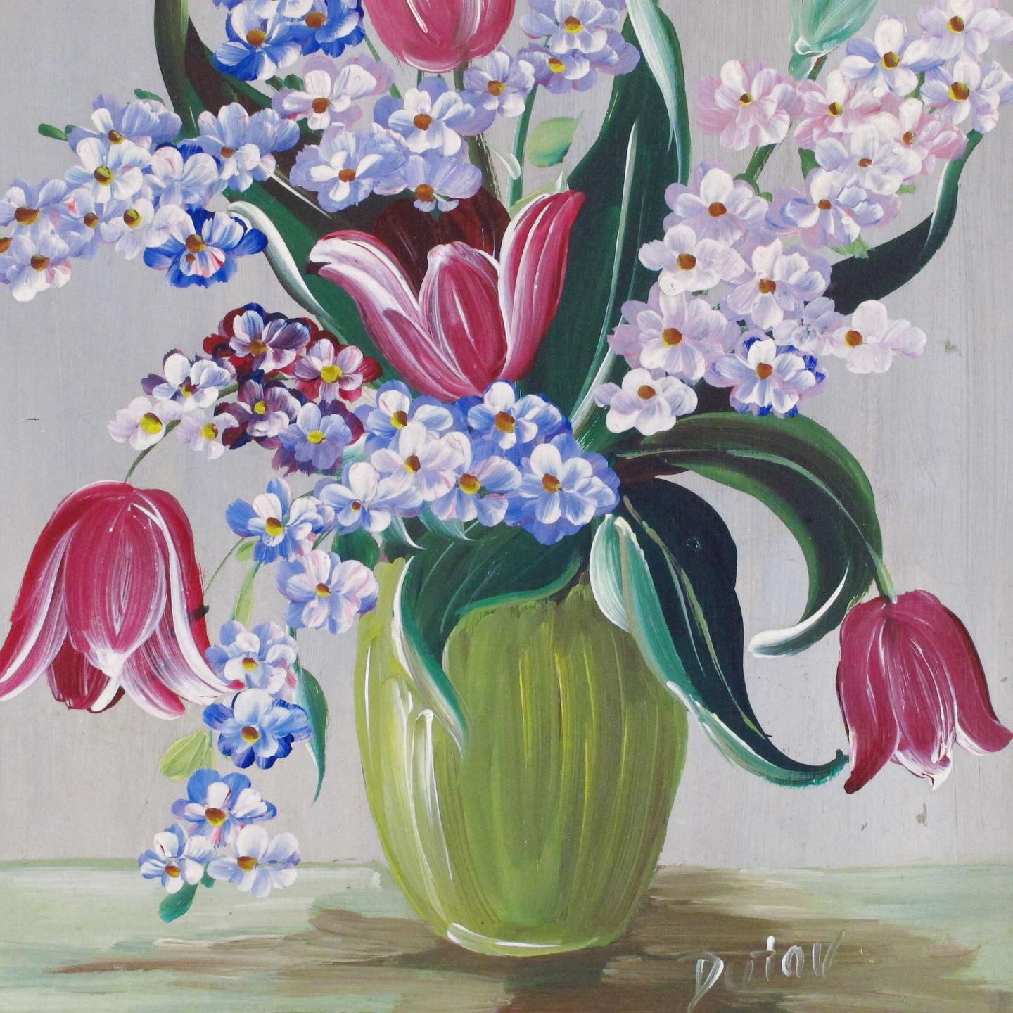 Dutav Signed Still Life of Tulips and Lilacs, c. 1950, very Dorothy Draper