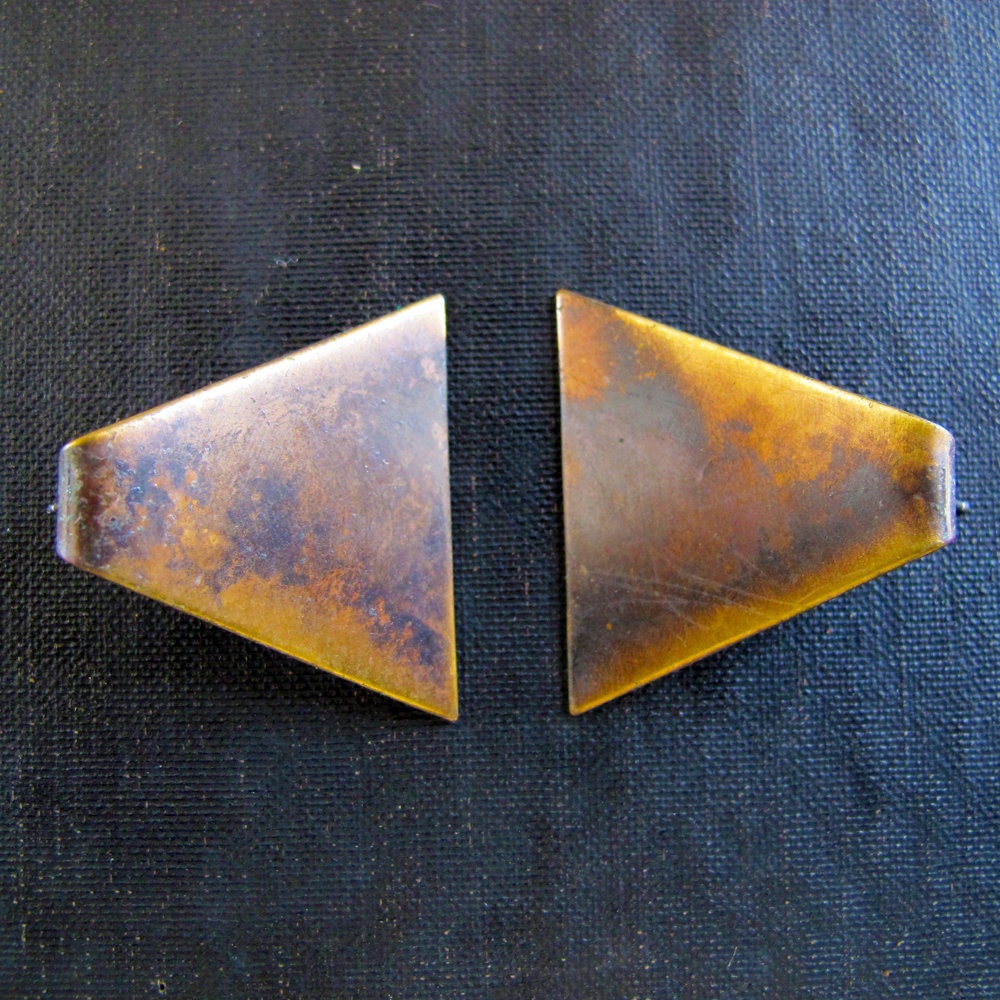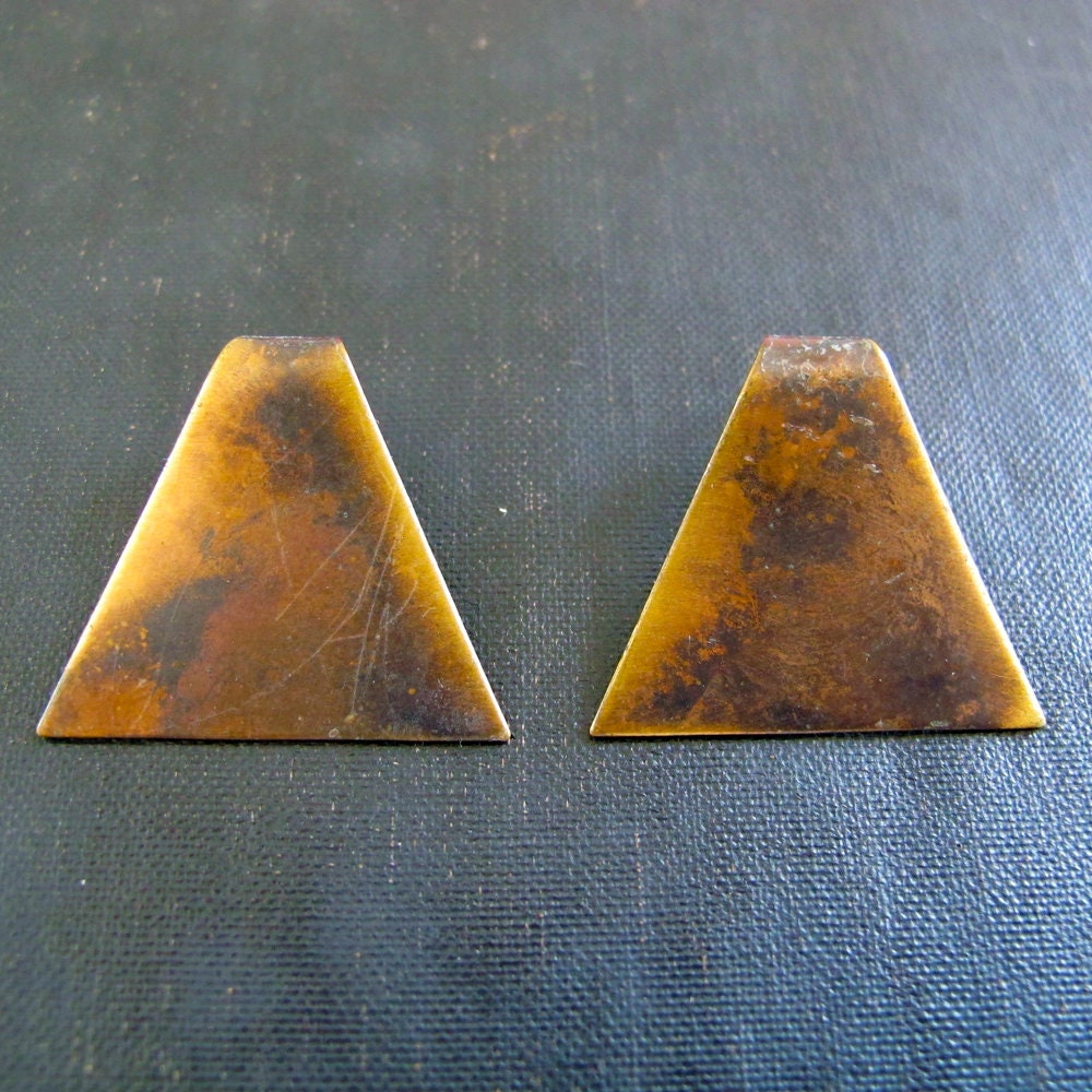 Earrings Modernist Copper Artist Made 1960s Triangle Patina Minimalist