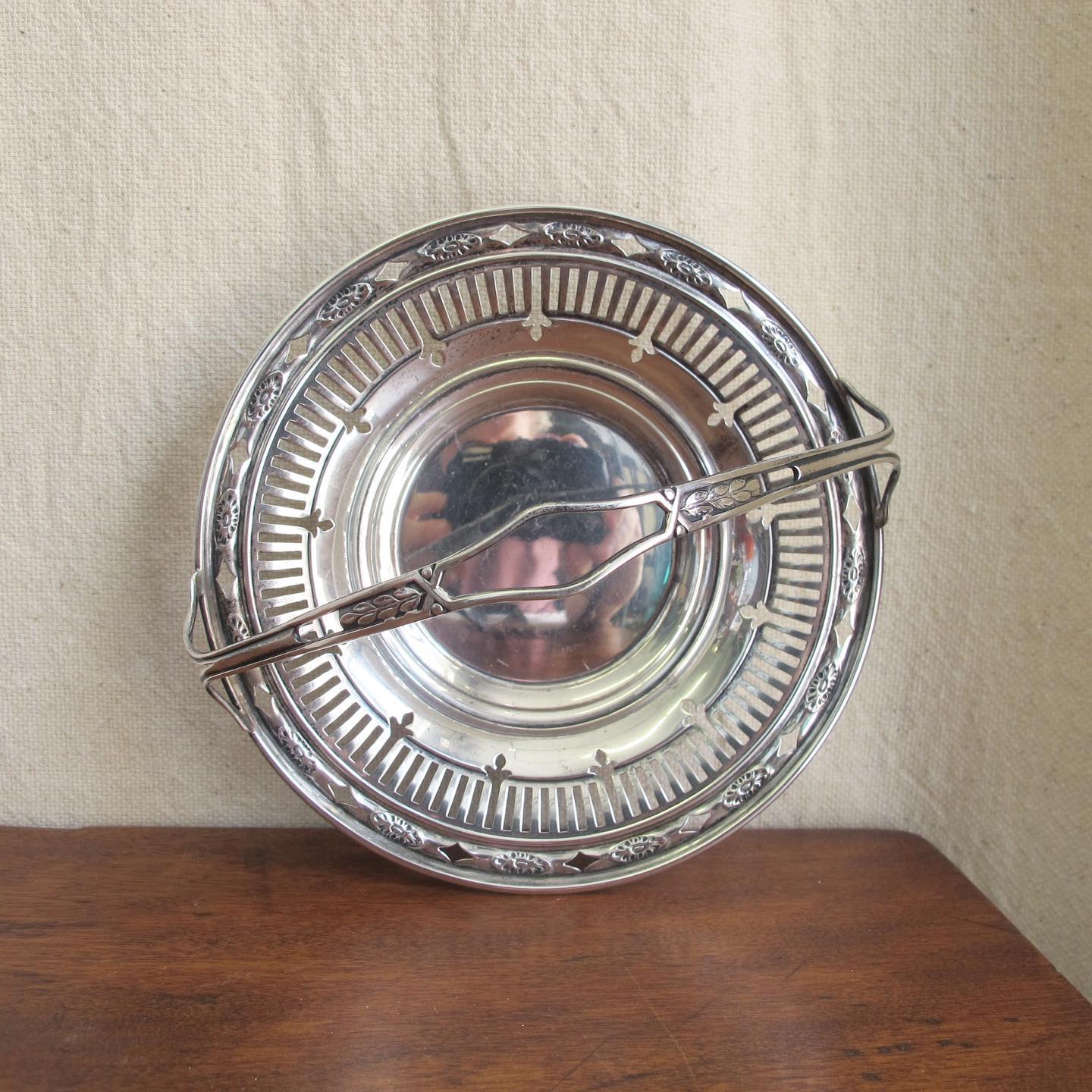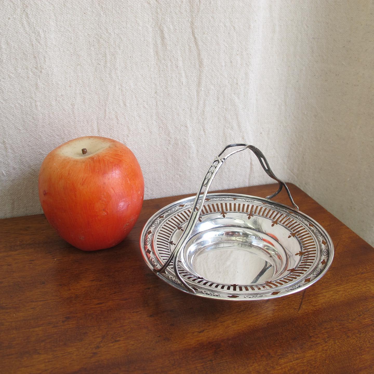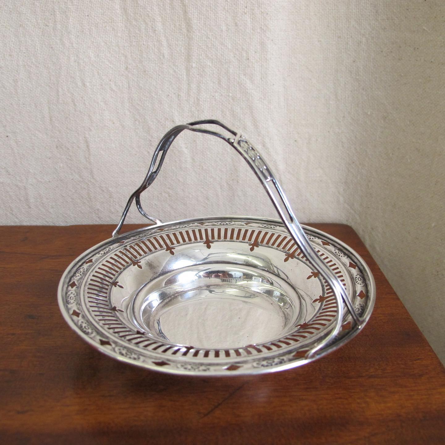 Edwardian sterling silver reticulated nut or candy basket / dish with handle and classical motifs, c. 1900