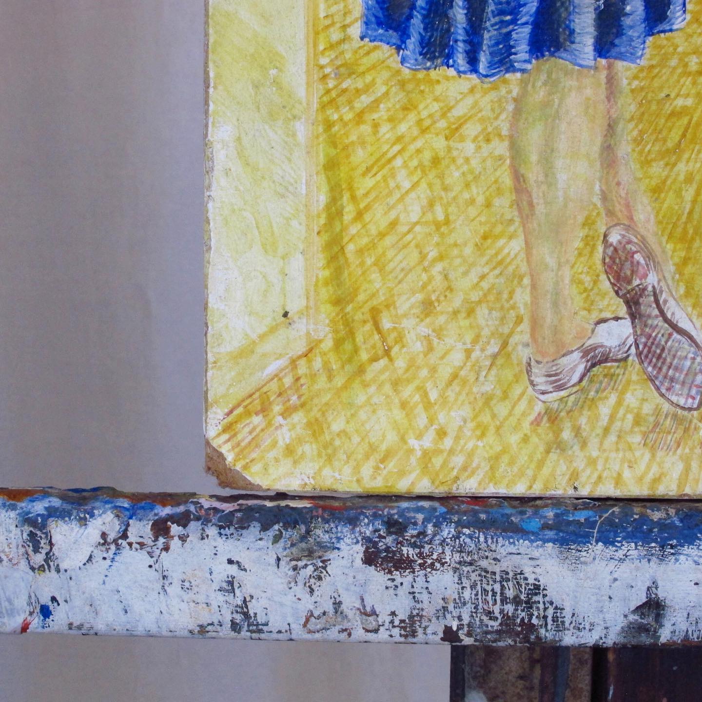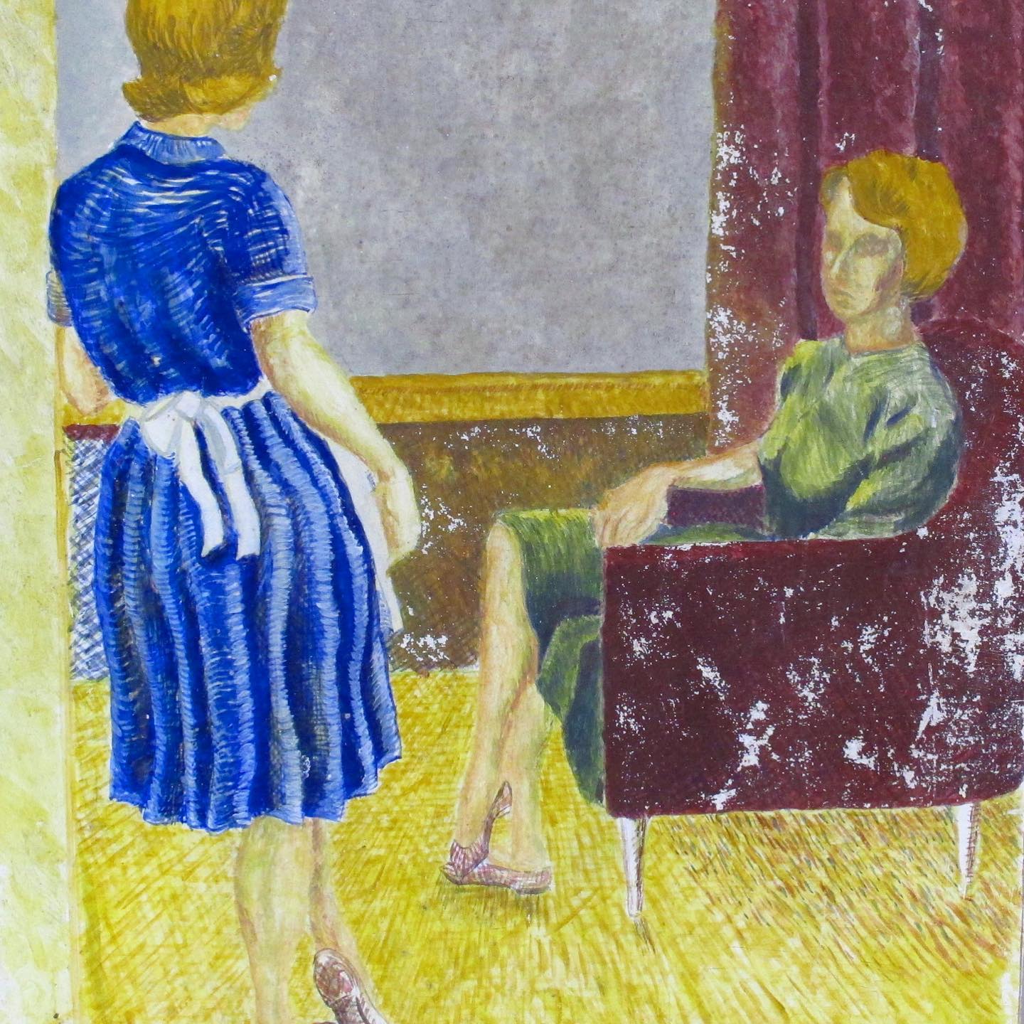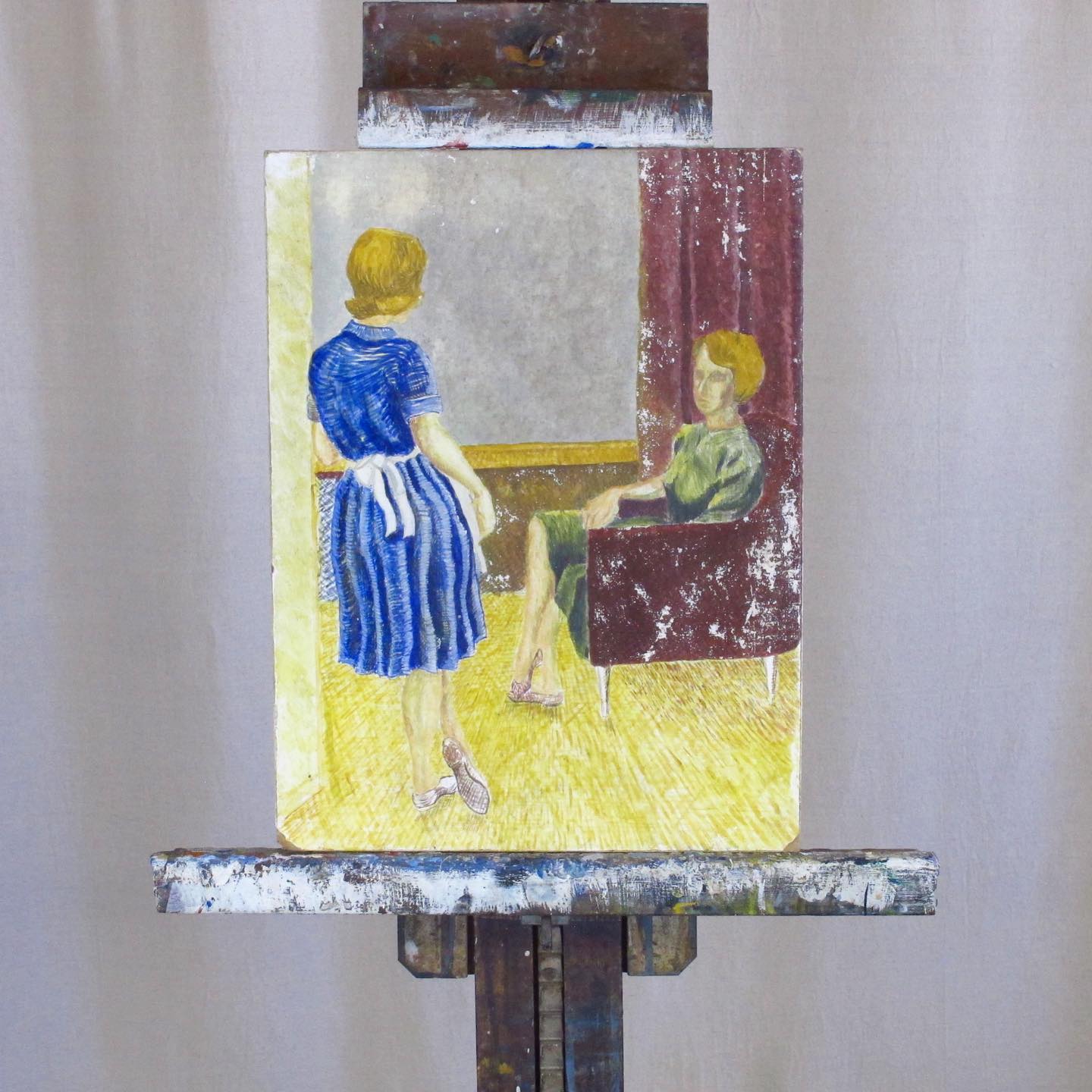 Egg Tempera 1950s Figure Study of Two Women, French c. 1950s