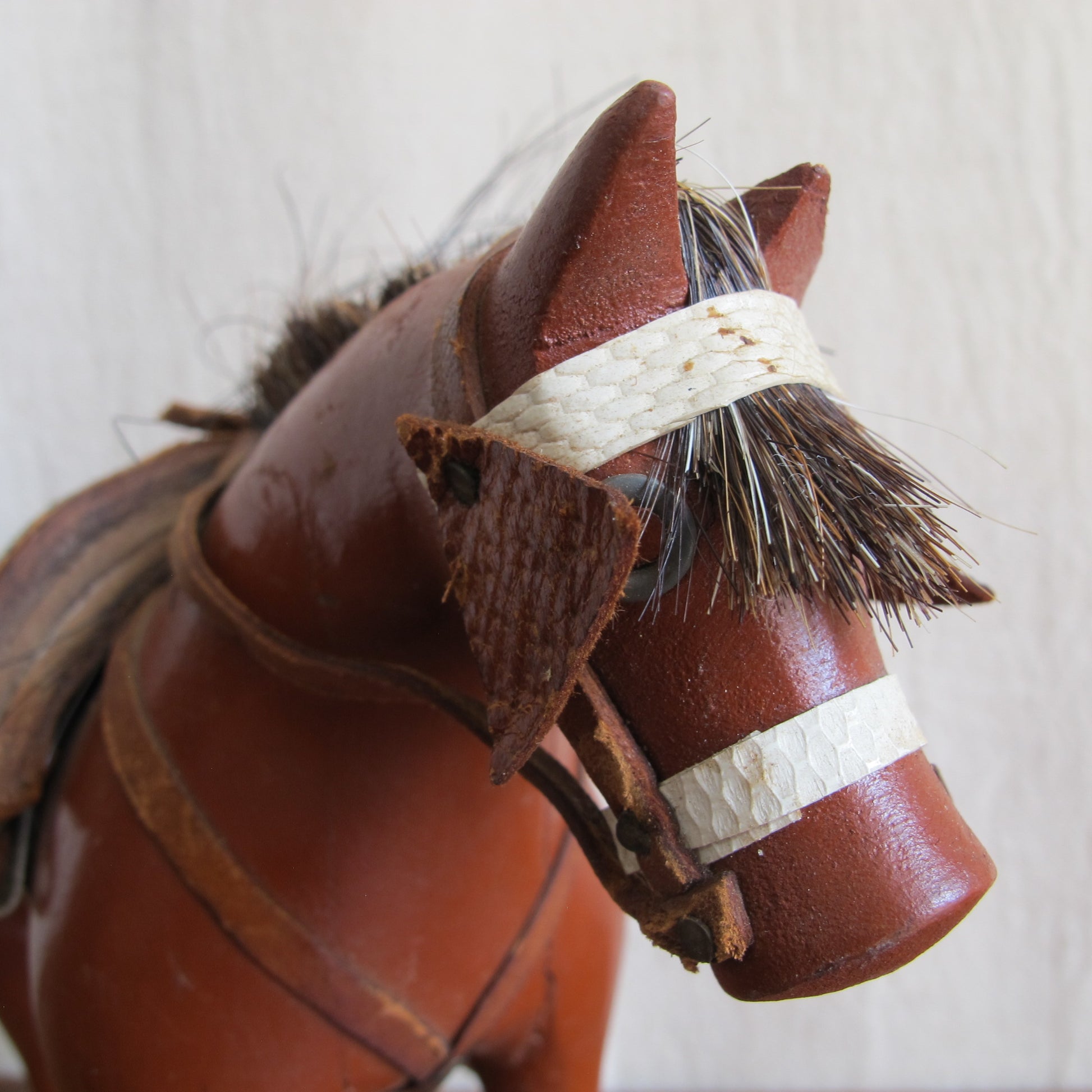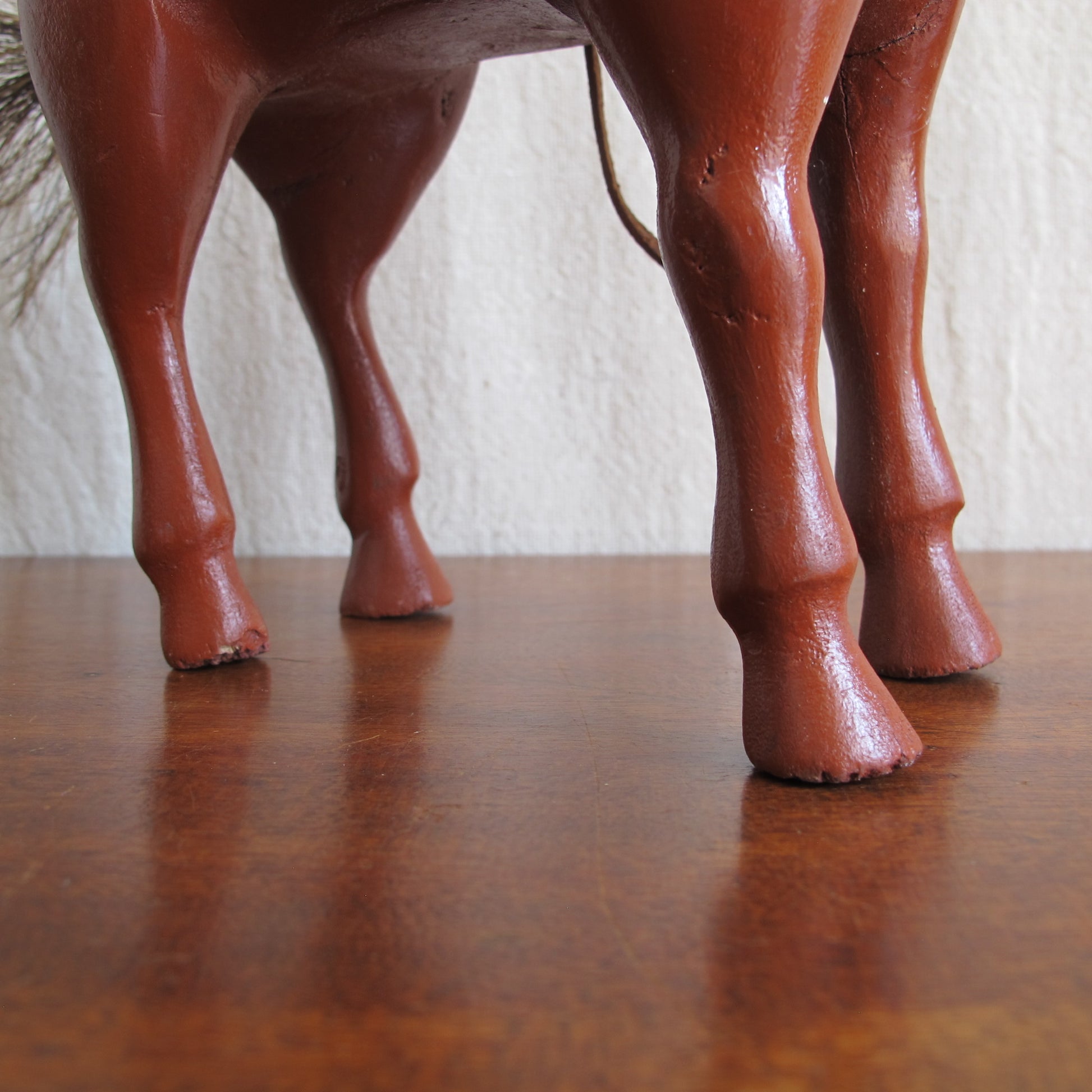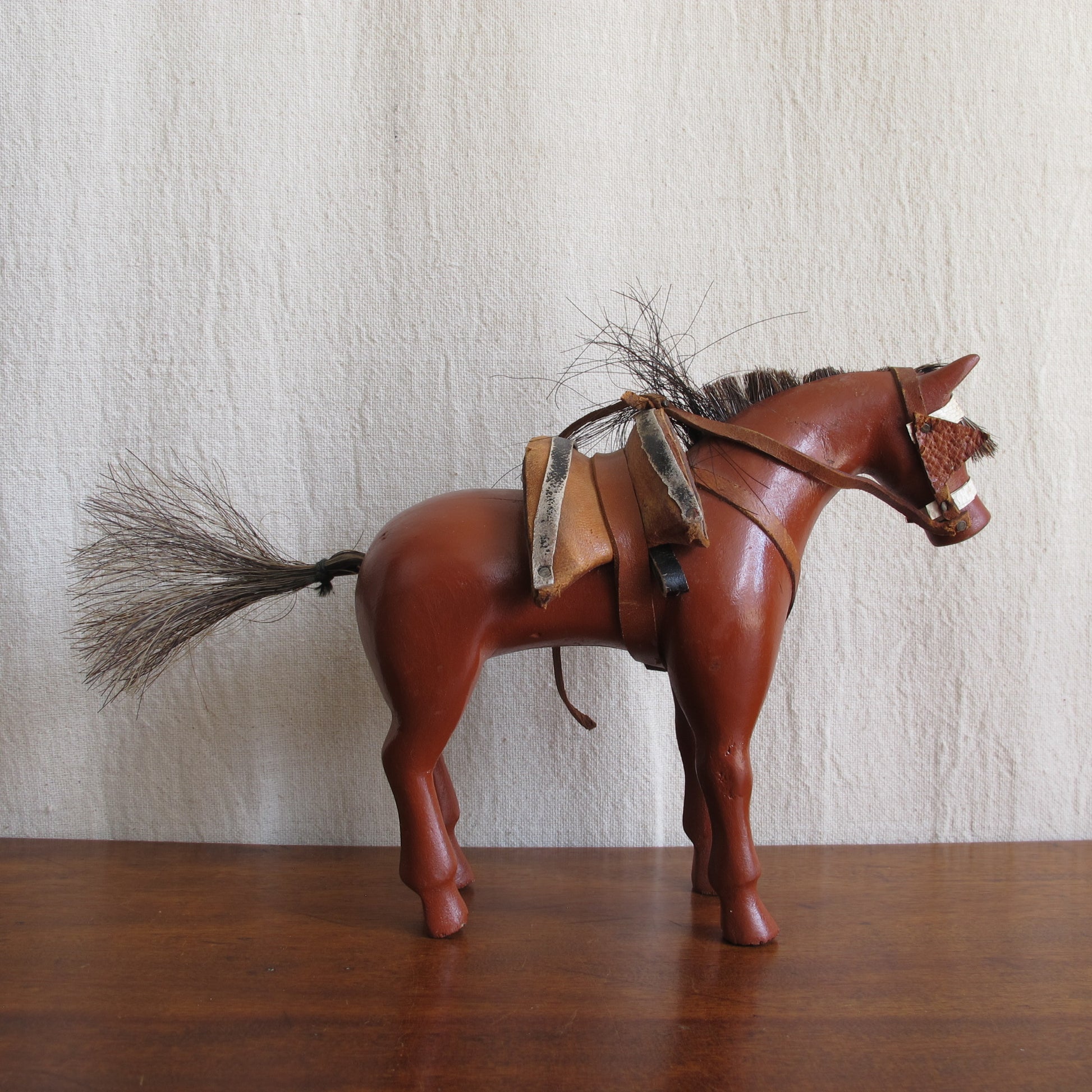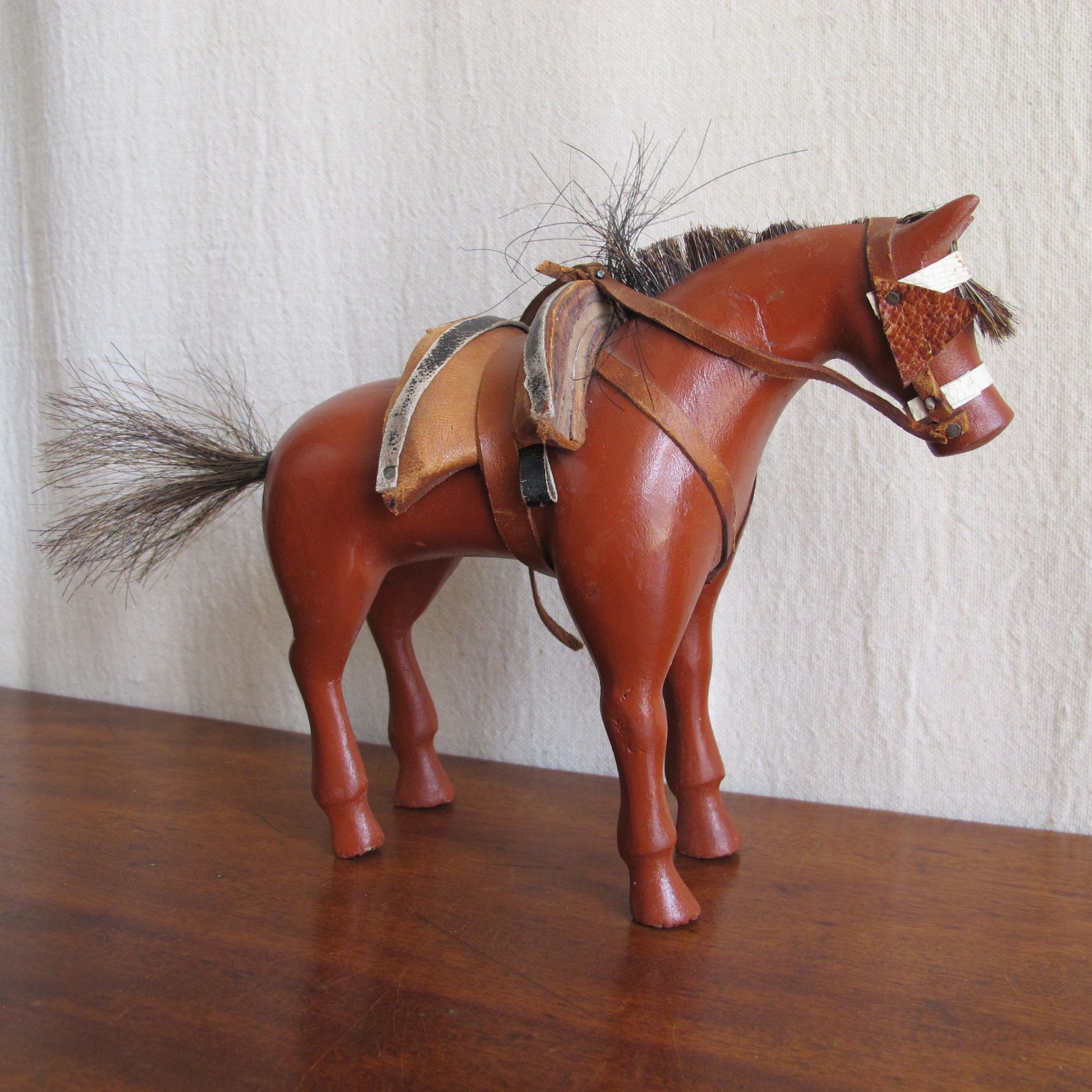 Folk art American dray horse toy, c. 1900., entirely handcarved with real horsehair, vintage antique