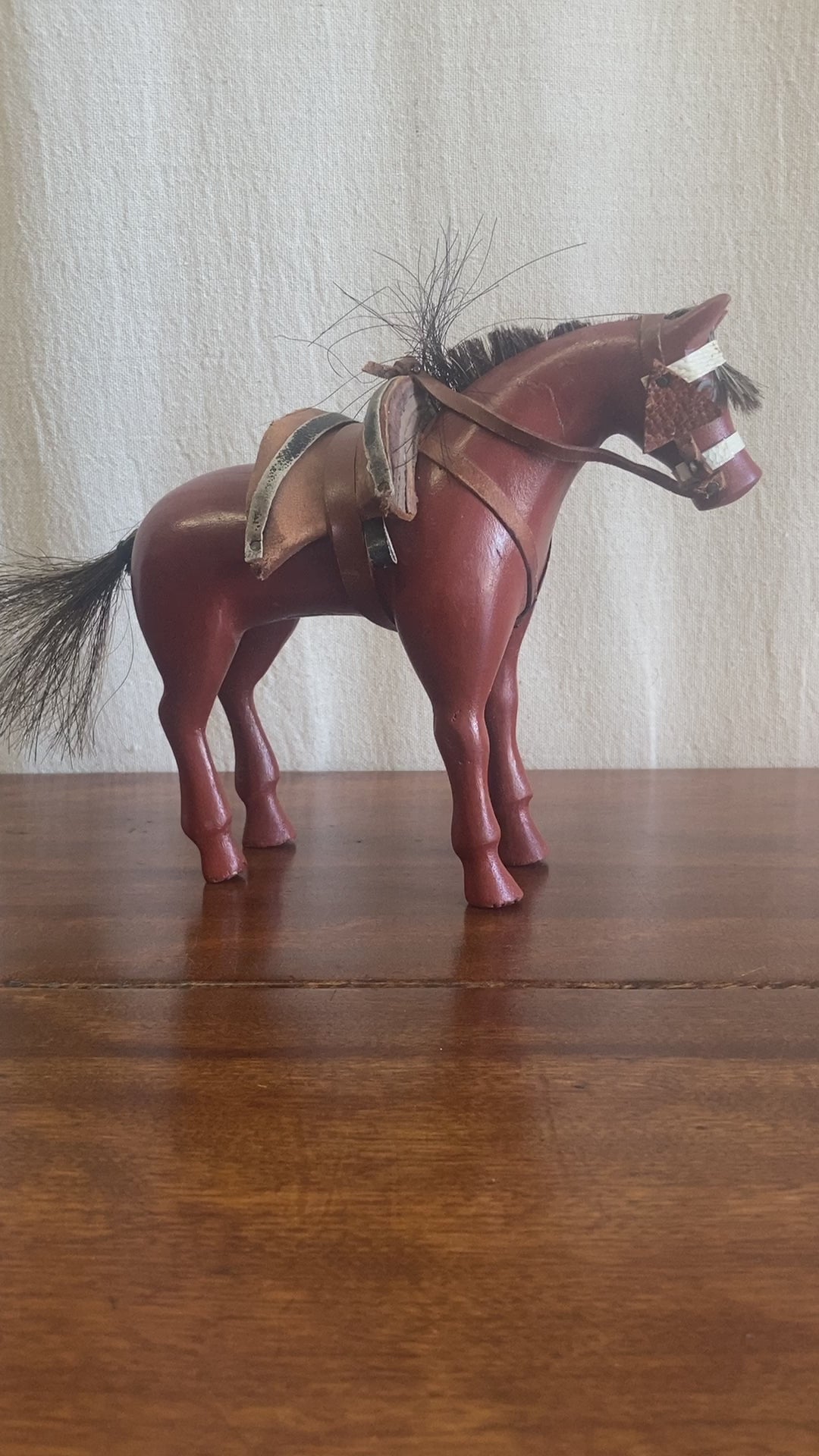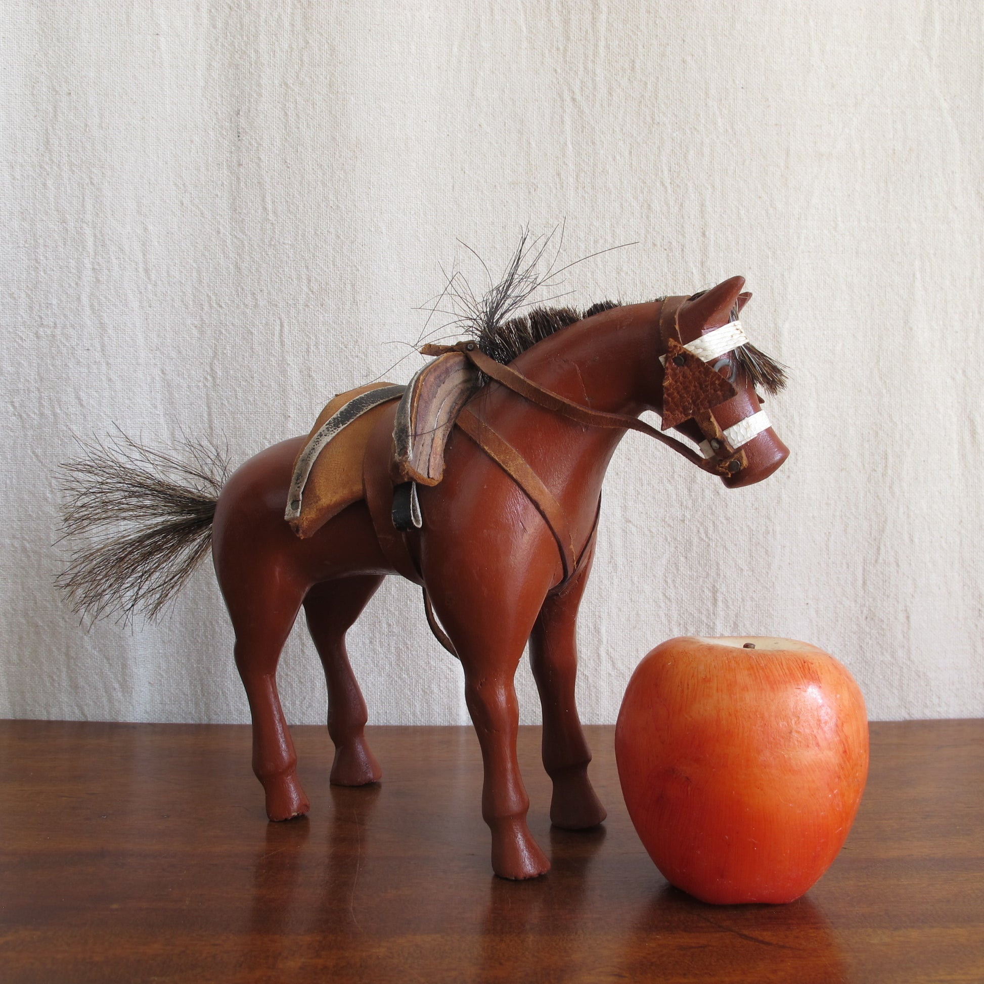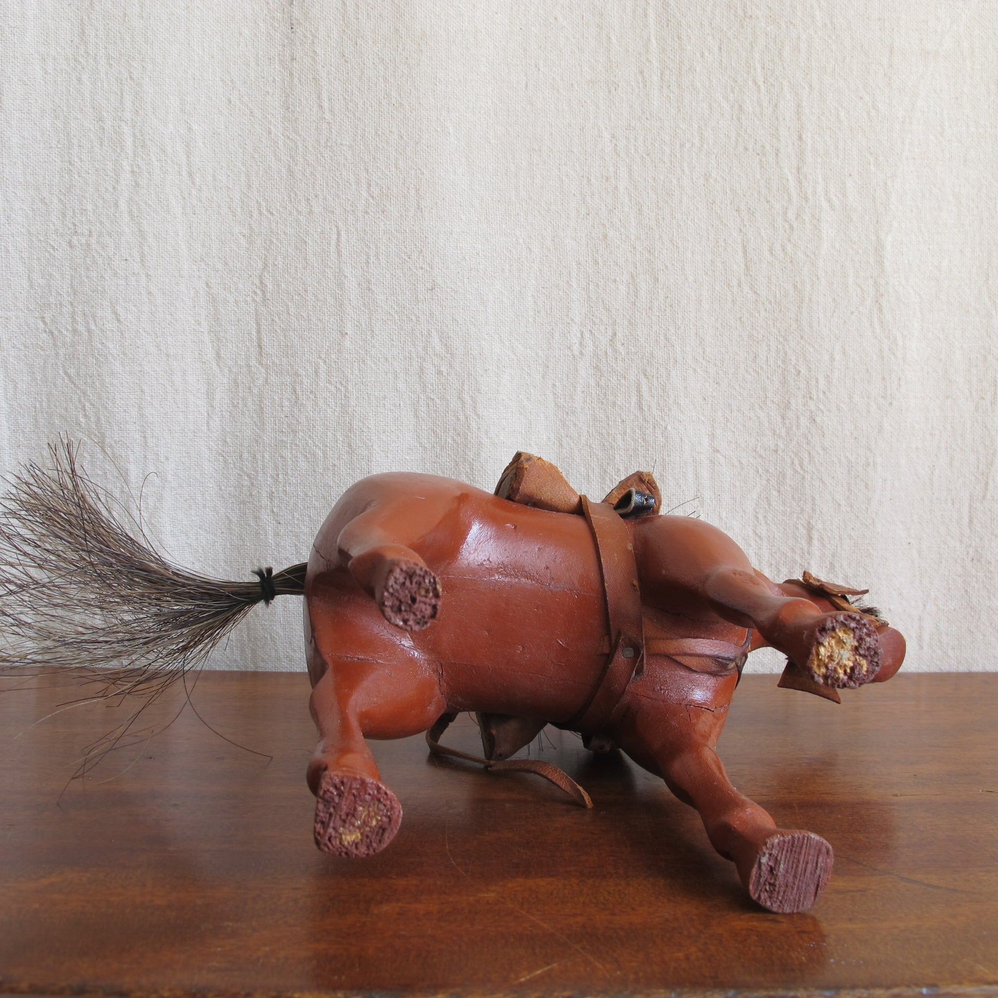 American folk art dray horse toy, c. 1900., entirely handcarved and real horsehair, possibly from an actual horse this was made to represent. Some losses, but presents beautifully.