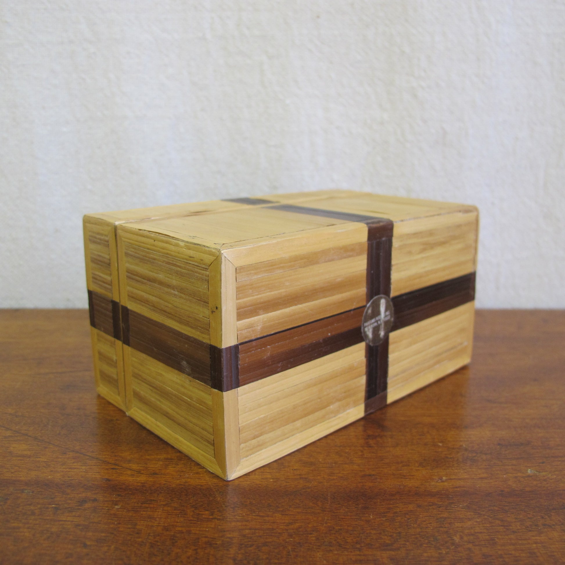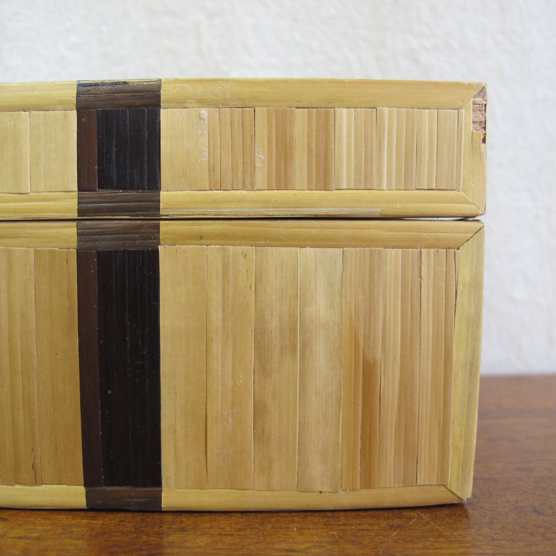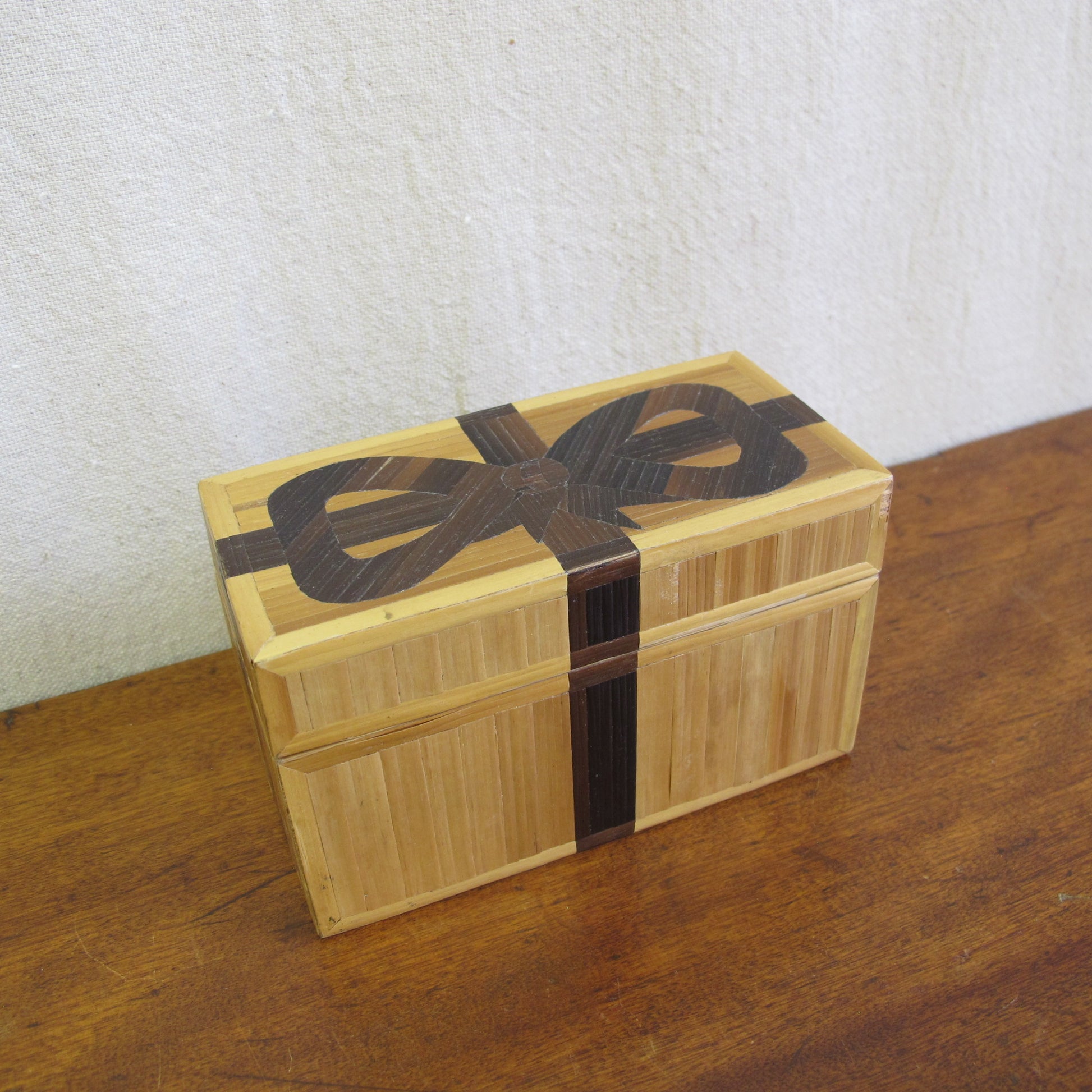 French straw marquetry box made by Rochas in the form of a gift box with bow, c. 1970