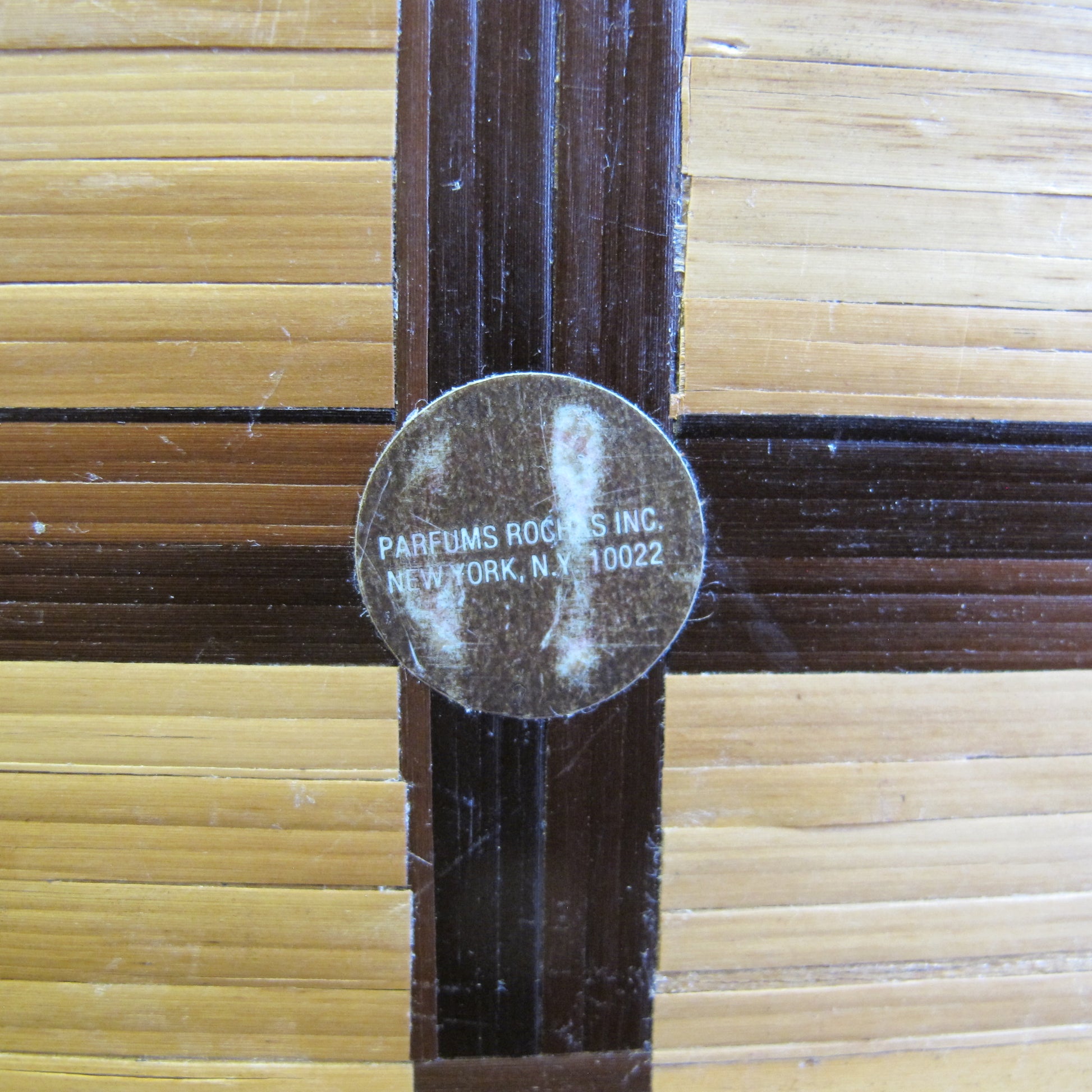 French straw marquetry box made by Rochas in the form of a gift box with bow, of which I can find no other examples. Exceptional craftsmanship, very minor loss to corner as shown but could easily be restored. Age unknown, perhaps 1970s.