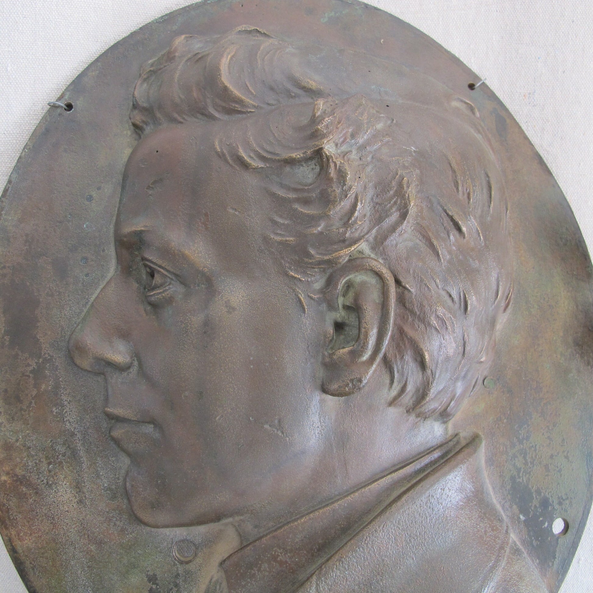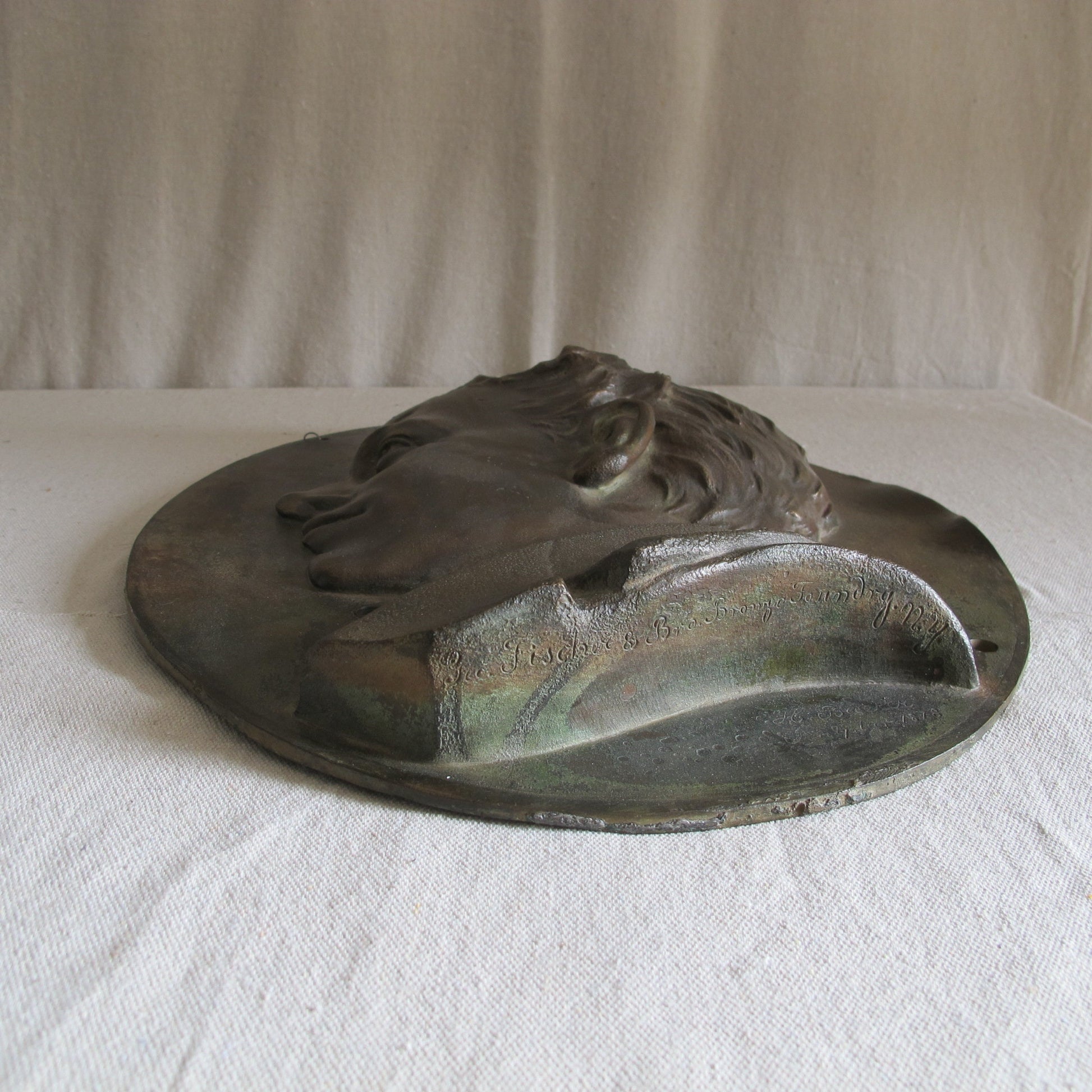 Henry Baerer Bronze Portrait Relief of a Young Man 1878 Signed Antique Sculpture Plaque