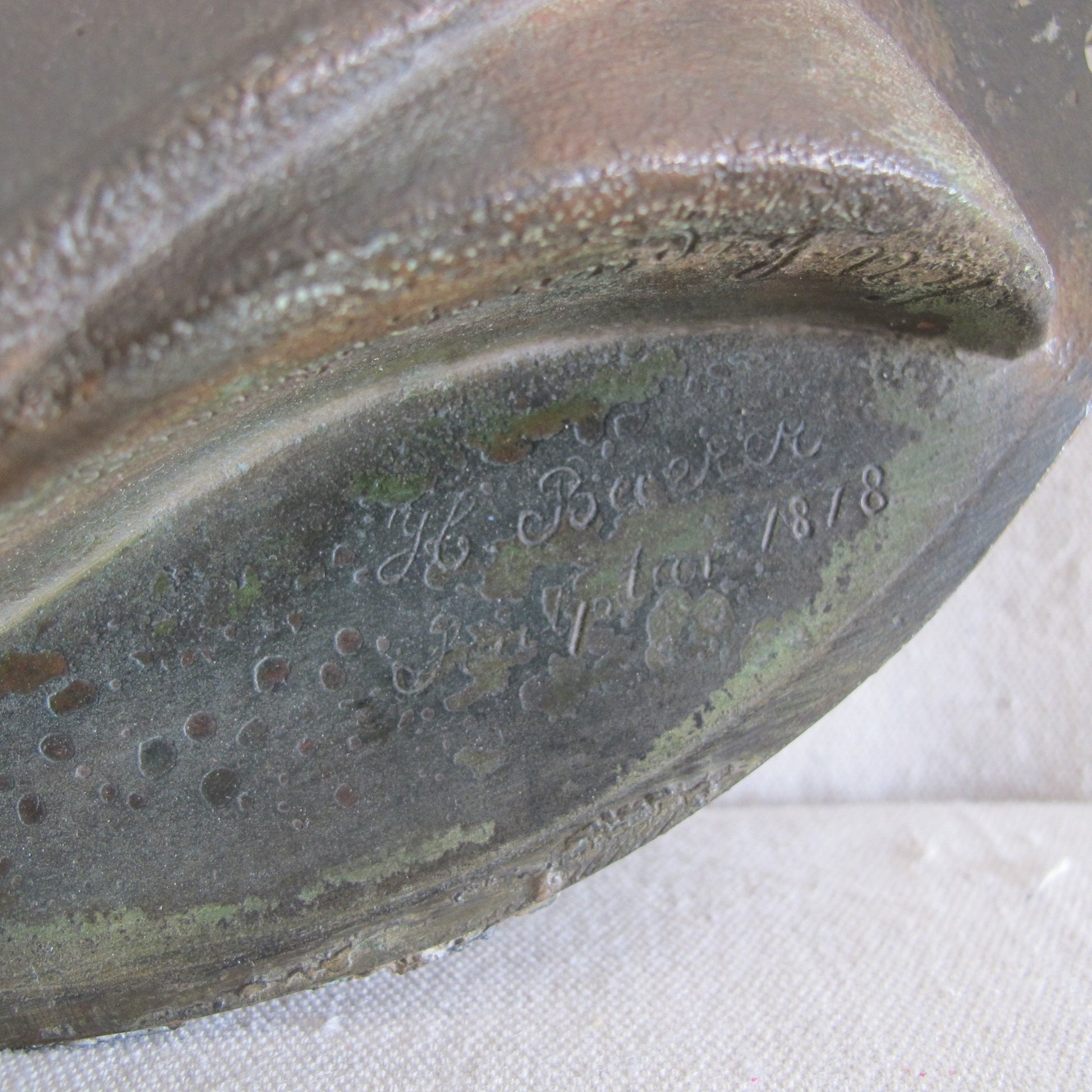 On offer a bronze portrait relief of a young man dated 1878 by well known sculptor Henry Baerer (1837-1908). Baerer was an American sculptor born in Munich, Germany. Baerer's work includes a bust of Beethoven in Central Park and the Puck of the Puck Building in New York.