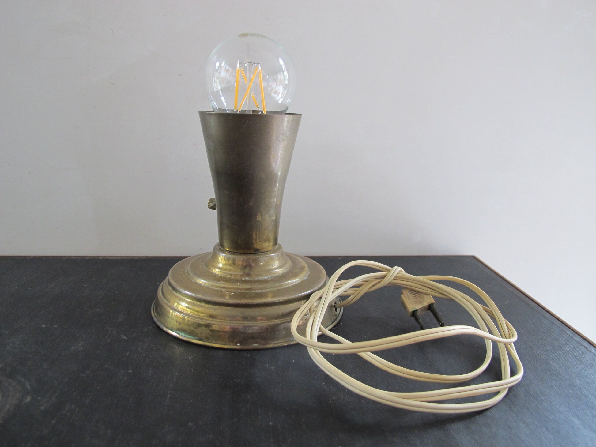 CONDITION: Pictures show all. Beautiful weathered patina. Could be polished if you choose, but I prefer it as is. The wiring is in good usable condition, but it's always wise to consider rewiring vintage lamps.