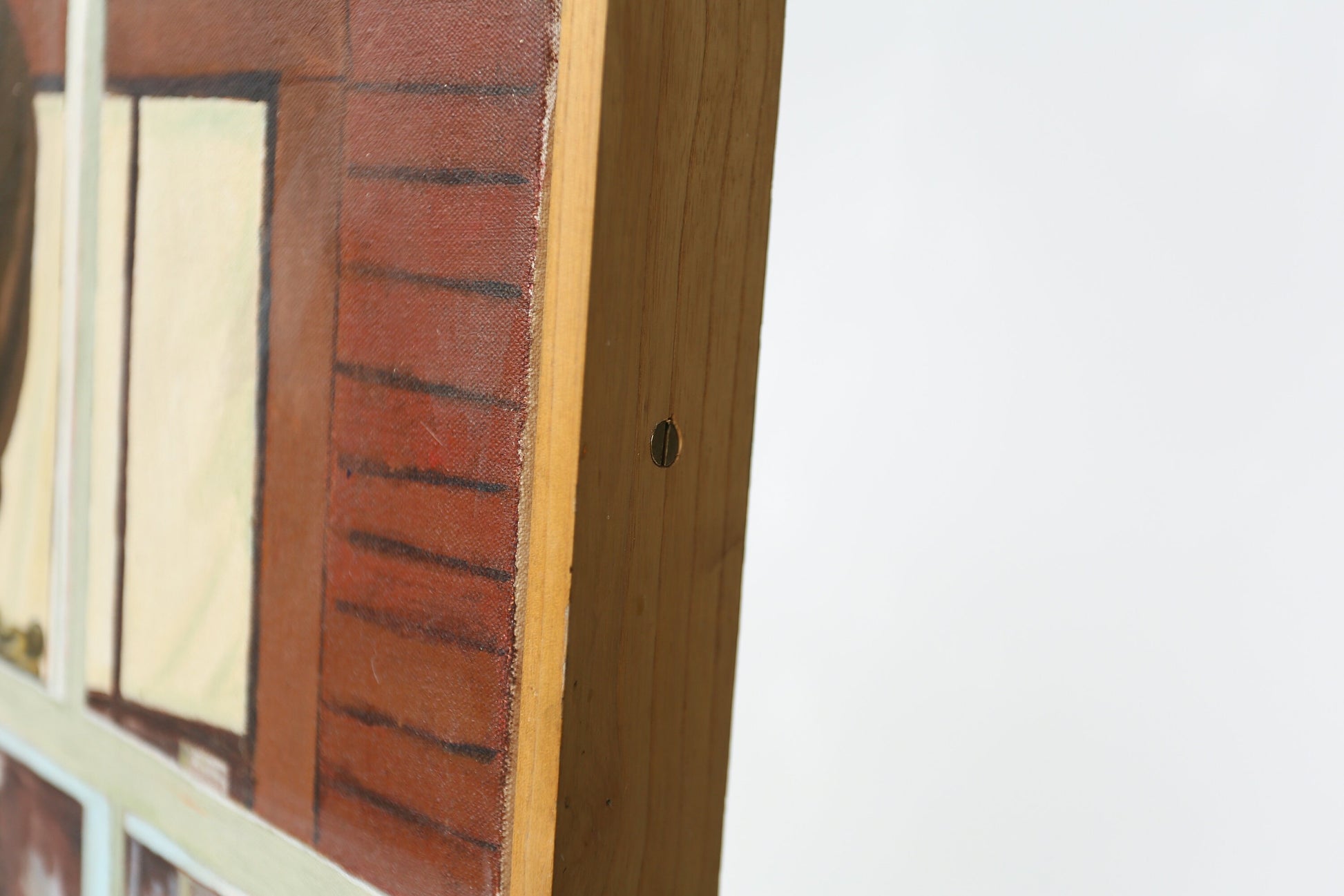 This painting displays masterful exploration of texture, from the glass of the window pane and eye glasses to the dirty plaster of the wall to the texture differences between his hair and beard. This is truly an exceptional self portrait, but stands on its own as a figurative work representative of the period. Though Costello clearly looked to modern masters such as Hockney, he developed a visual language all his own. Just this year a portrait by Costello from the same period has been added to the National Portrait Gallery in Washington, DC.