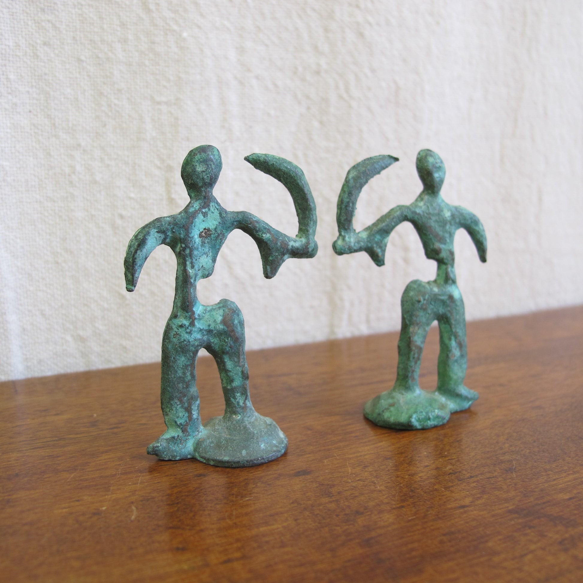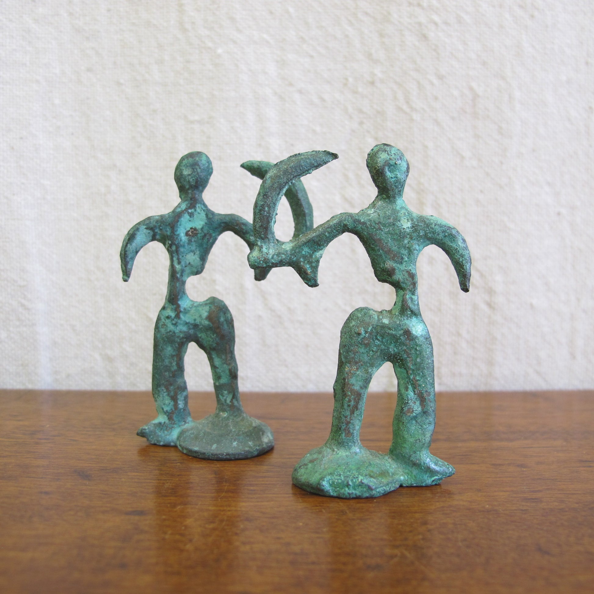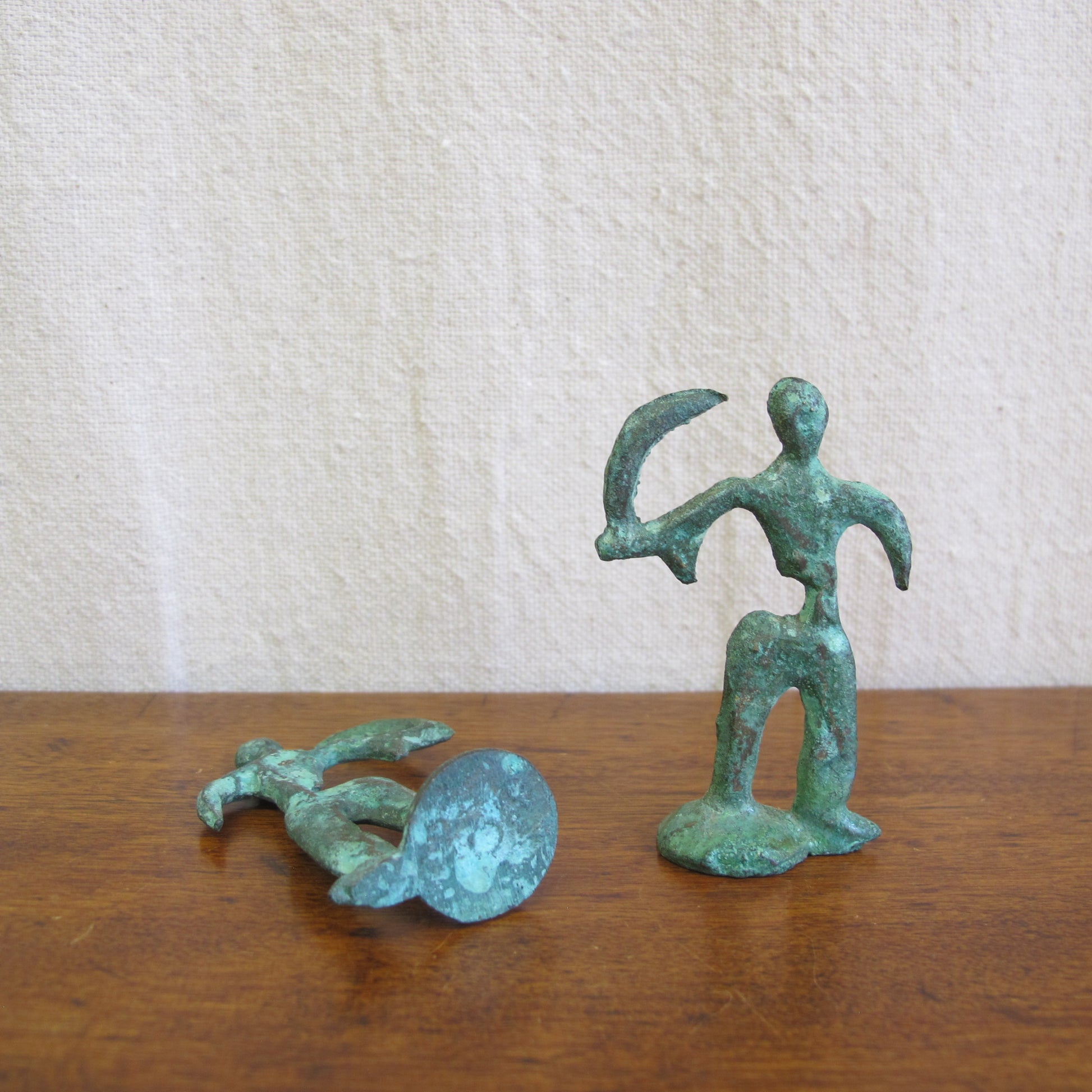 Miniature midcentury Brutalist bronze sculptures of warriors, c. 1950 1960
