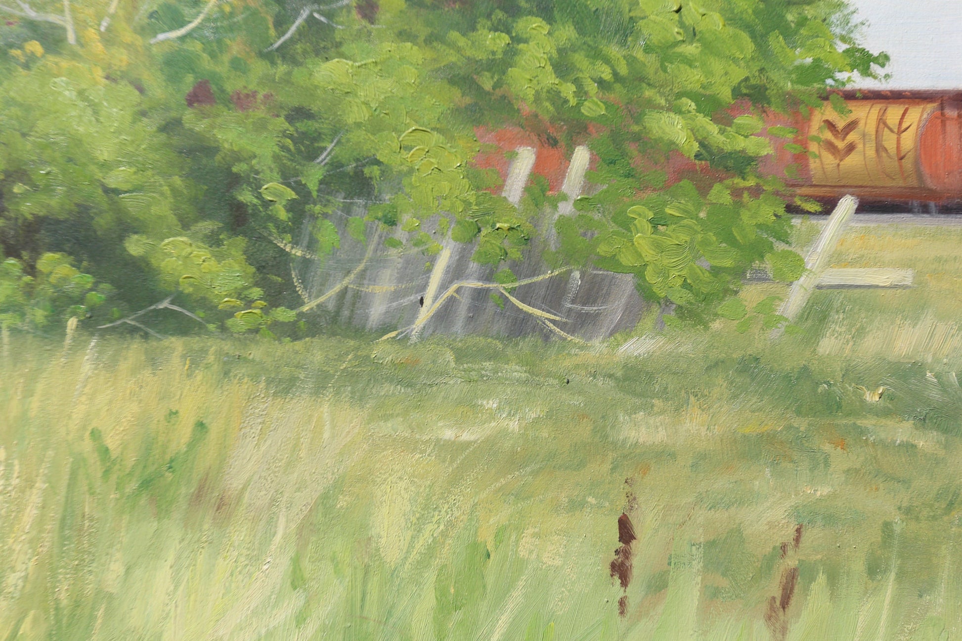 Oil Painting Landscape Norman Kelly Saskatchewan Pool Prairie Elevator Oil on Canvas Train Canada Canadian Western Art Original