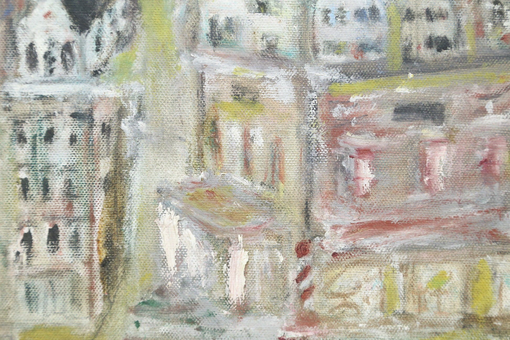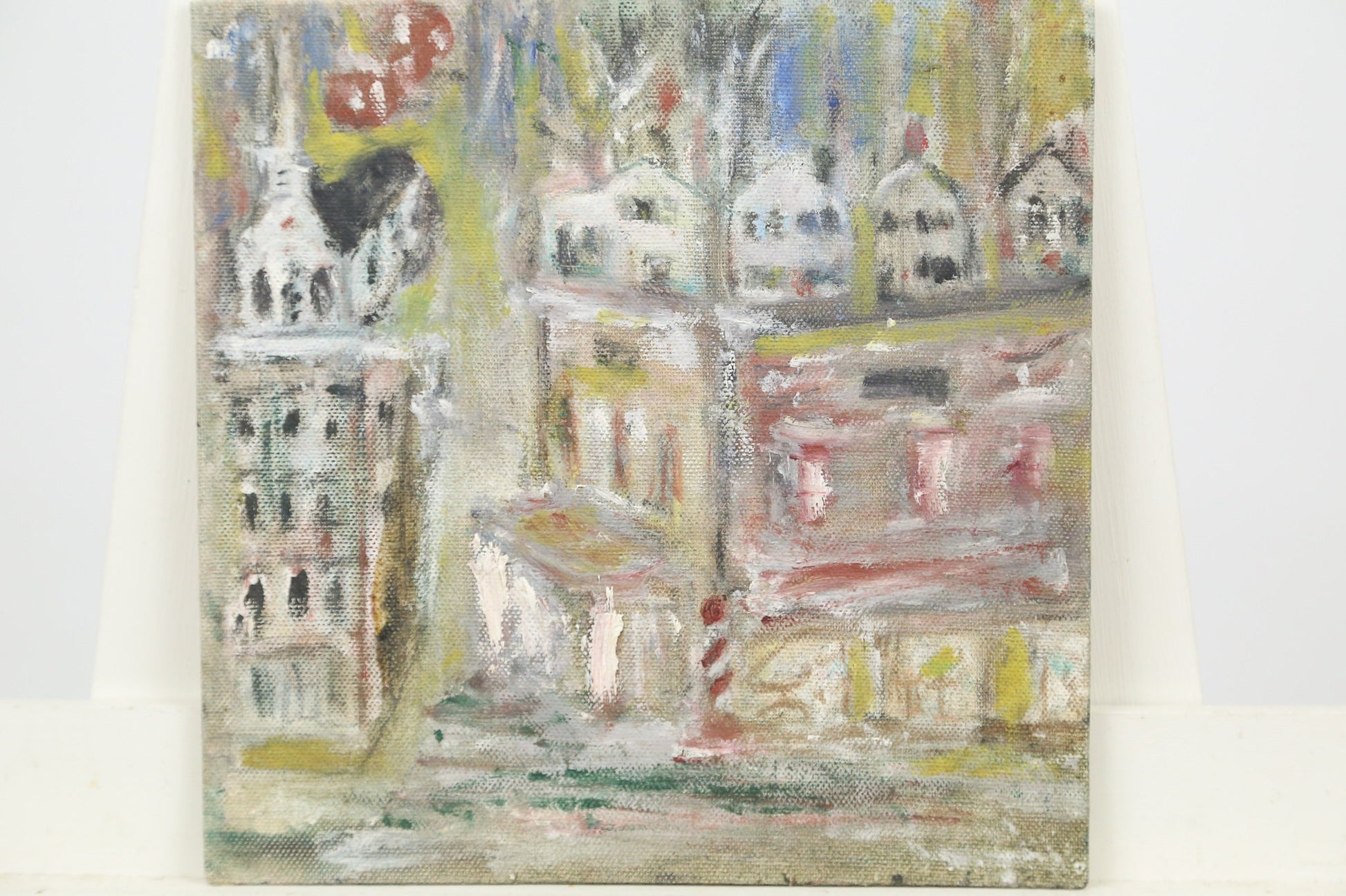 Painting Cityscape Townscape Oil Folk Art Naive Abstract MCM Midcentury New England 1950s