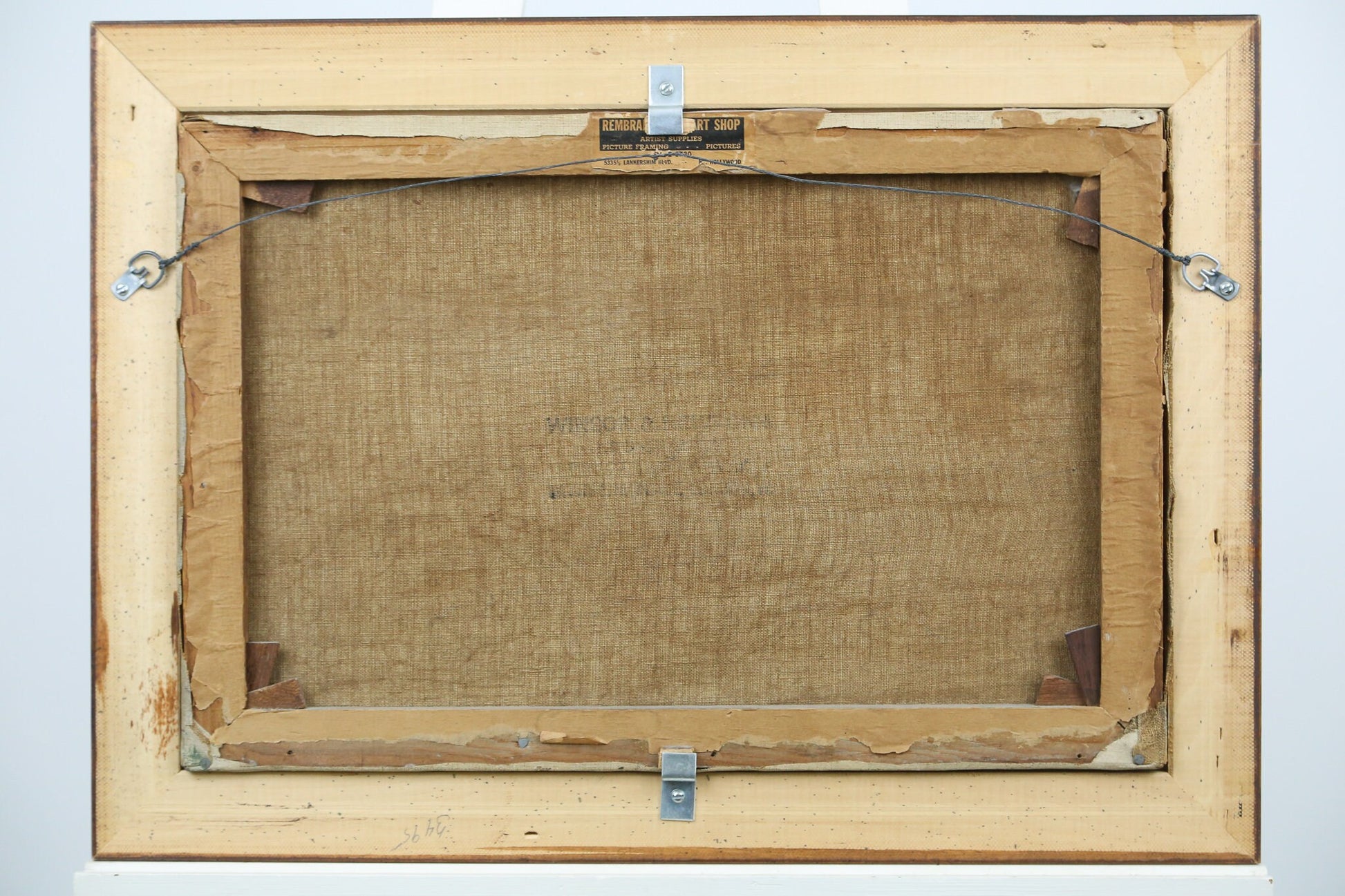 CONDITION: Overall quite good -- stretcher marks as shown, which could be restored away if so desired, but they do not detract. Pictures show all.