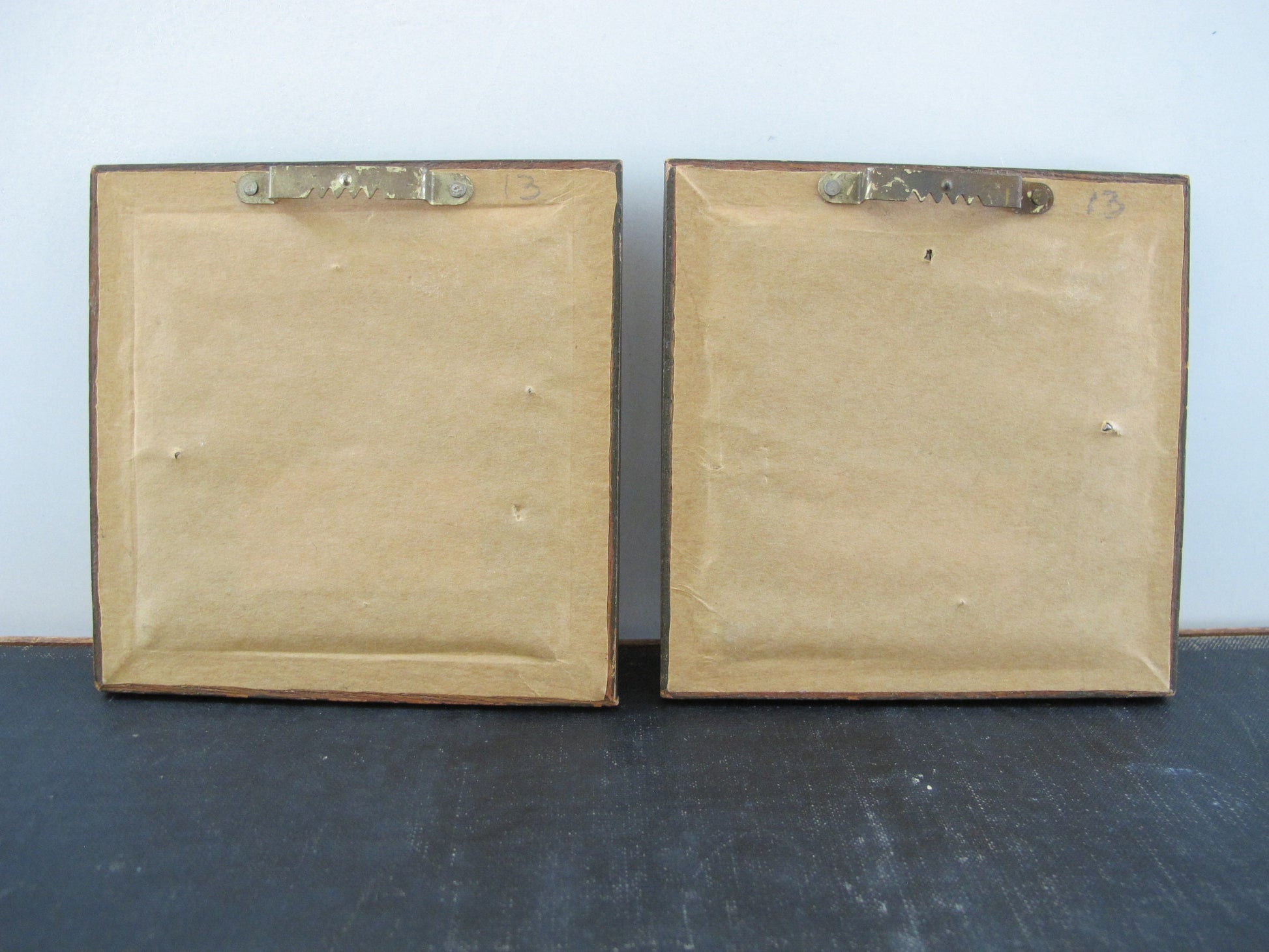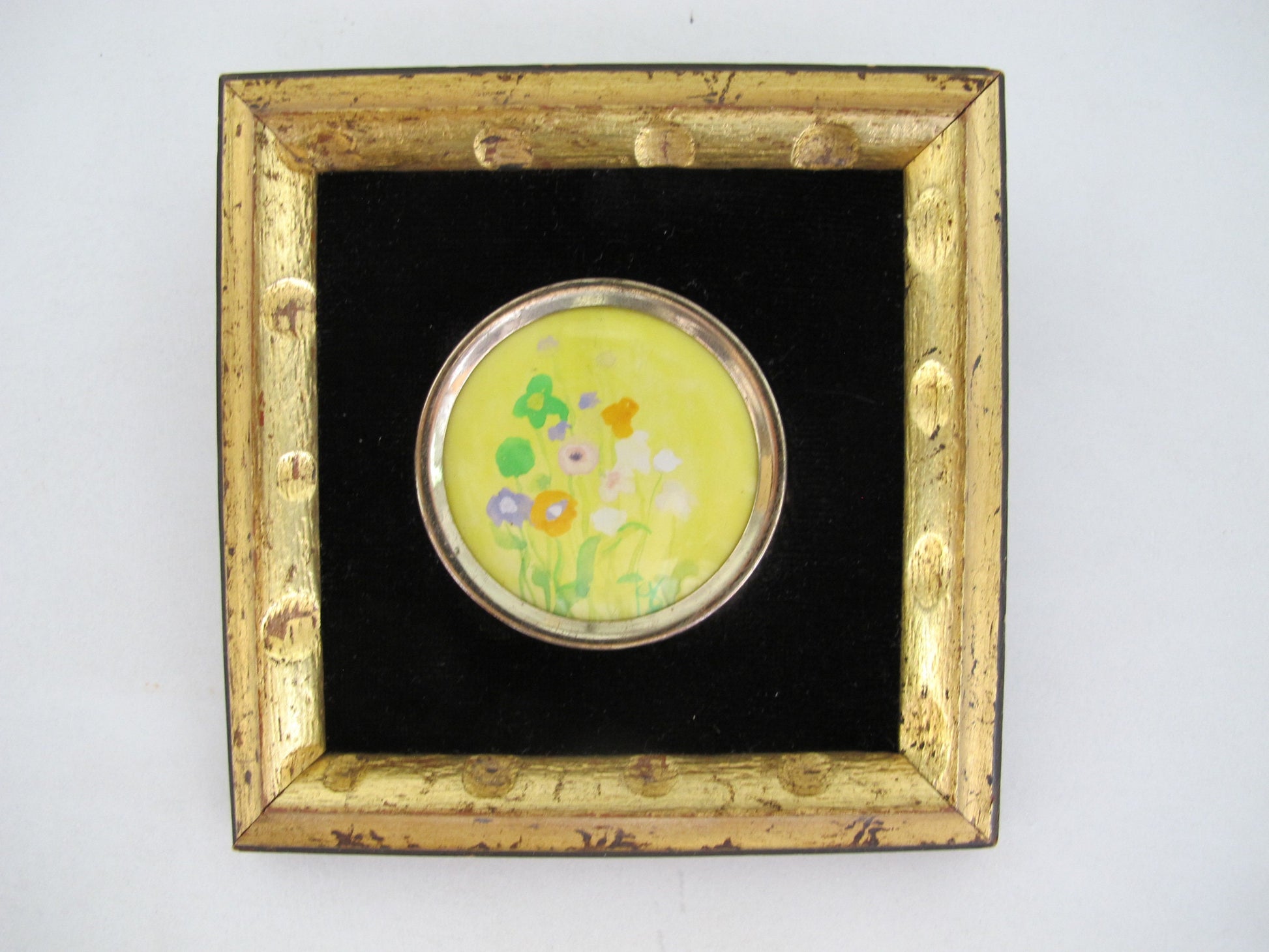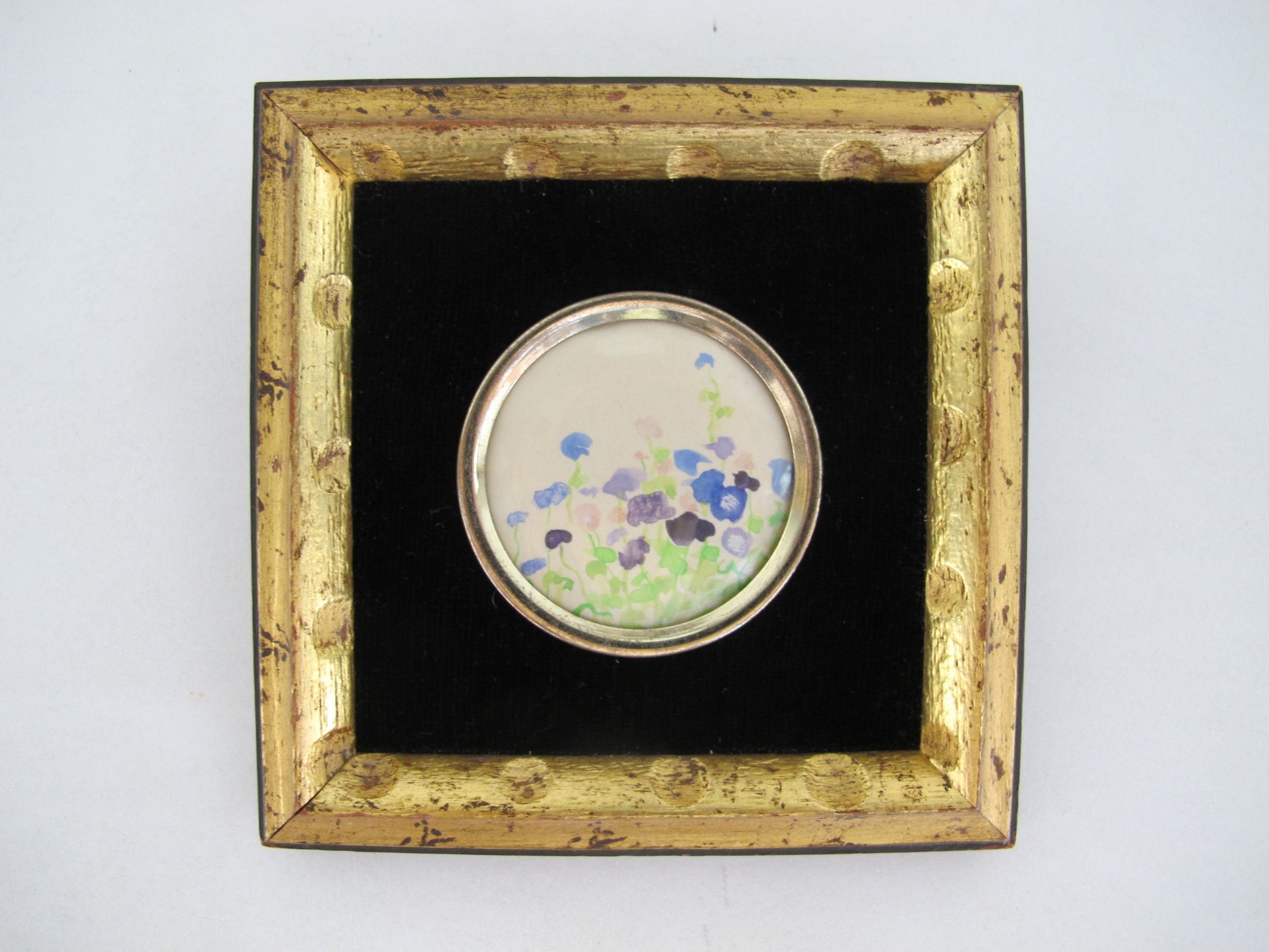 Painting Watercolor Pair Flowers Roundels 1960s MCM Midcentury