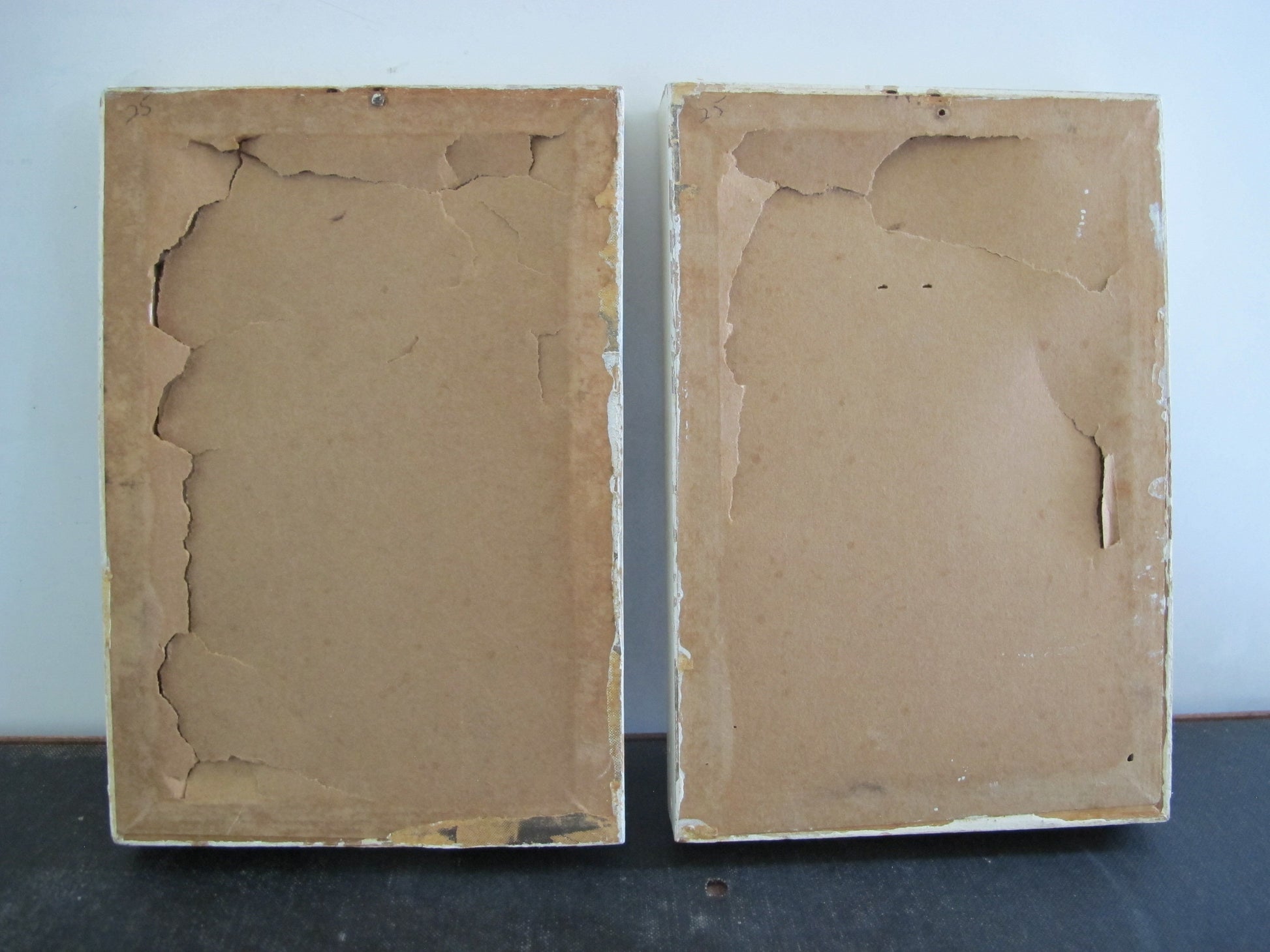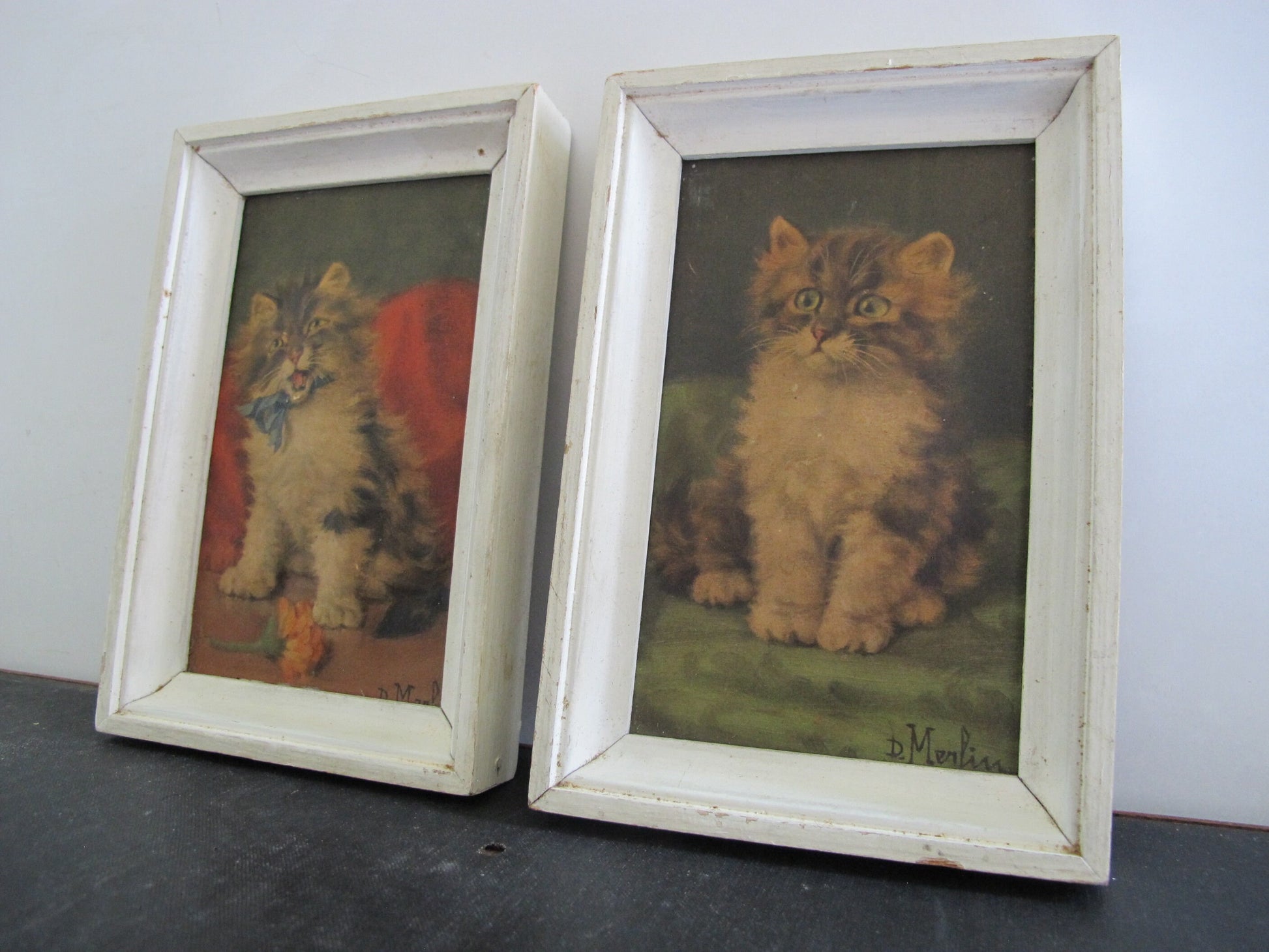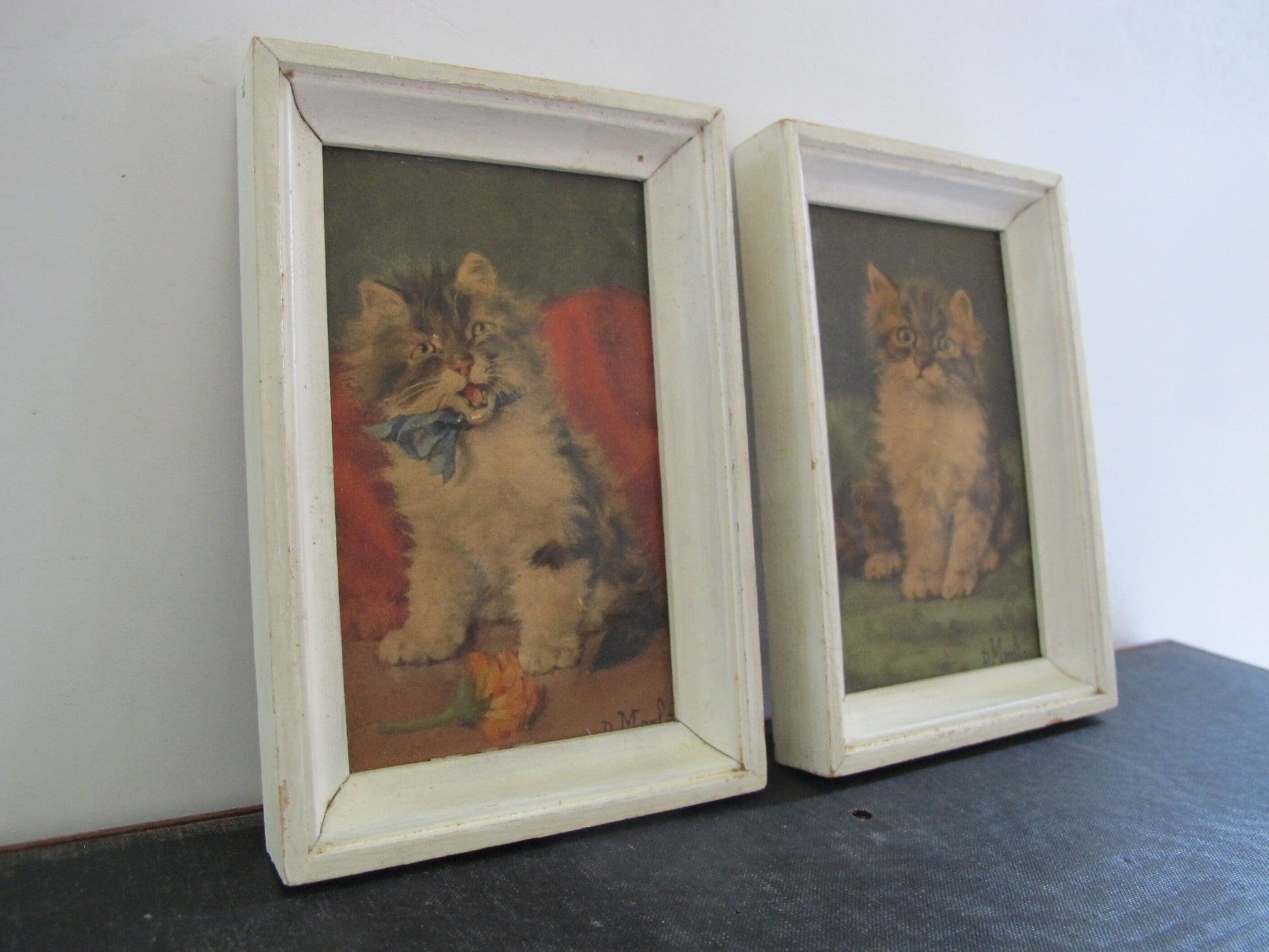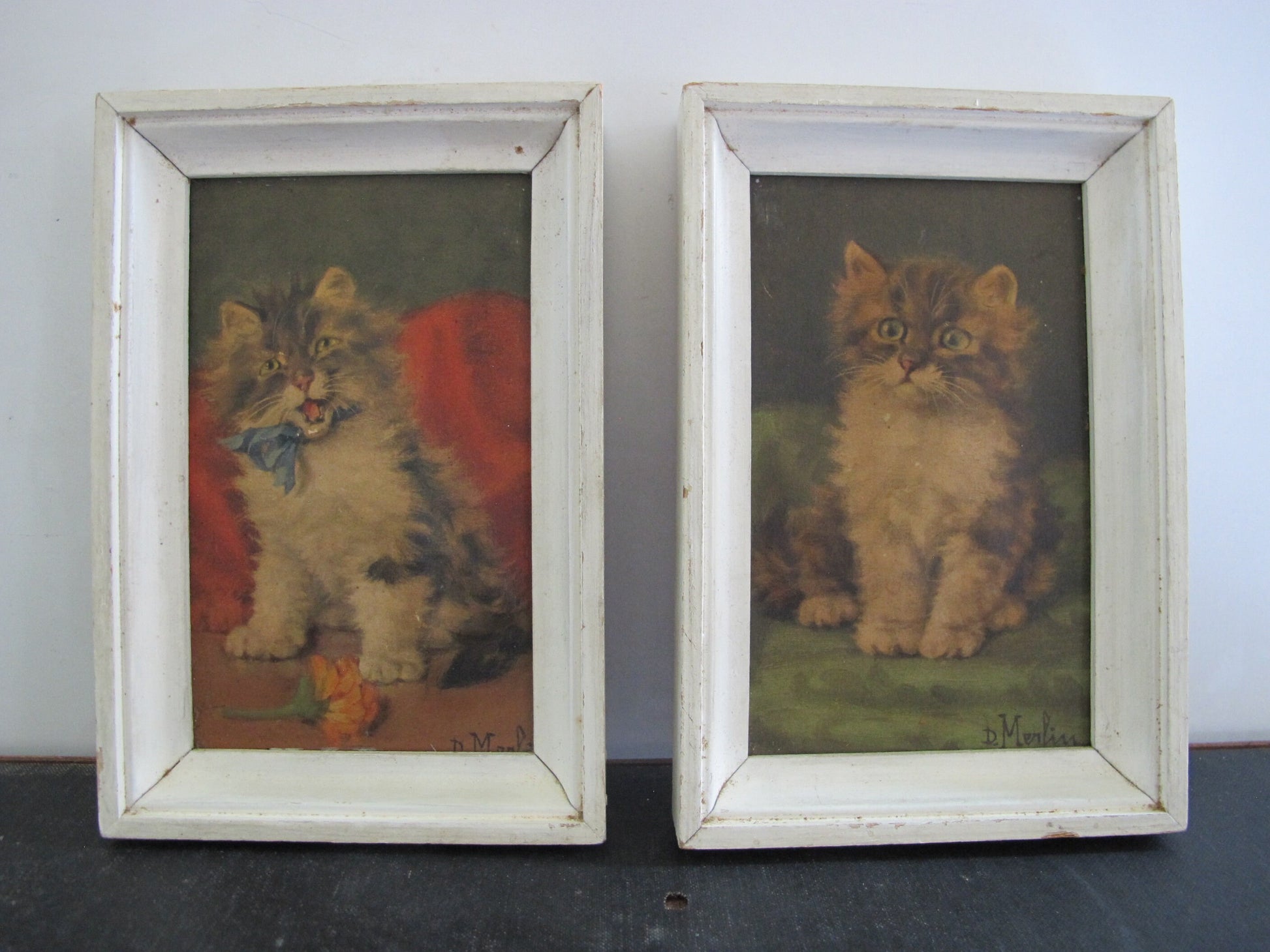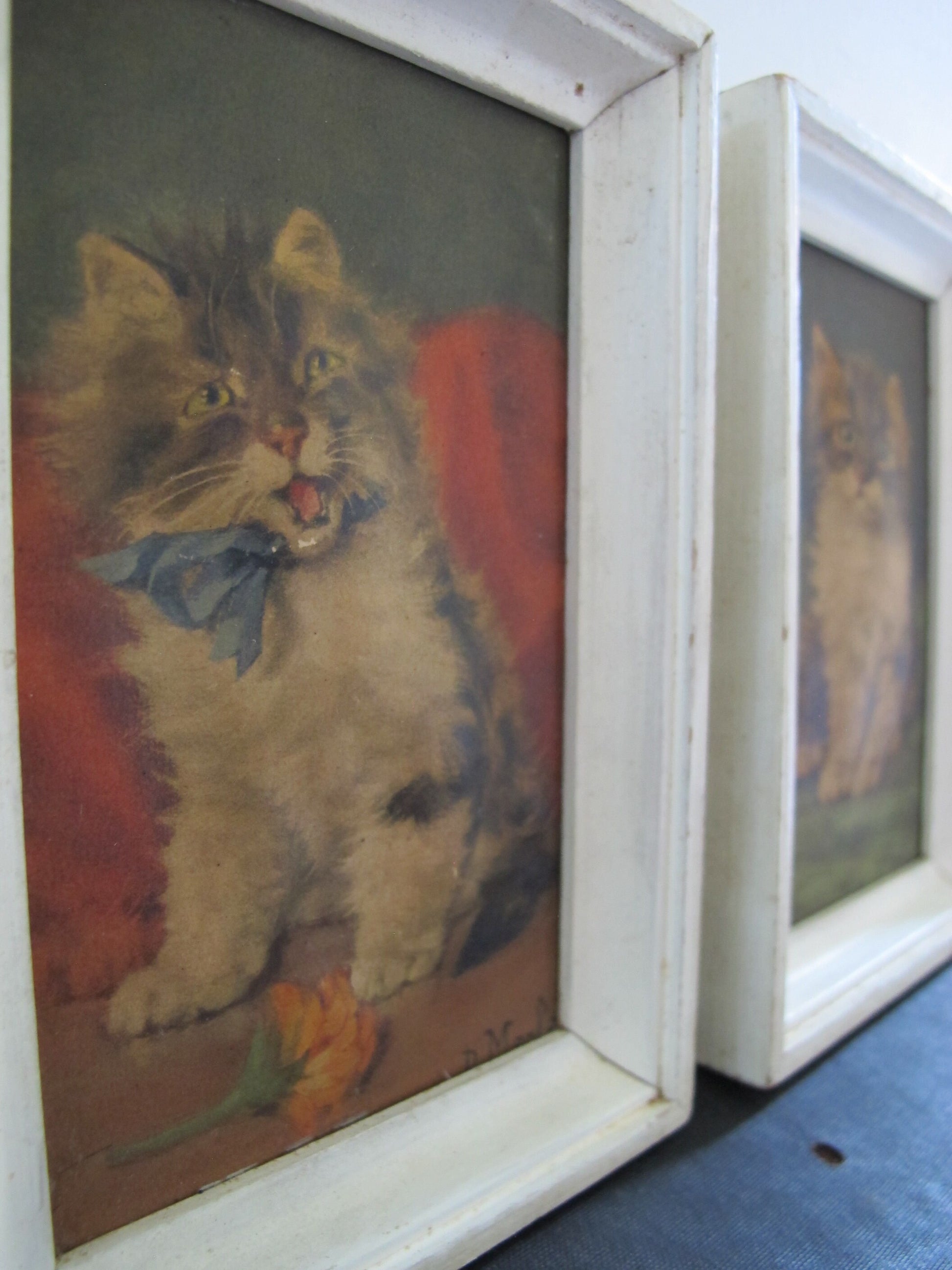 Pair Framed Cat Prints 3D Dimensional Embossed 1930s 1940s