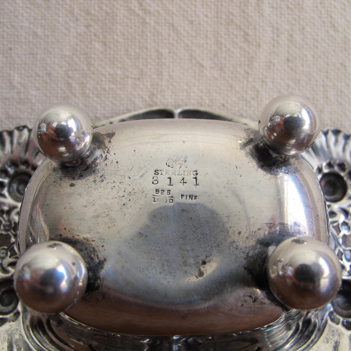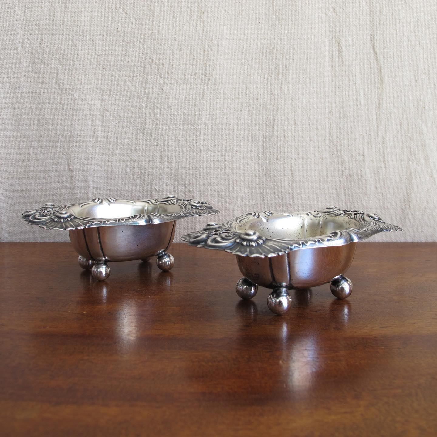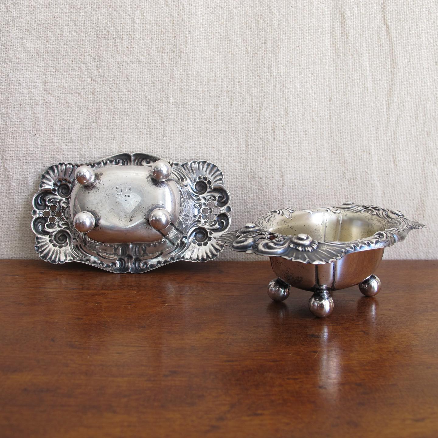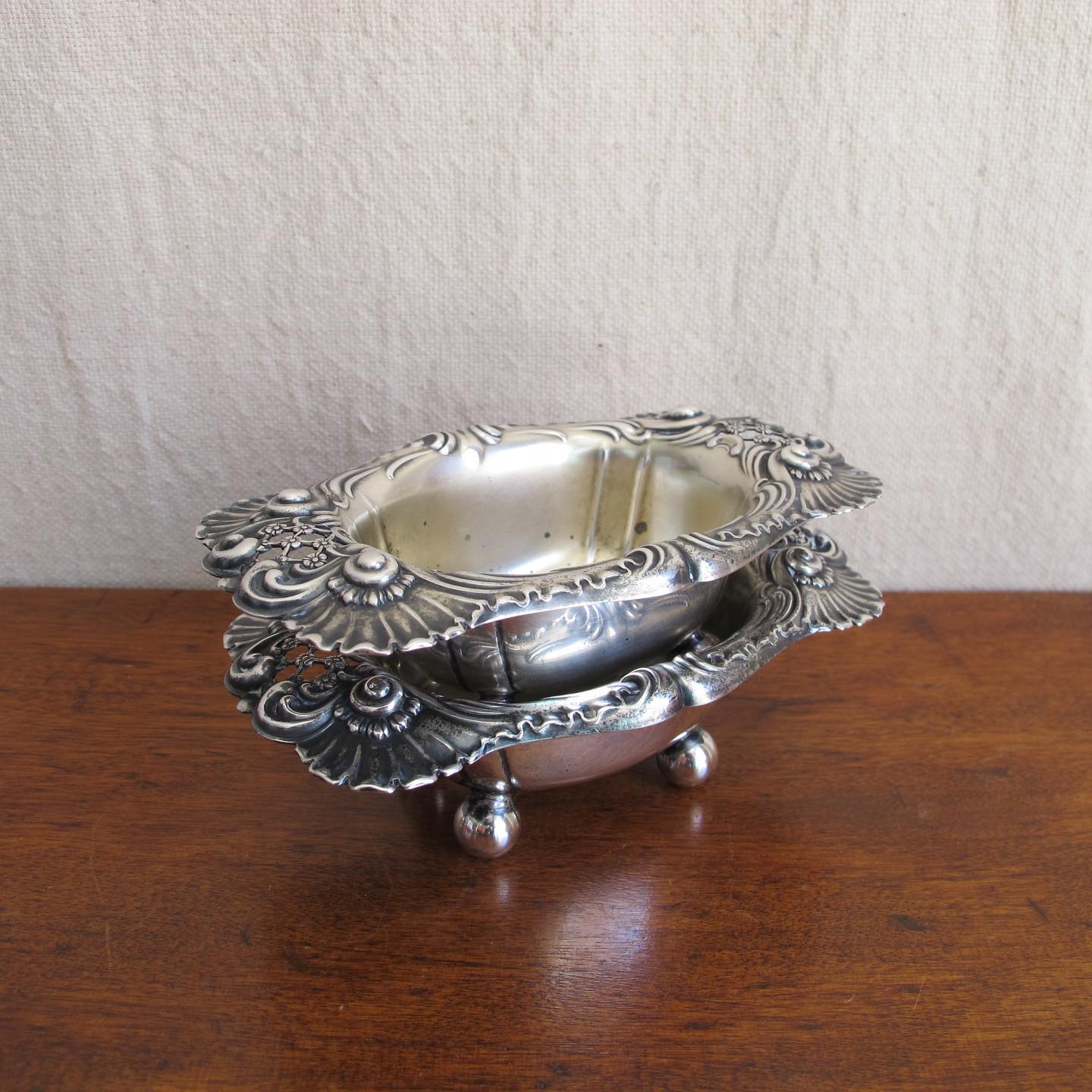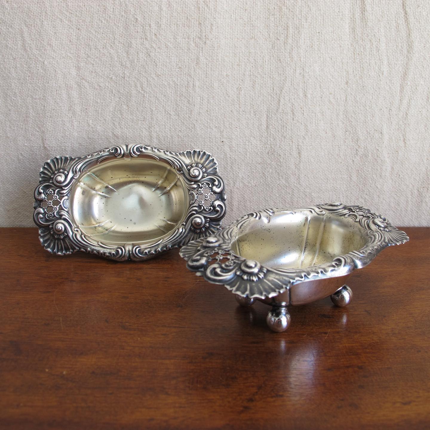 Pair of reticulated sterling silver nut dishes or salt cellars, LARGE, “Dresden” pattern by Whiting, c. 1890 1900