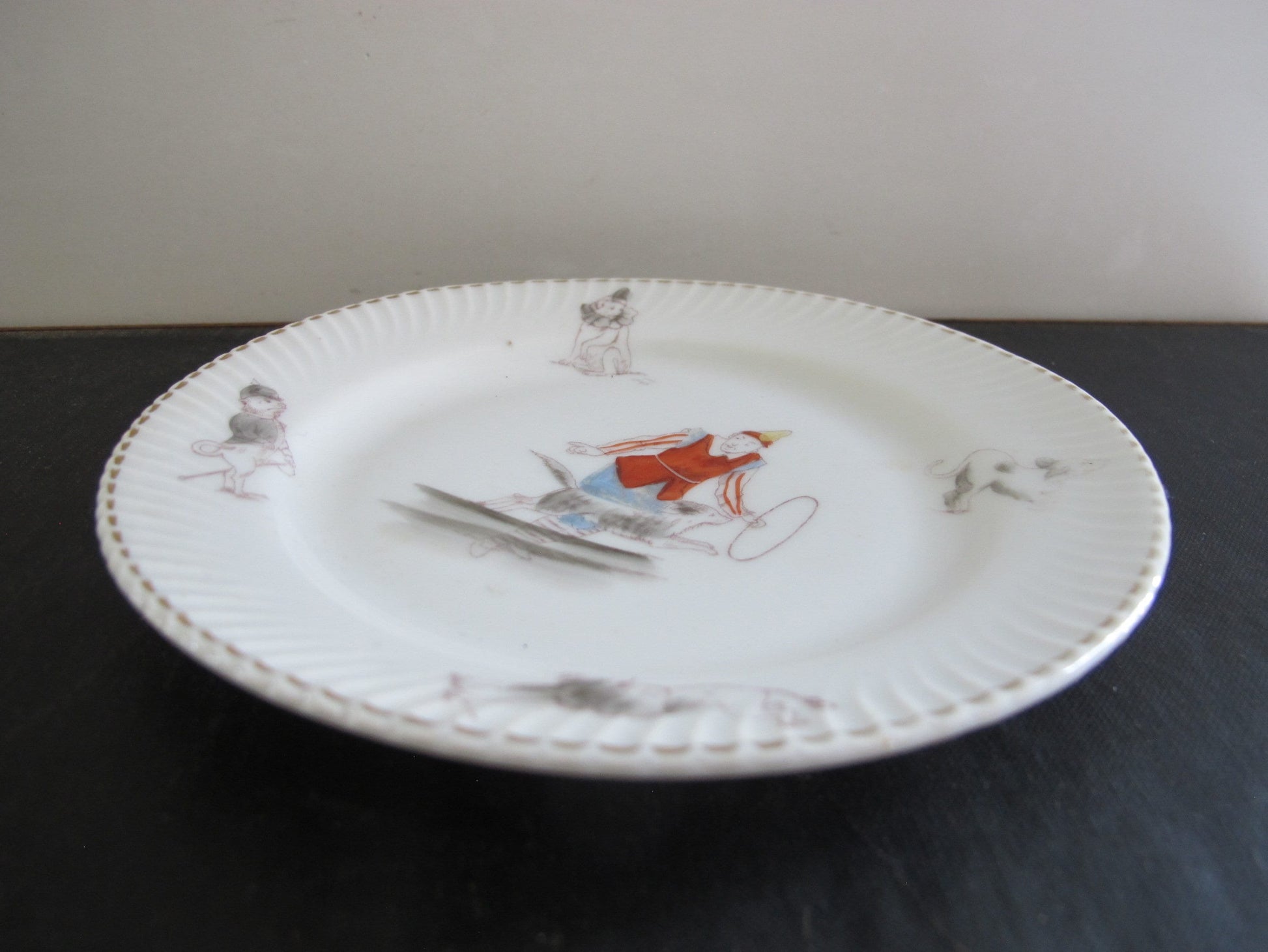 Plate Dog Clown Jumping Through Hoop Circus Costume 1900s 1910s Edwardian Victorian