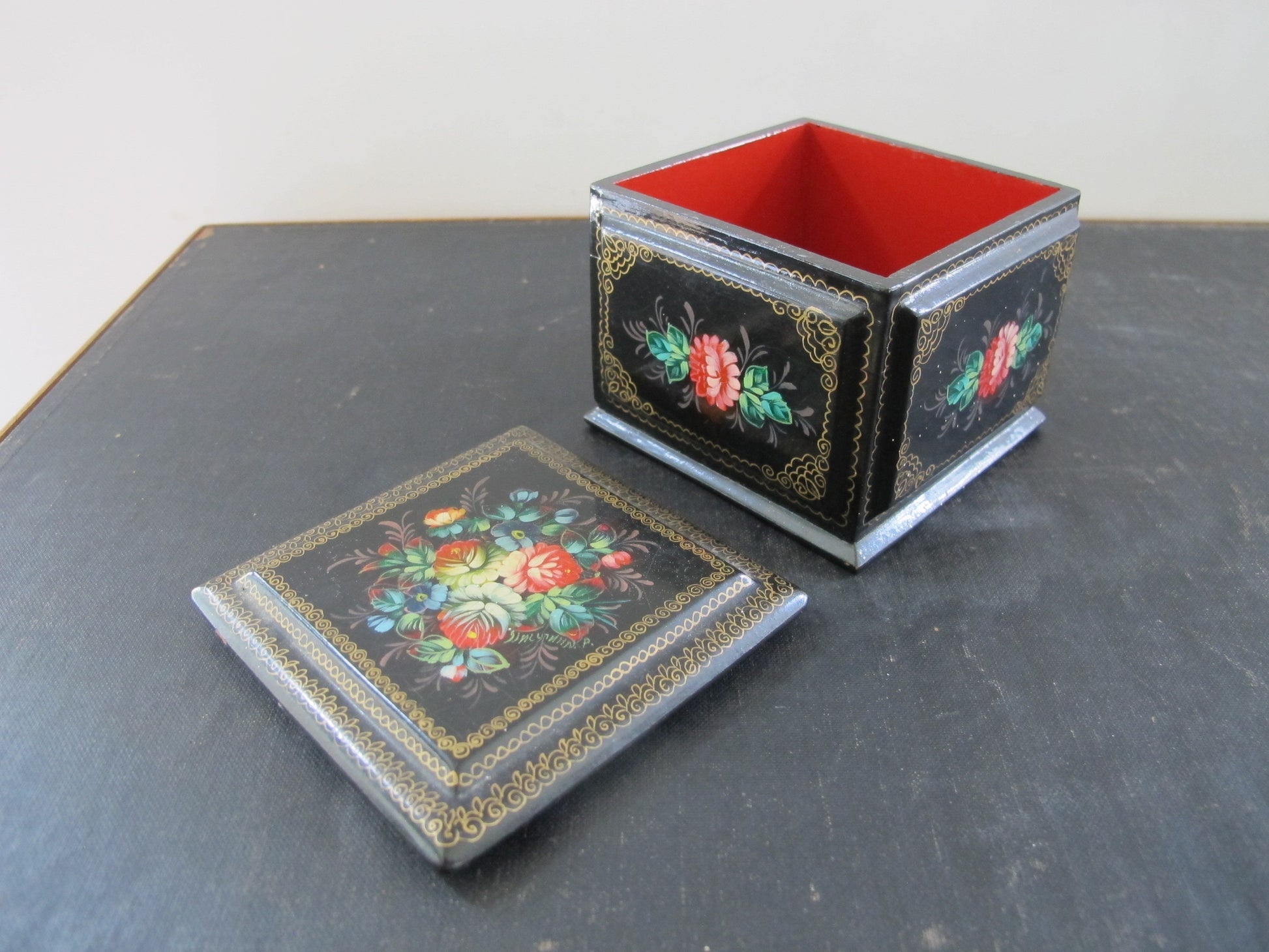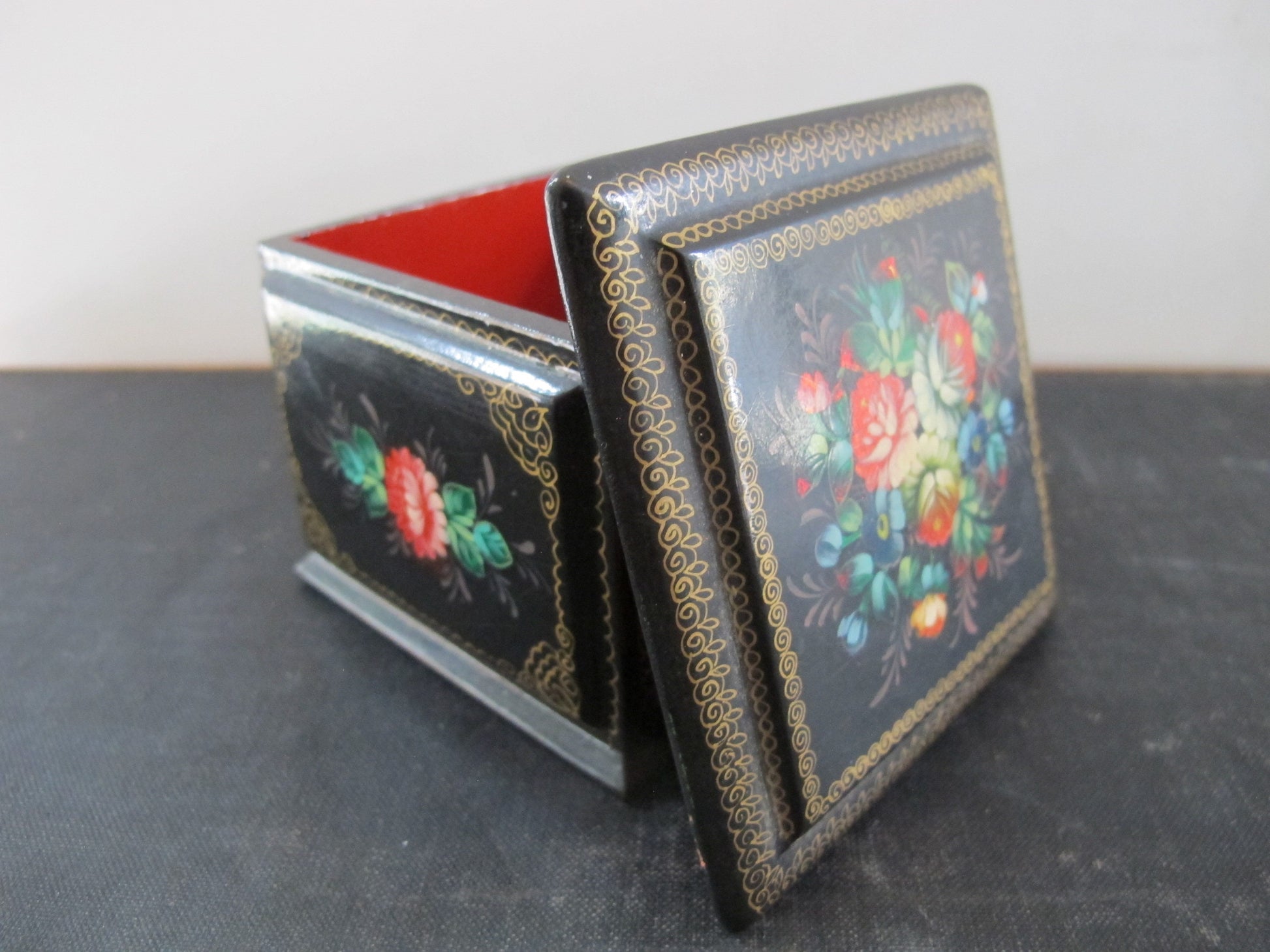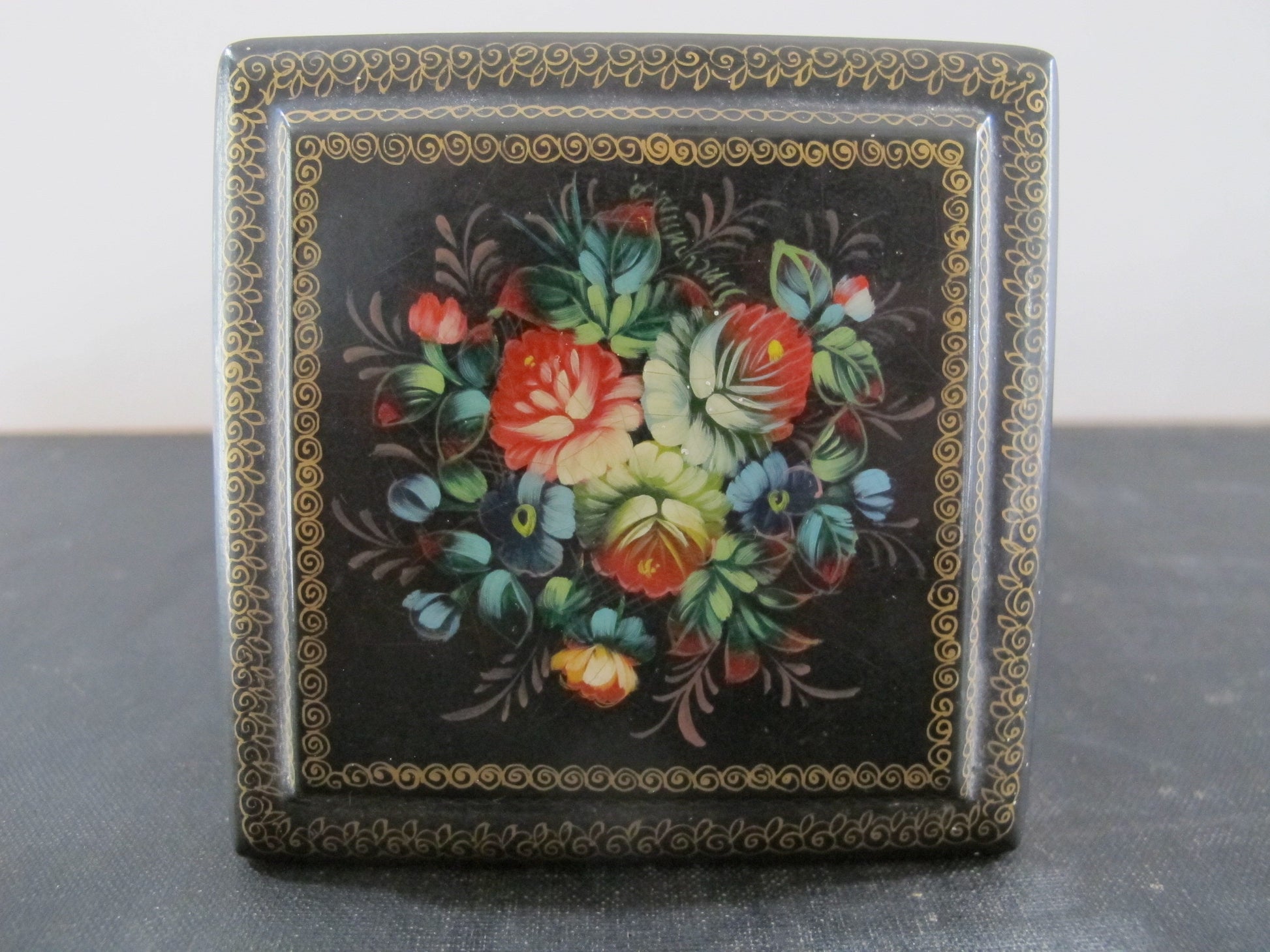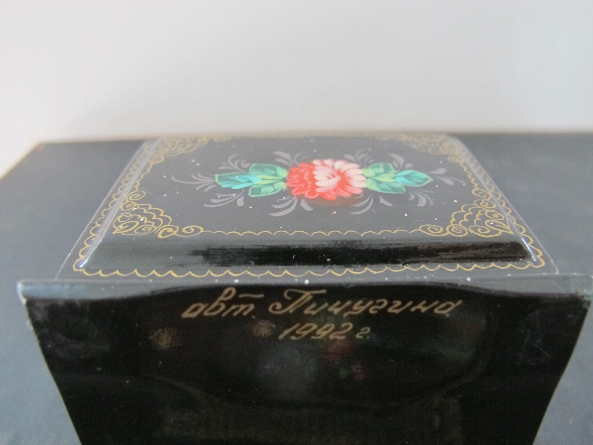 Russian Lacquer Box Signed and Dated 1992 1990s Flowers Floral